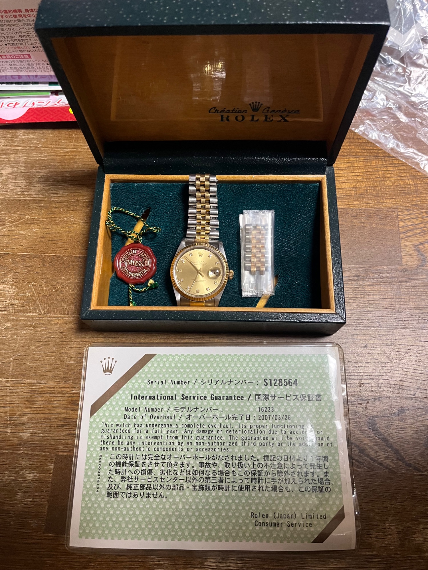 2007年に日本ロレックスにてOH証明書あり