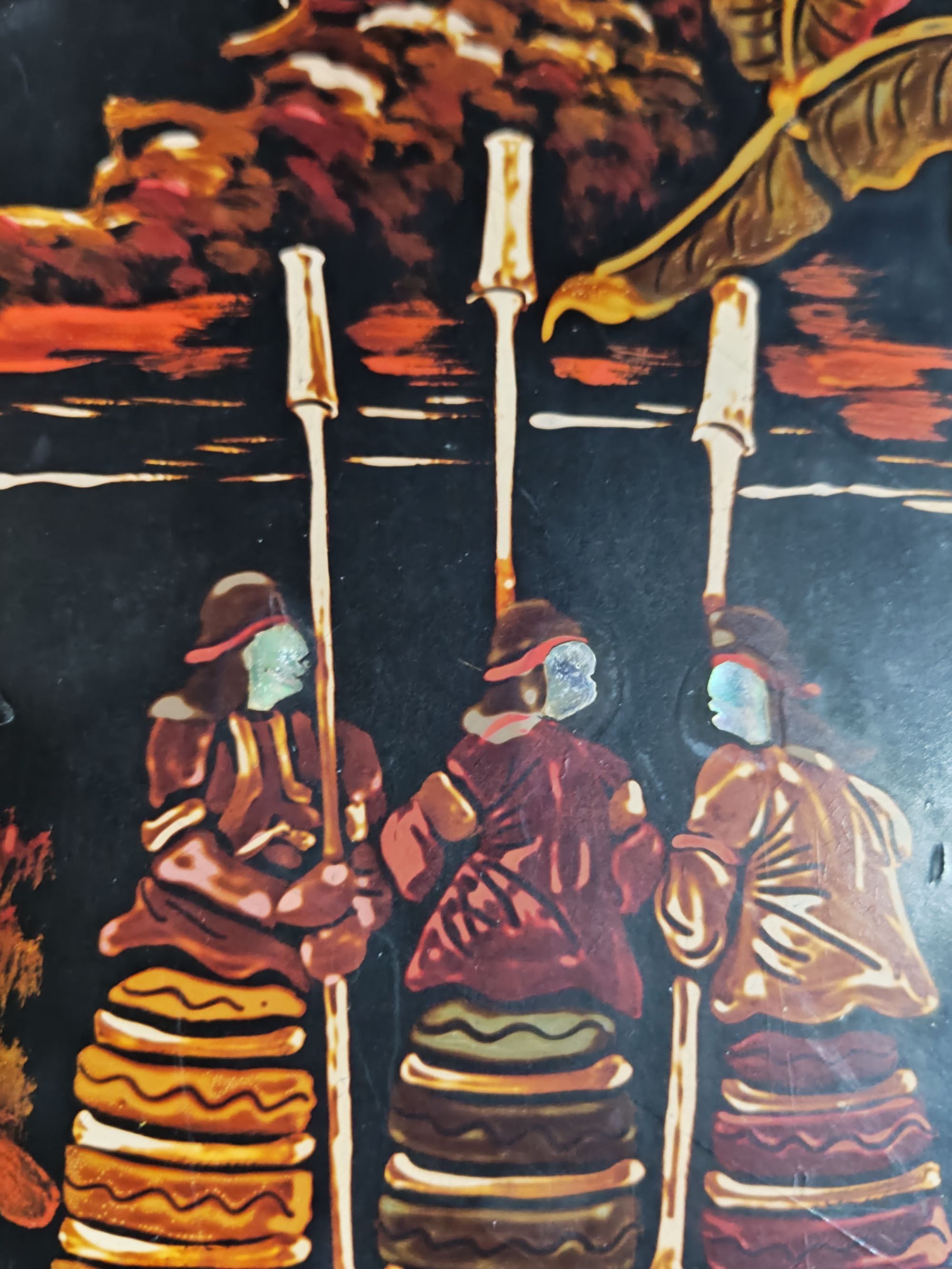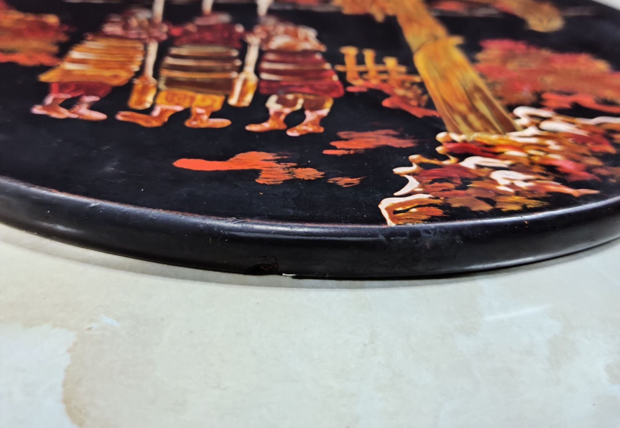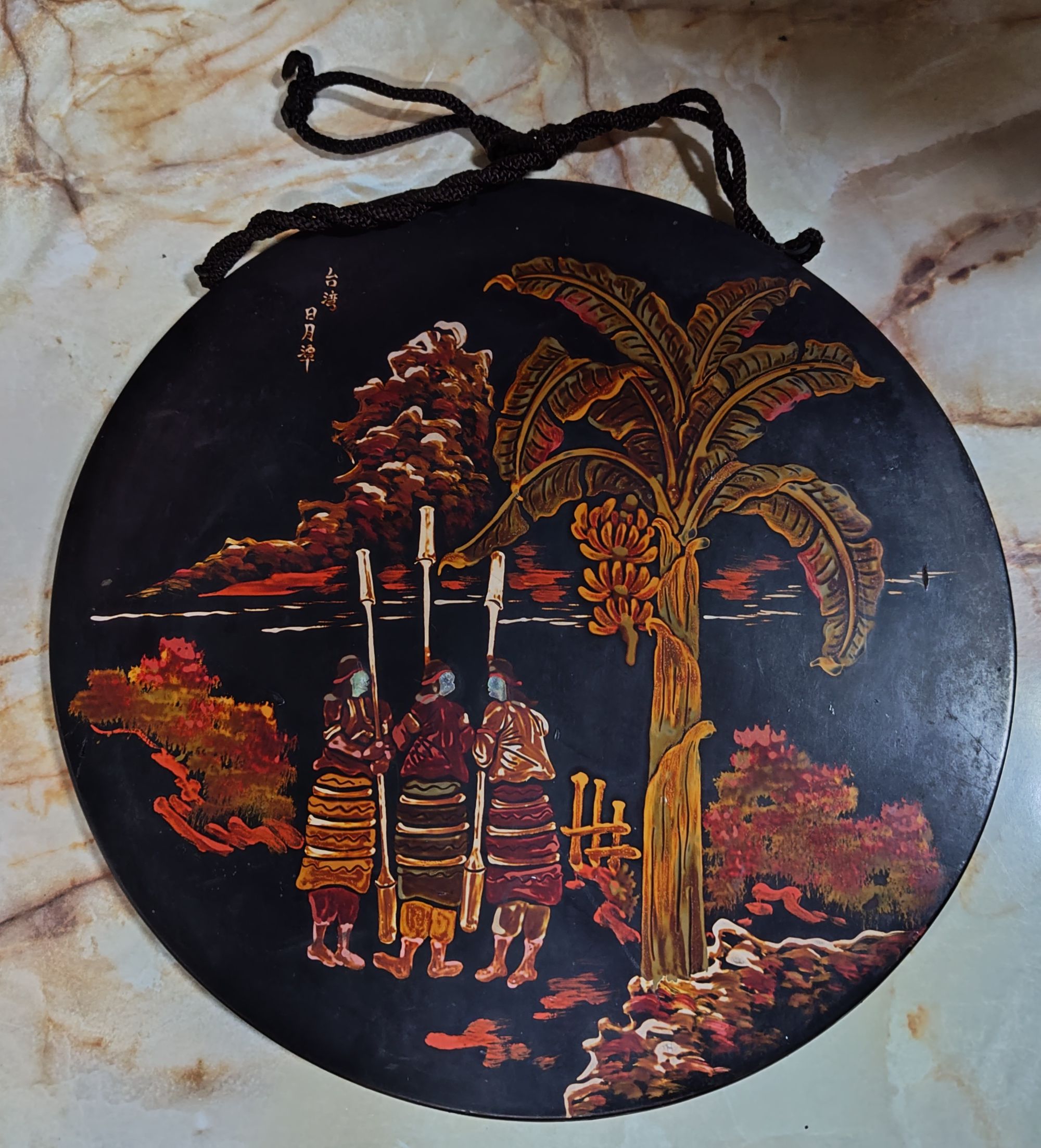 戦前台湾漆器螺鈿細工丸型木製壁掛け 台湾日月潭