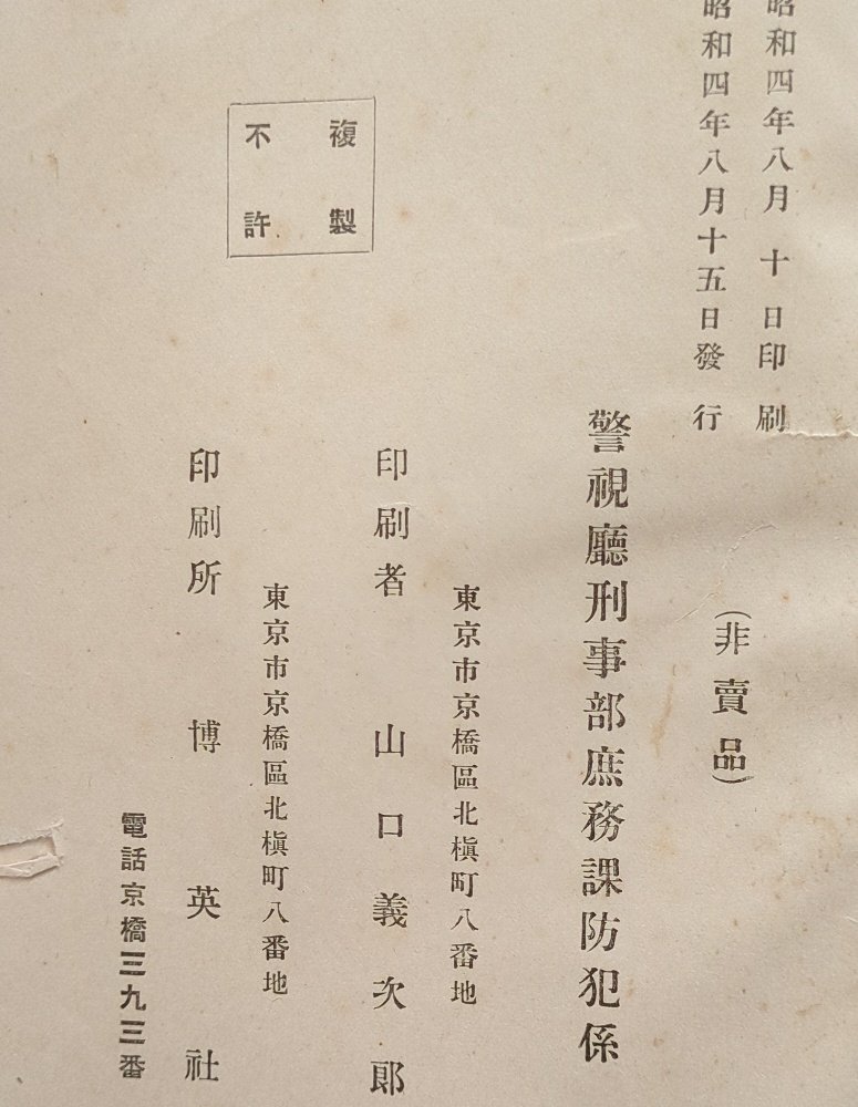 ・昭和初期(1929年)に警視庁刑事部の防犯係が非売品として発行したもの