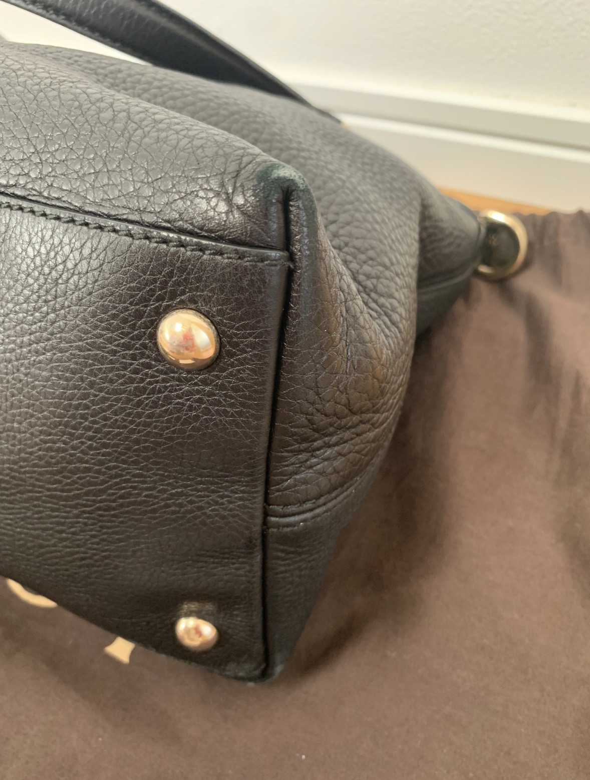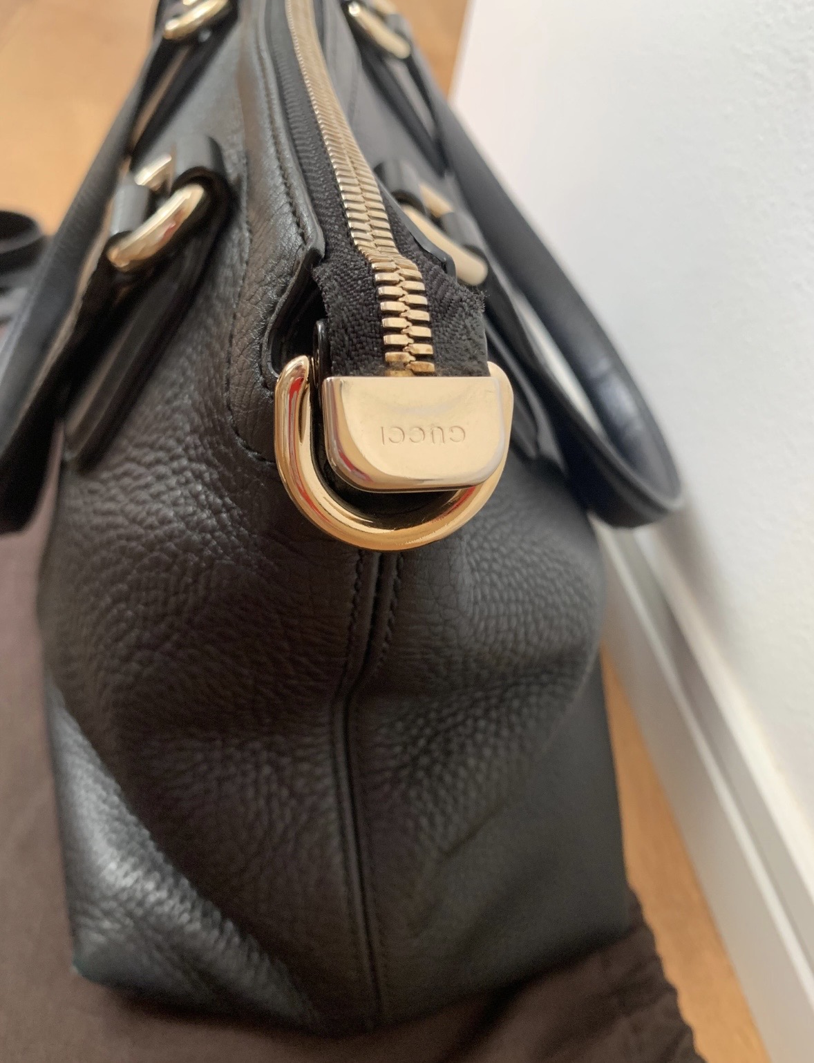 金属に小さな傷。ファスナー部分に汚れあり。