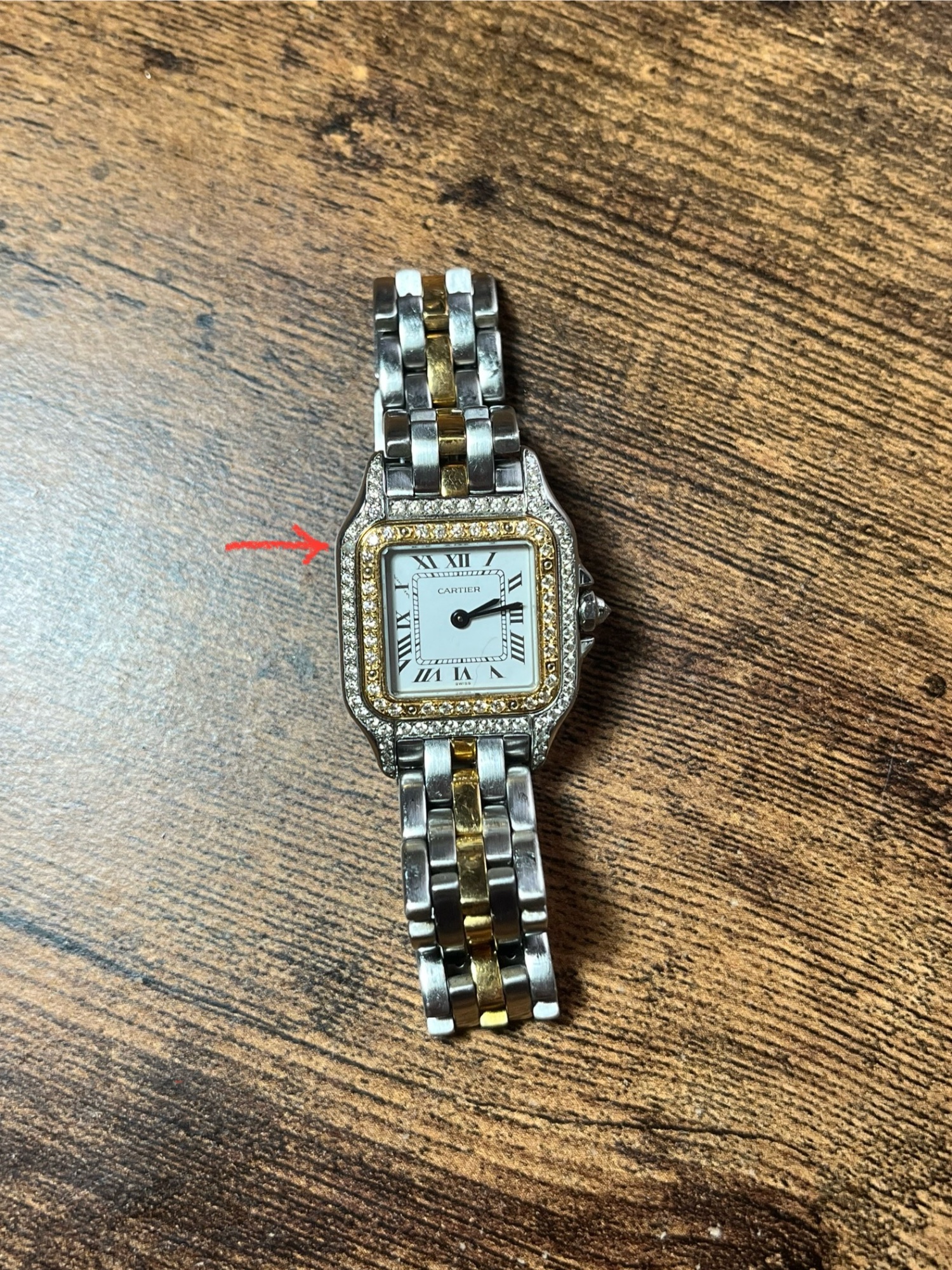 矢印部分のダイヤくすみあり