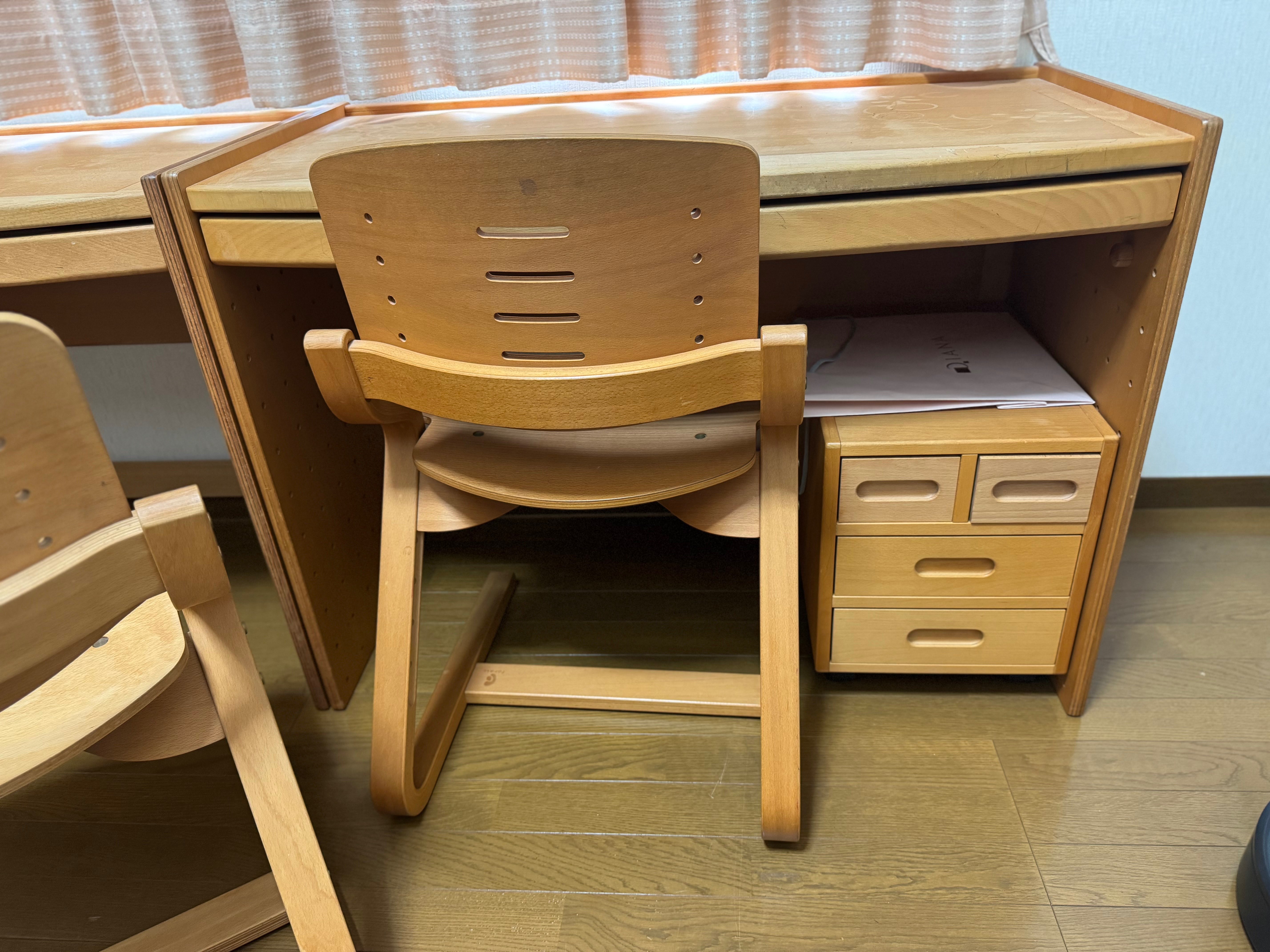 机、椅子ともにネジ止めの高さ調整なので小学校から高校生でも使用可能。(2025/05/12 17:34)