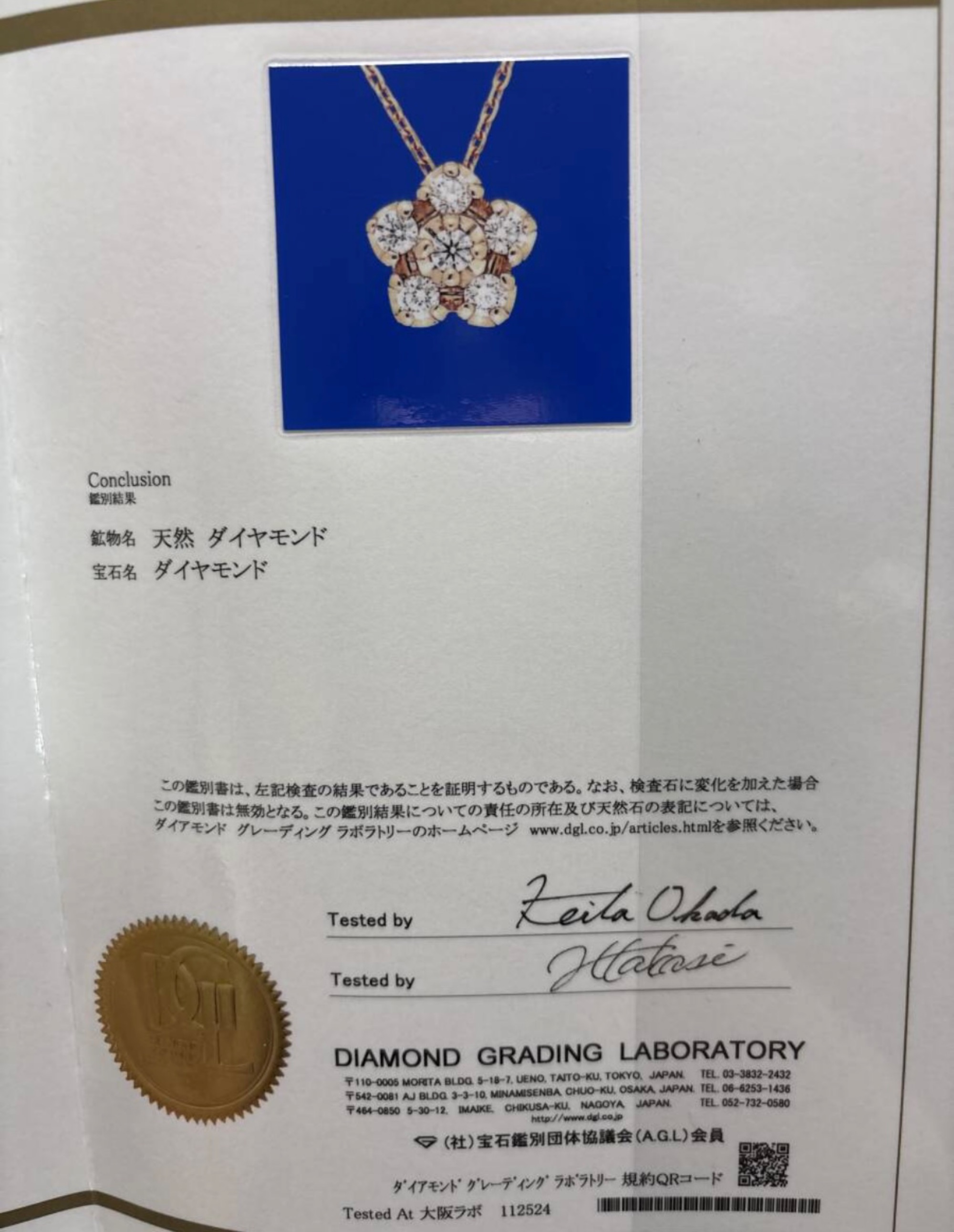 鑑定書、専用ケース付き。