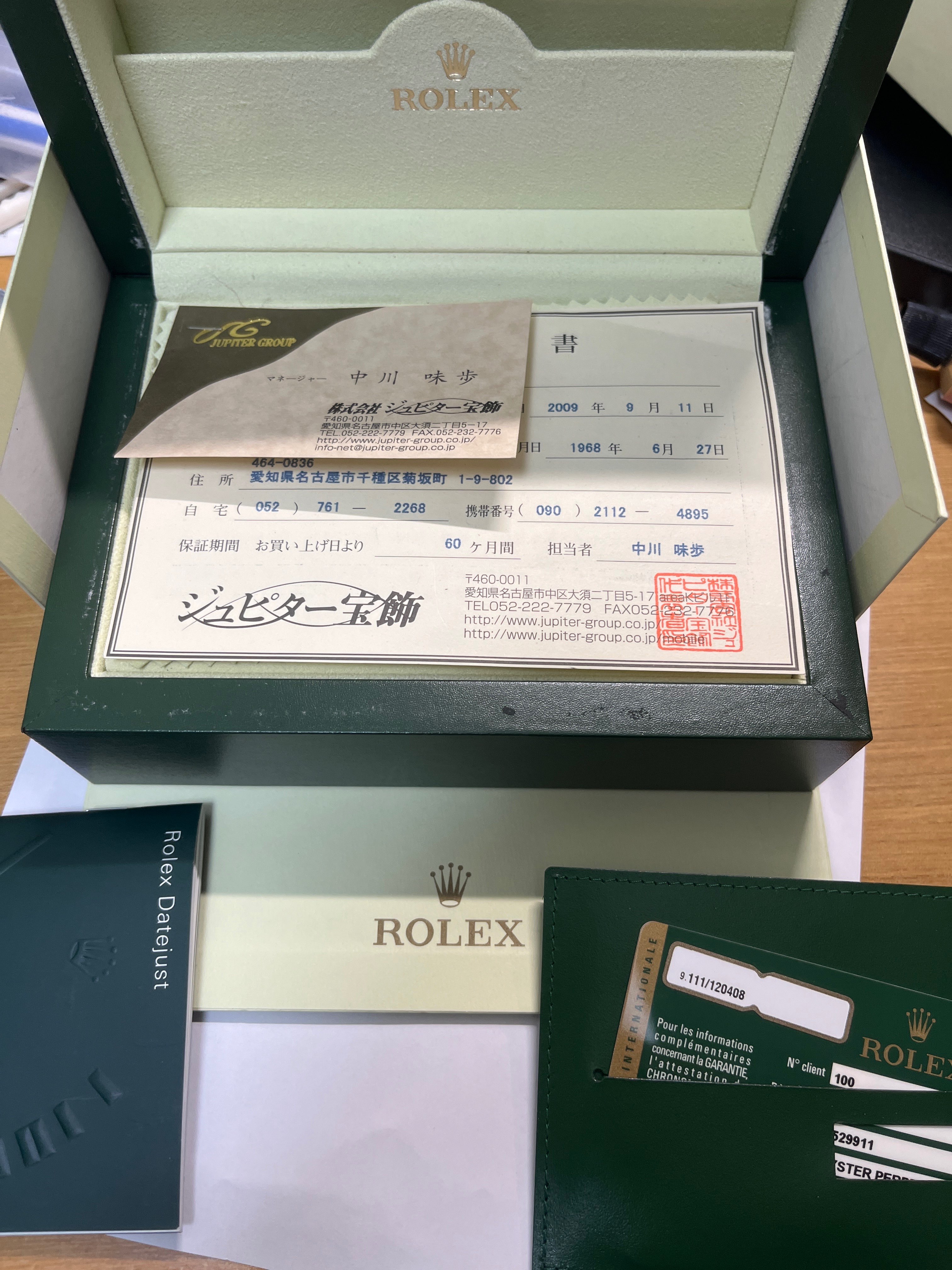 2009年ジュピター宝飾にて新品で購入。ケース他保証書含め、全て揃っています。