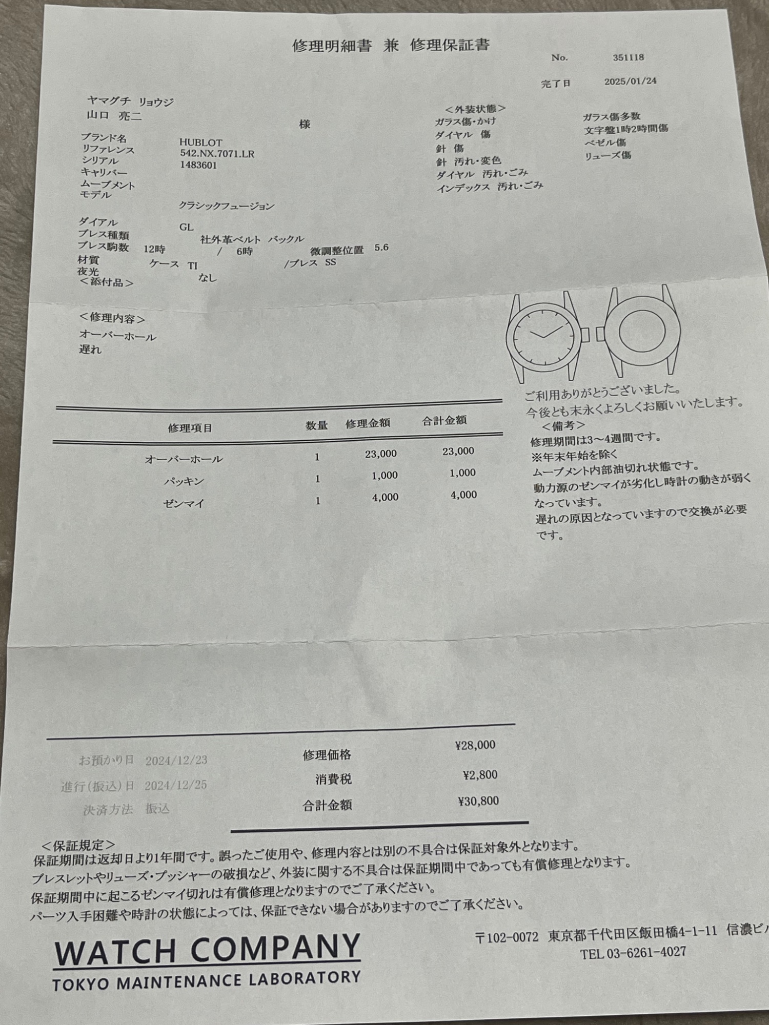 ベルトはラバーベルトに交換していますので新品同様です。領収書等もあります。