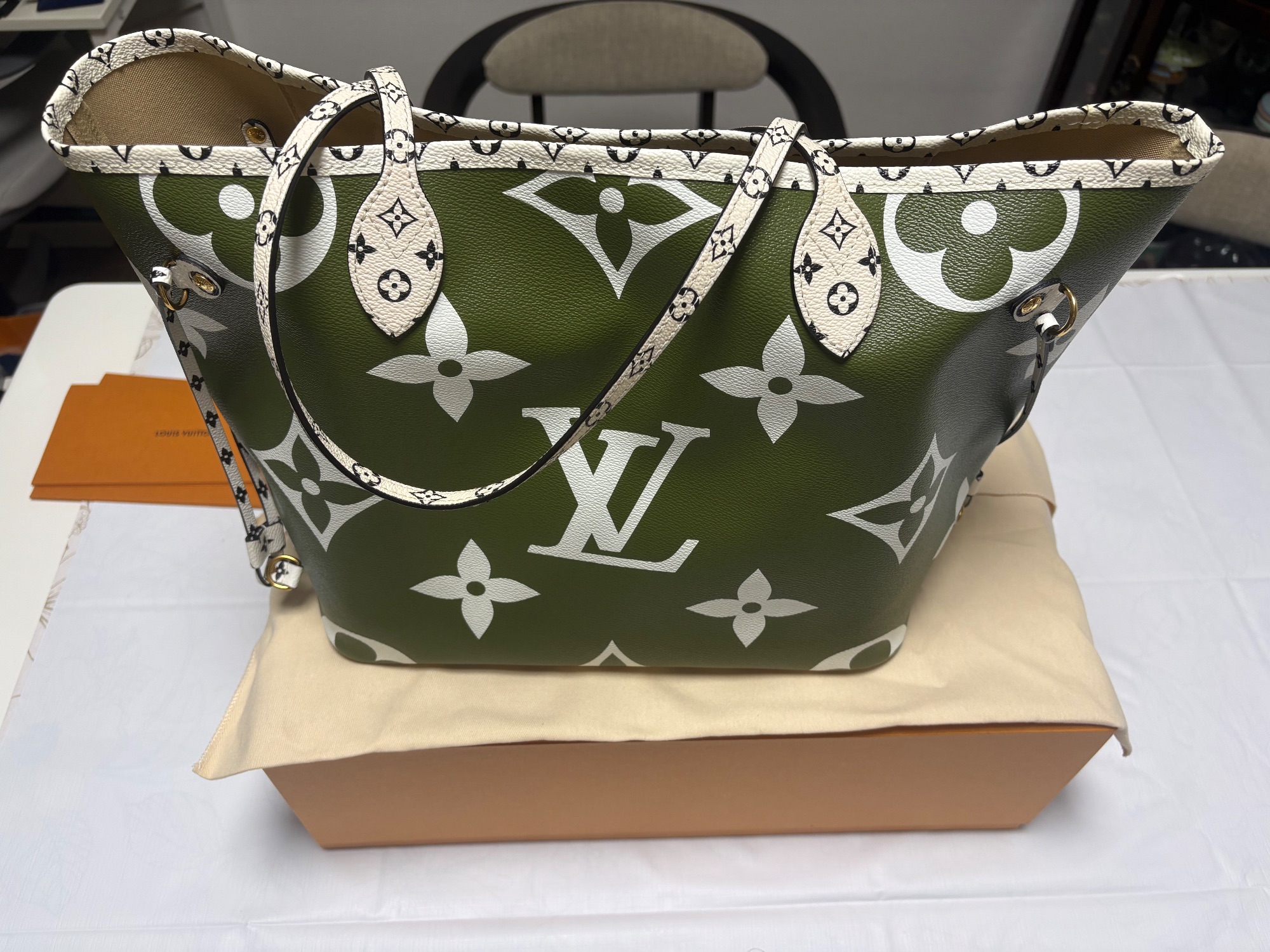 ルイヴィトン トートバッグ ネヴァーフル MM ジャイアント モノグラム カーキ