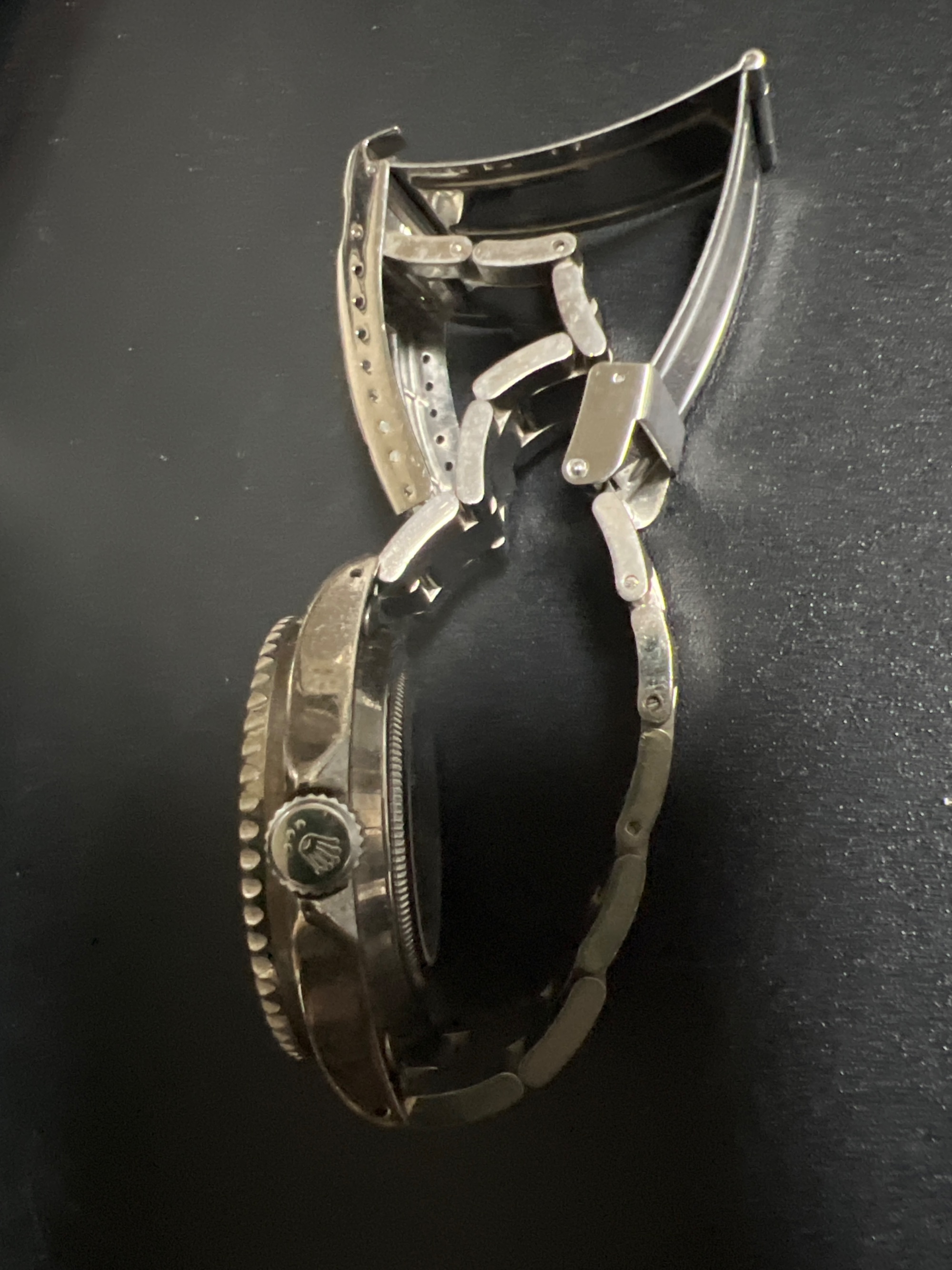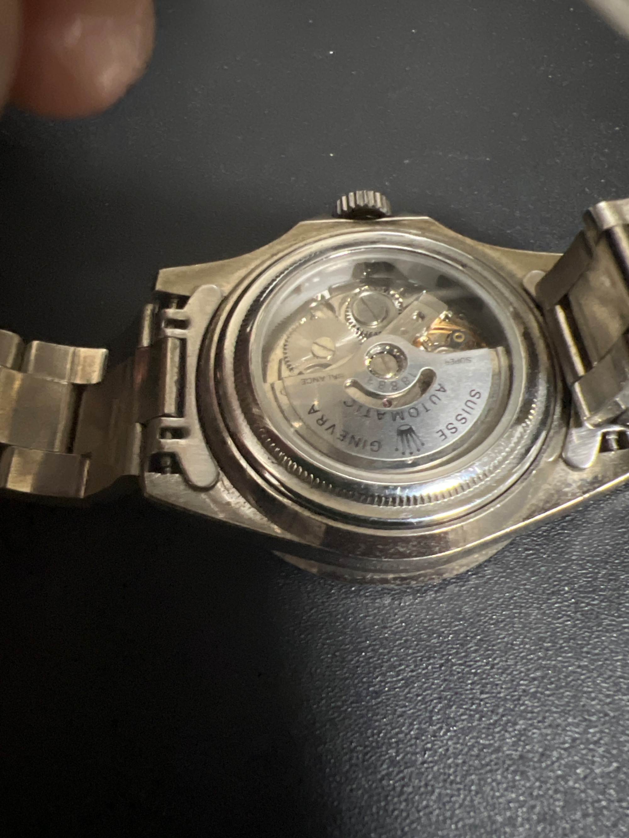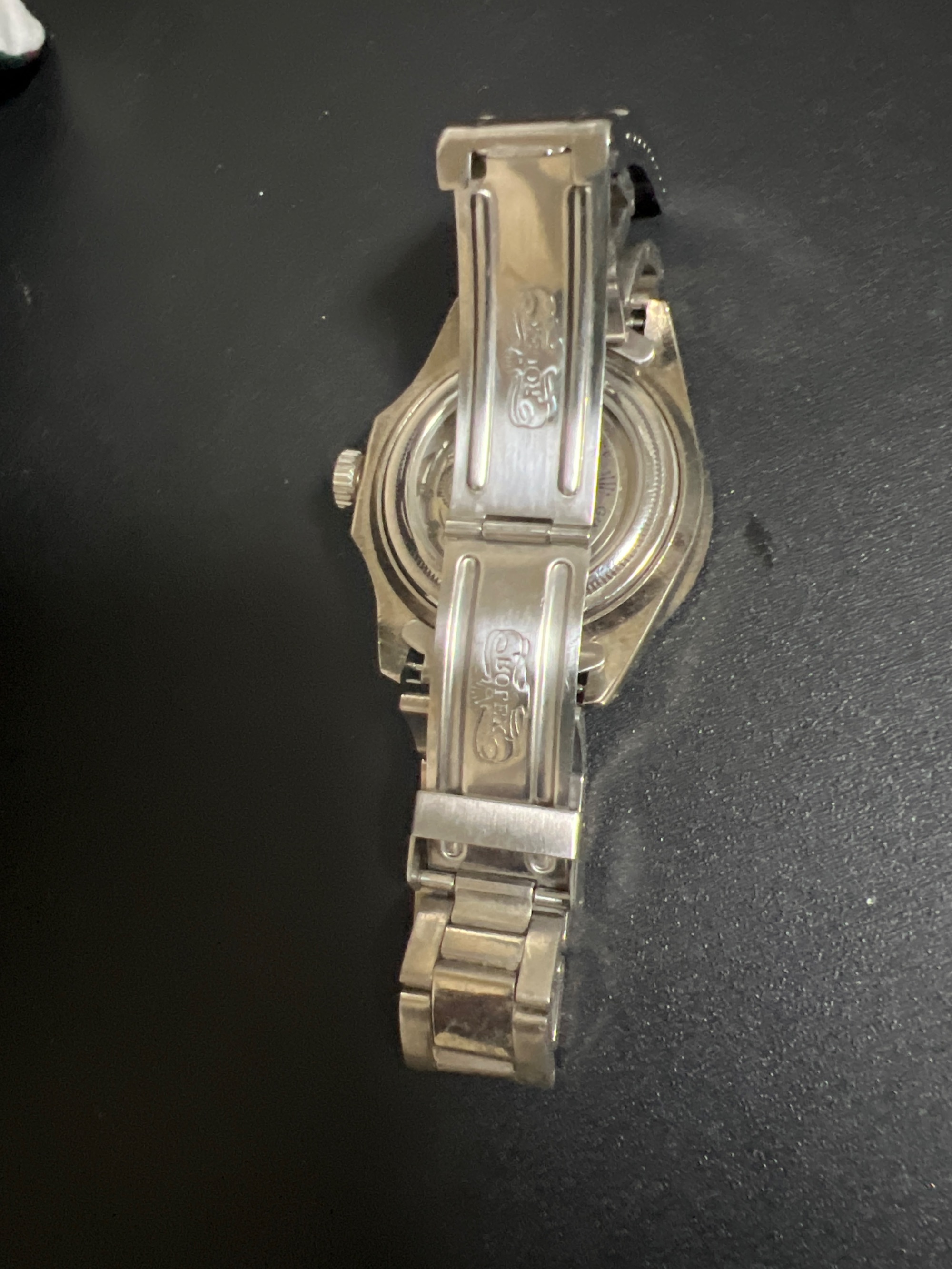 もらったのがもう10年以上前になります。時計にあまり詳しくないのでわかりません。状態は箱にも入れずにしまっていたのでベルトに汚れはあります