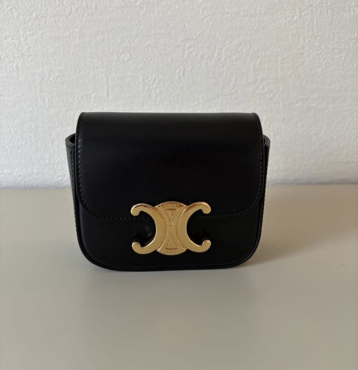 セリーヌミニトリオンフ ブラックレザー ミニショルダーバッグ