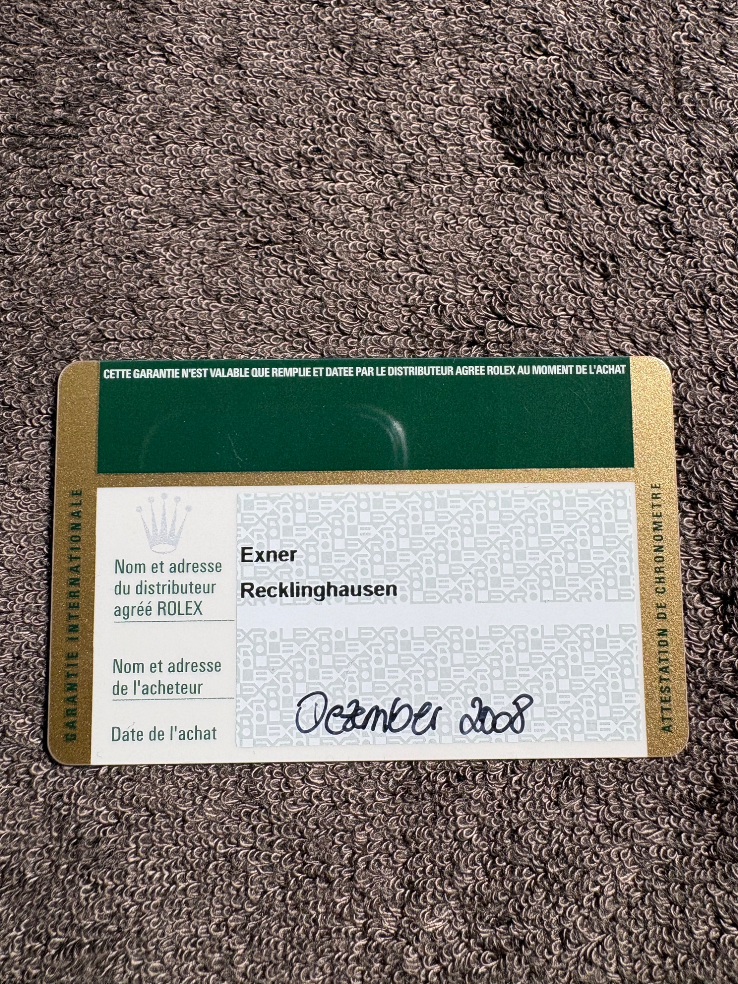 ケース一式、ギャランティ、タグ、コマ、説明書、2008年新品購入