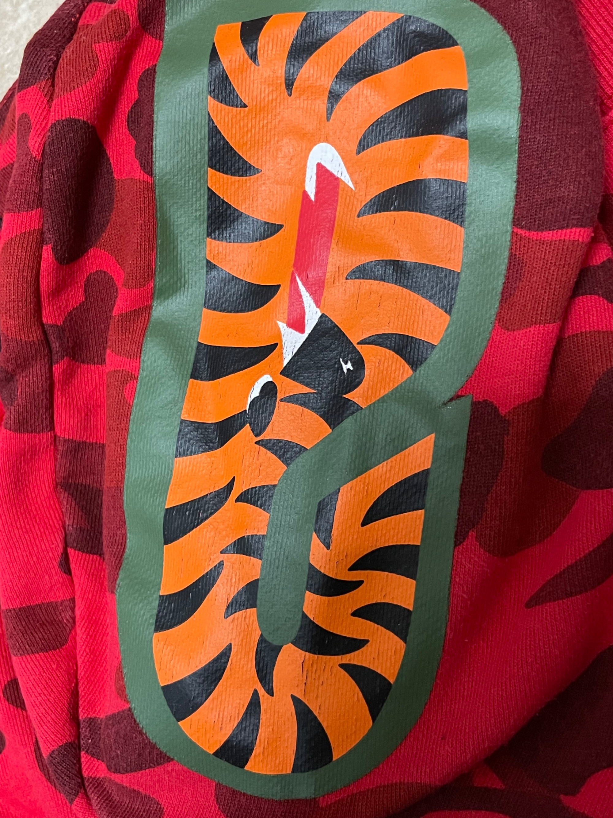 軽井沢アウトレットでの購入品とのことで古着で購入。サイズが大きすぎてやはり似合わない気がして売ろうと思いました。 古着購入後着用してません。プリントよく見ると経年劣化と思われる割れがあります。