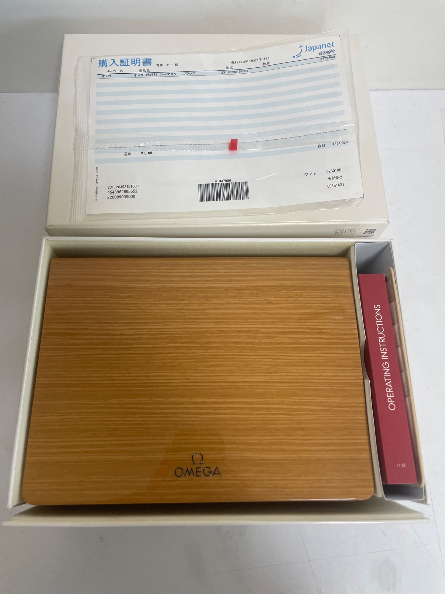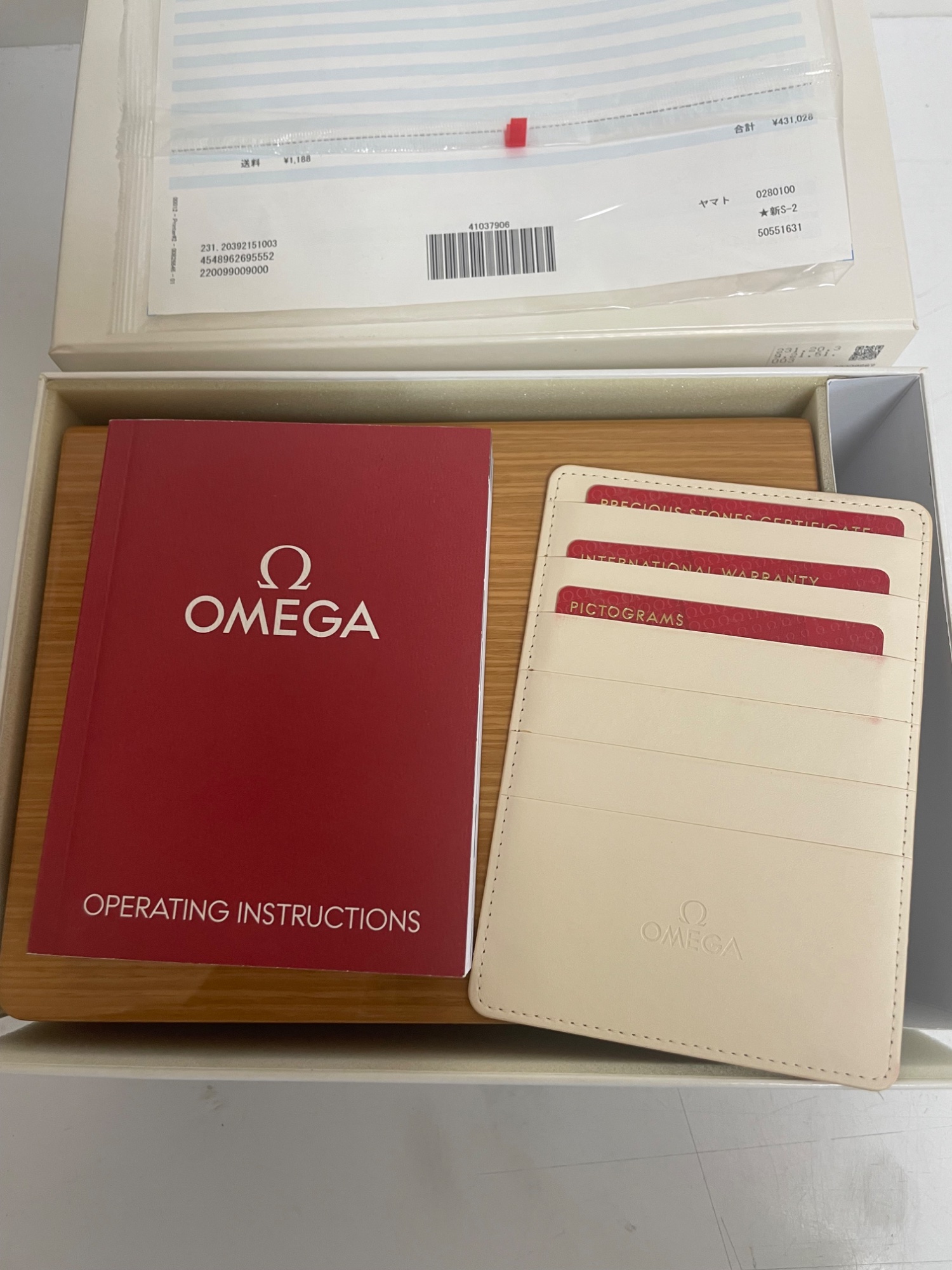 付属品完備、保証書やカード類も揃っています。