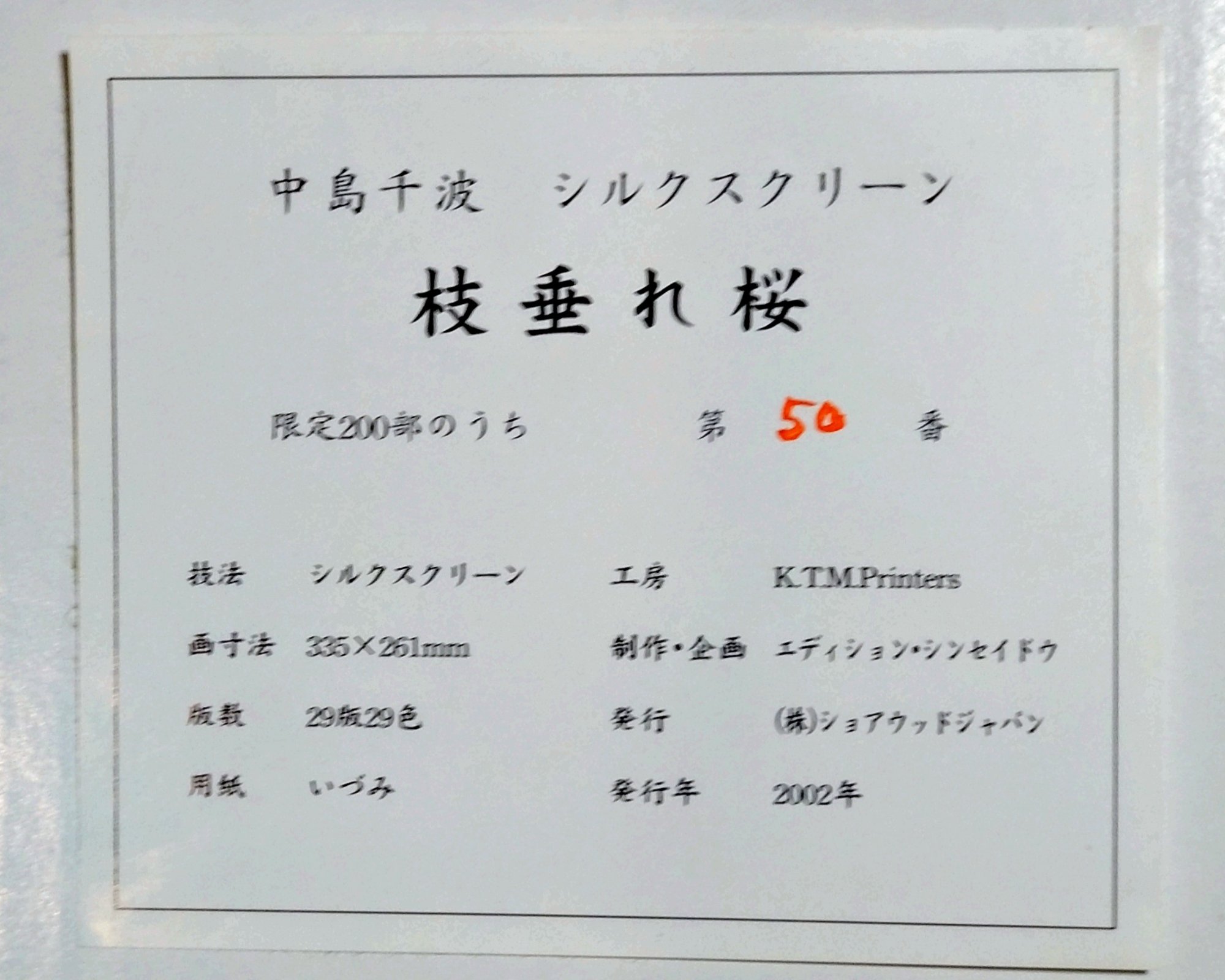 中島千波 枝垂れ桜 シルクスクリーン