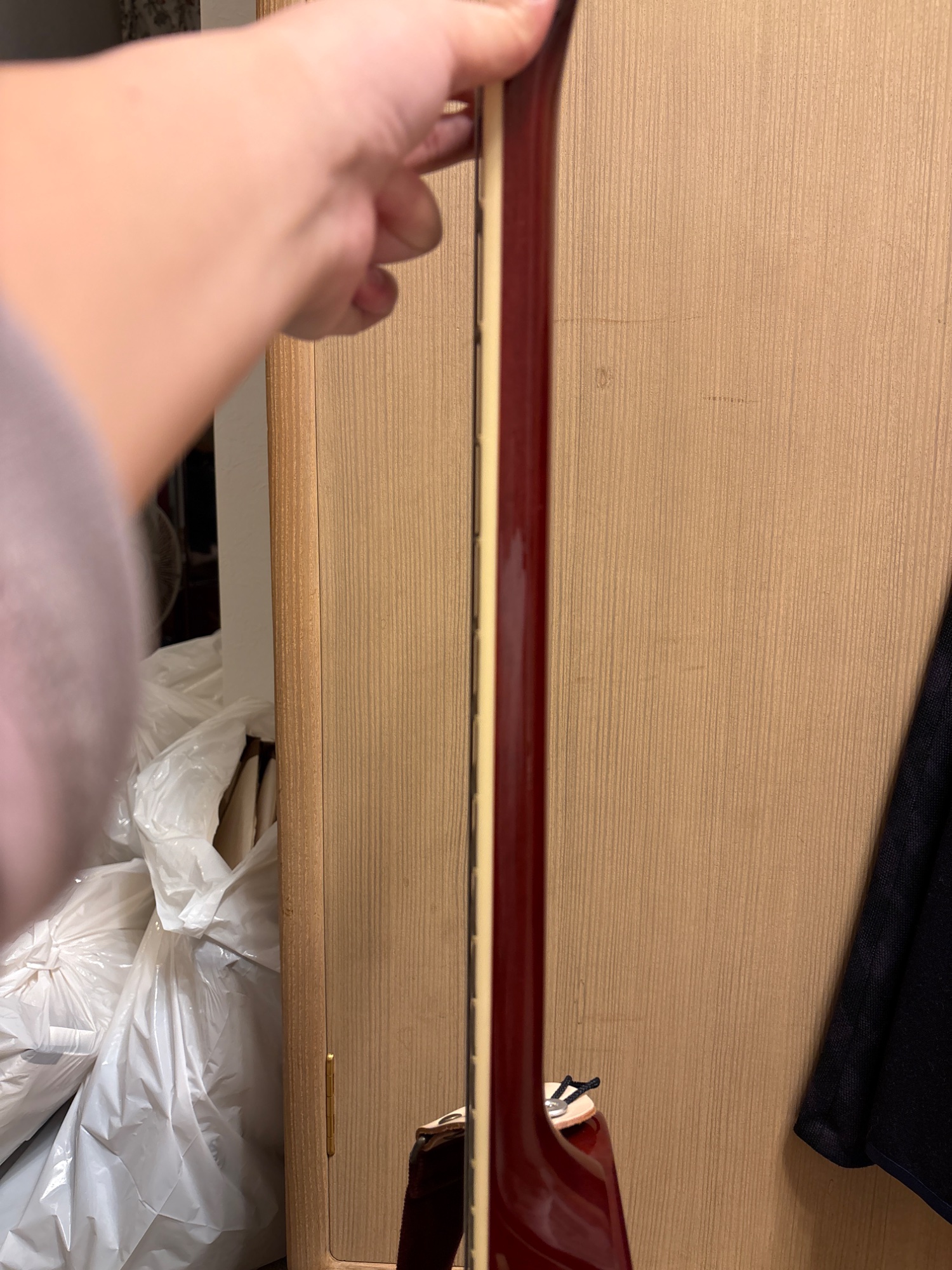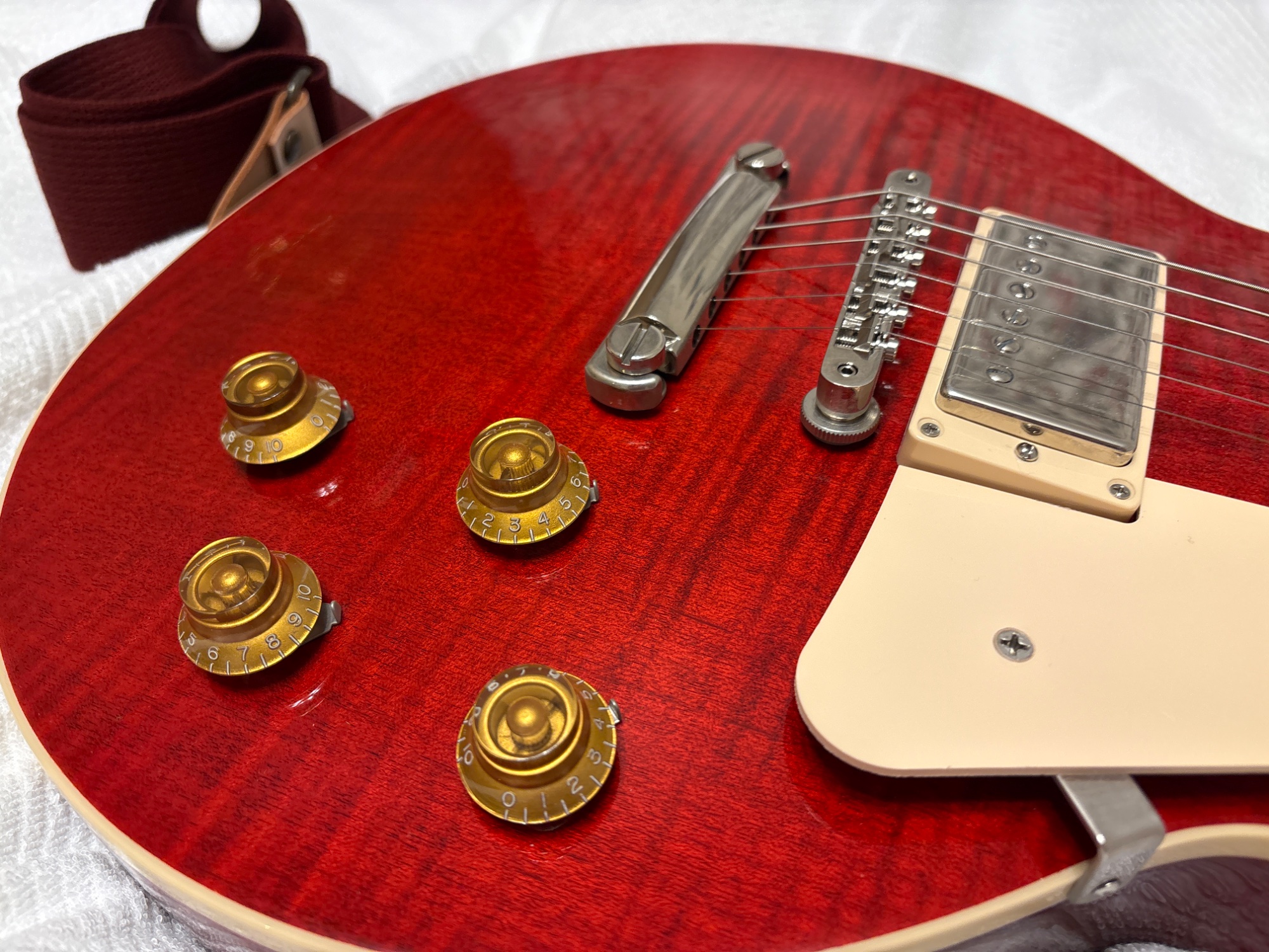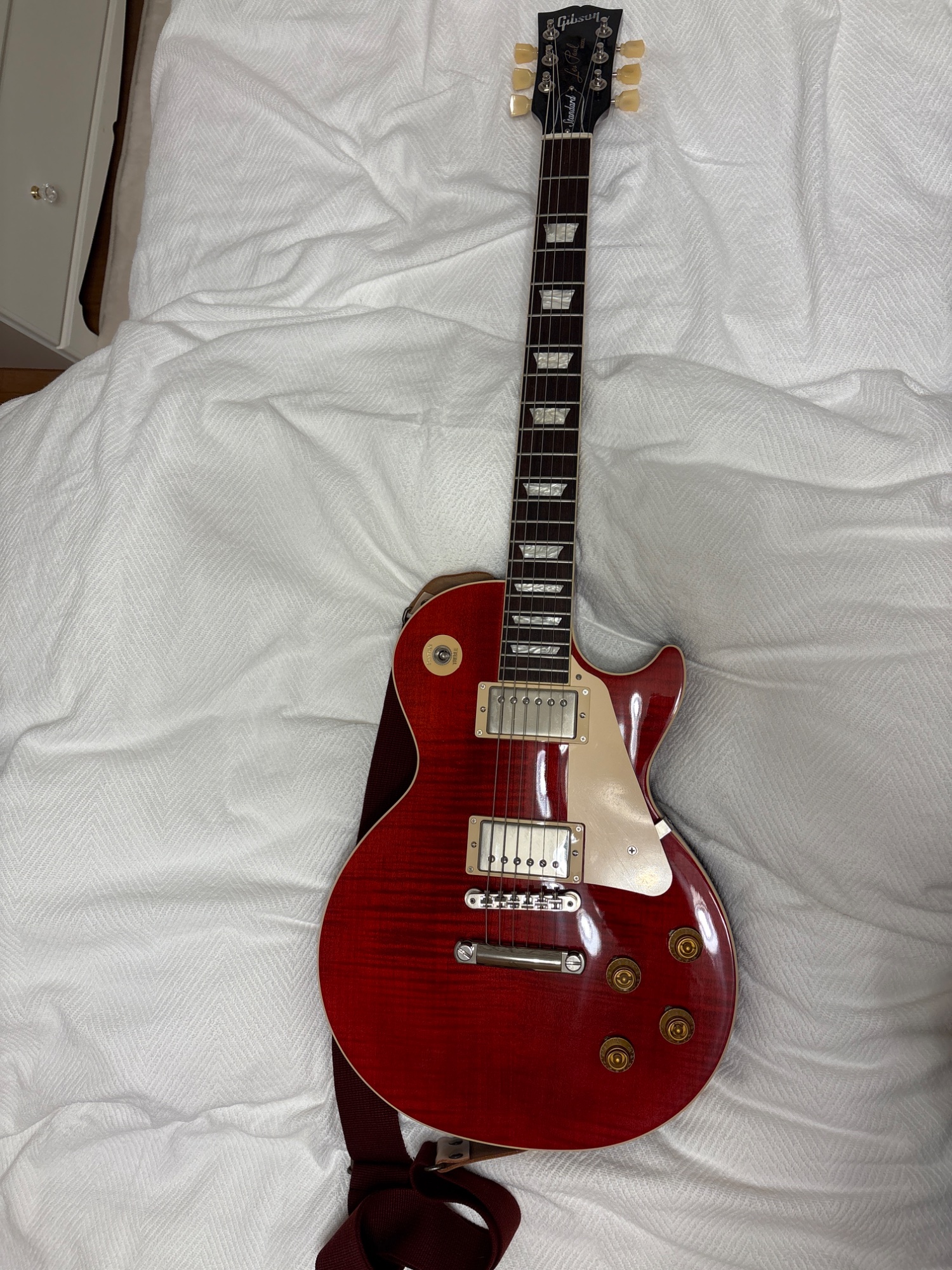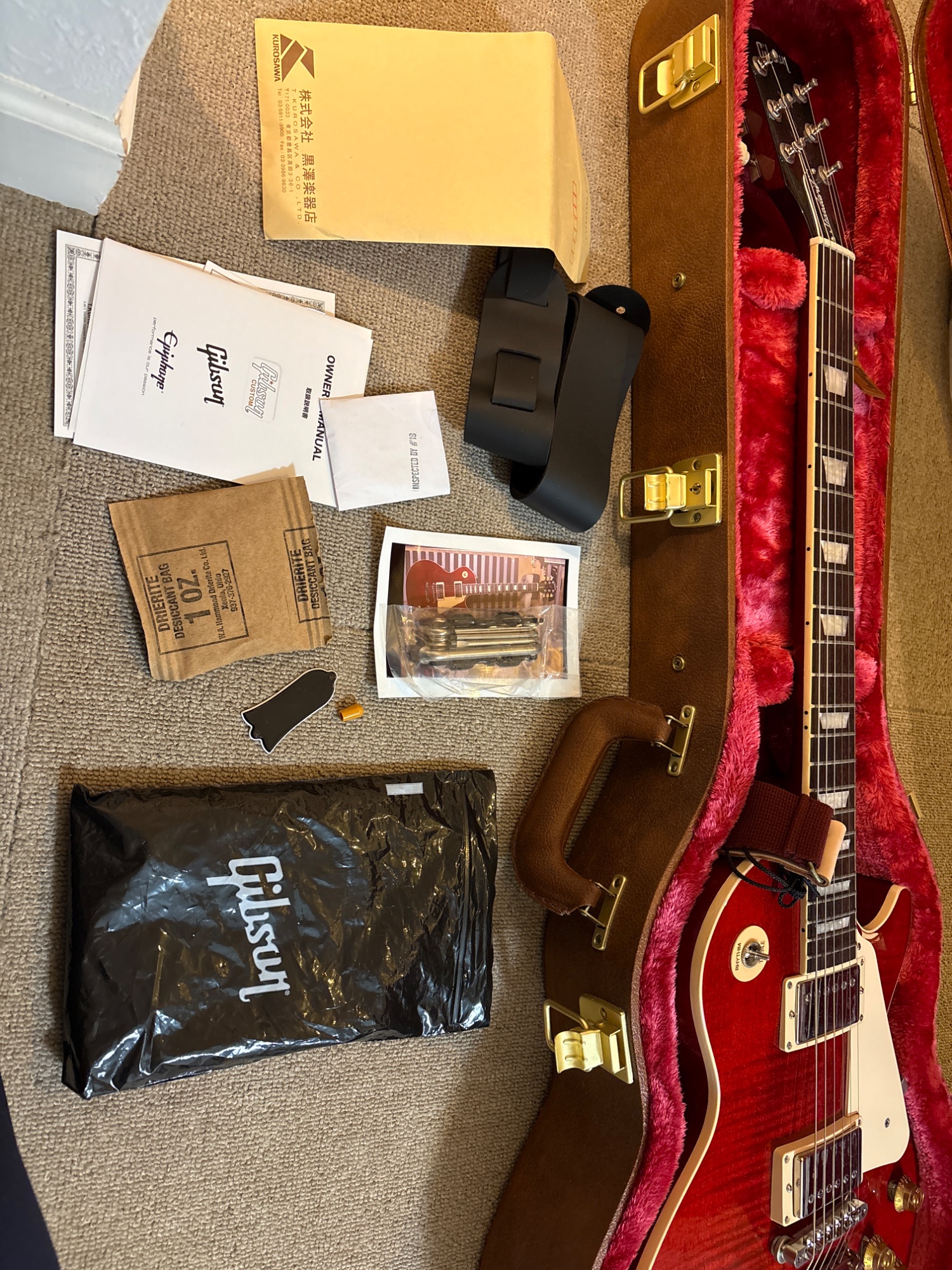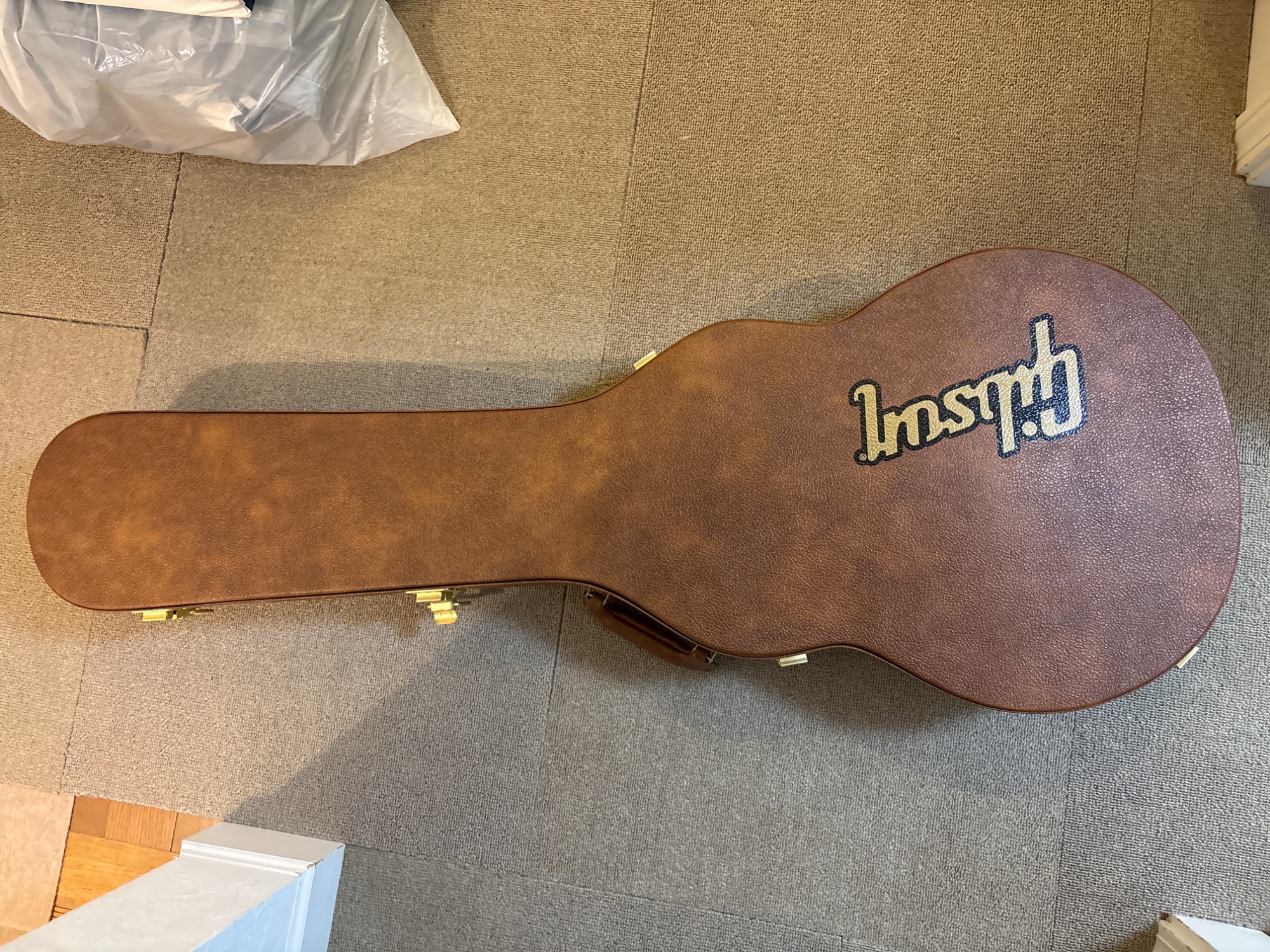 付属のハードケースと、ギブソン記念品限定ソフトケース(赤)の2ケース持っています。