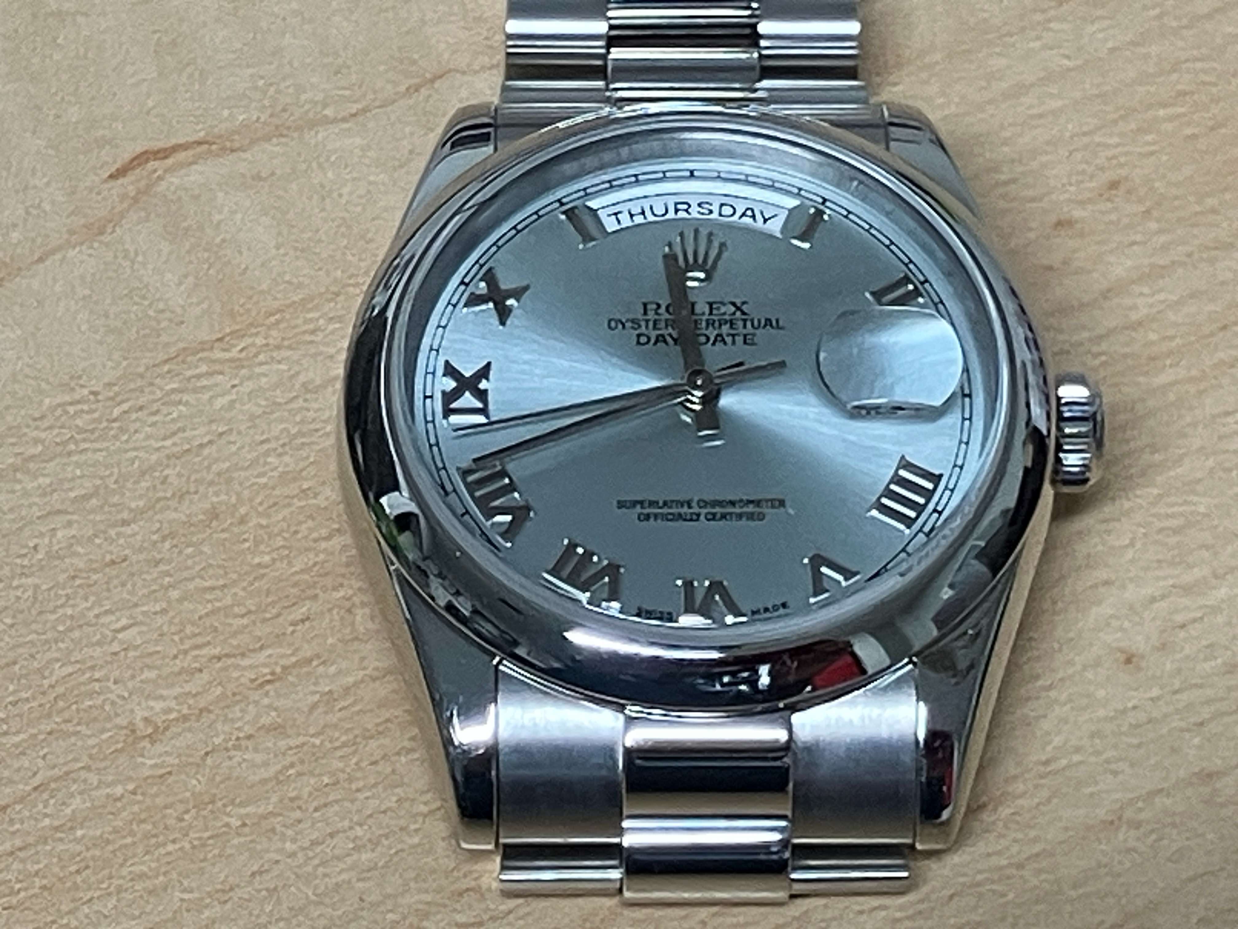 デイデイト、アイスブルー、保証書無、箱無、3年前にオーバーホール、