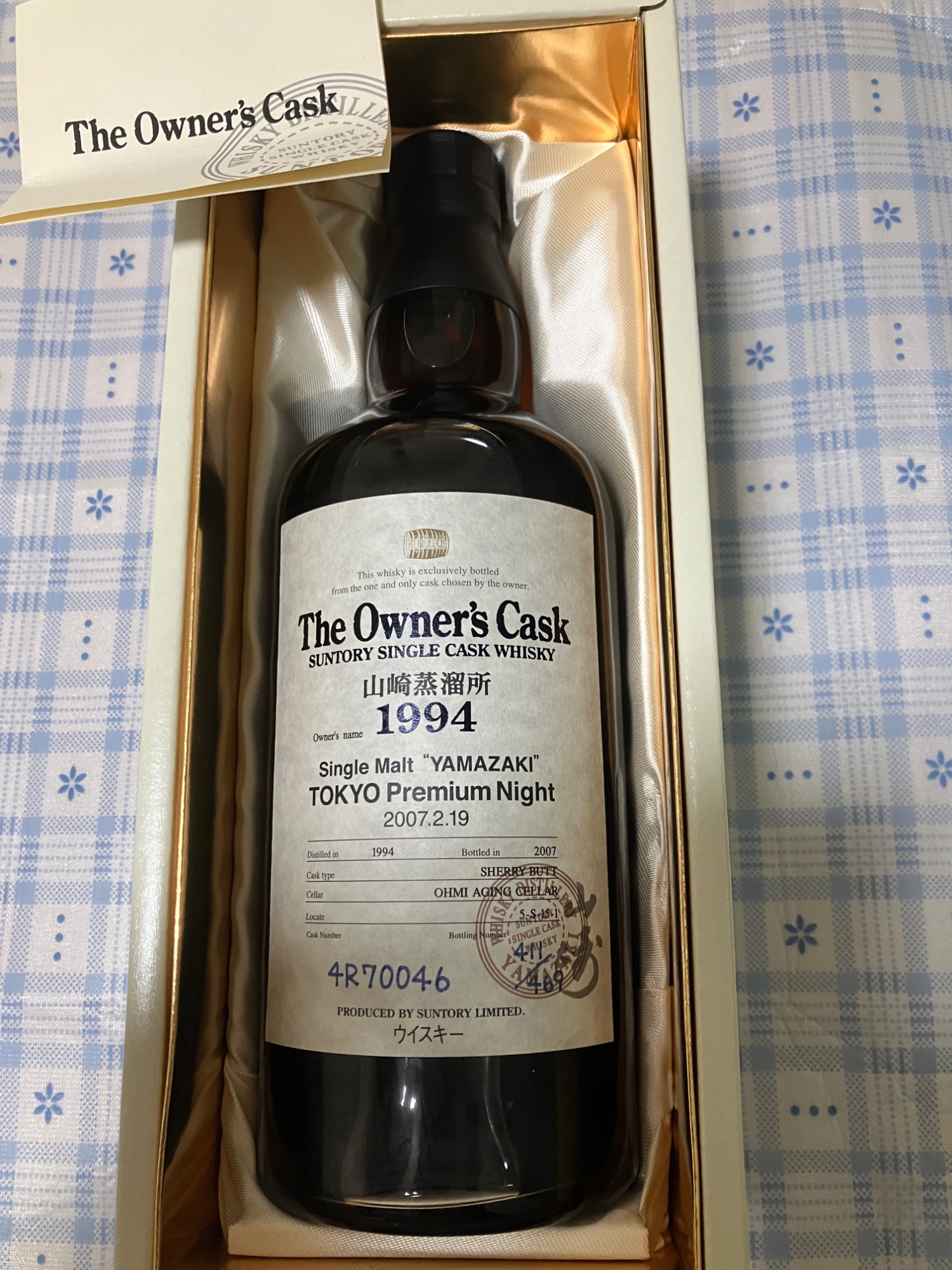 箱、リーフレット、山崎オーナーズカスク1994シェリーバッド60°東京プレミアムナイトシリアルナンバー