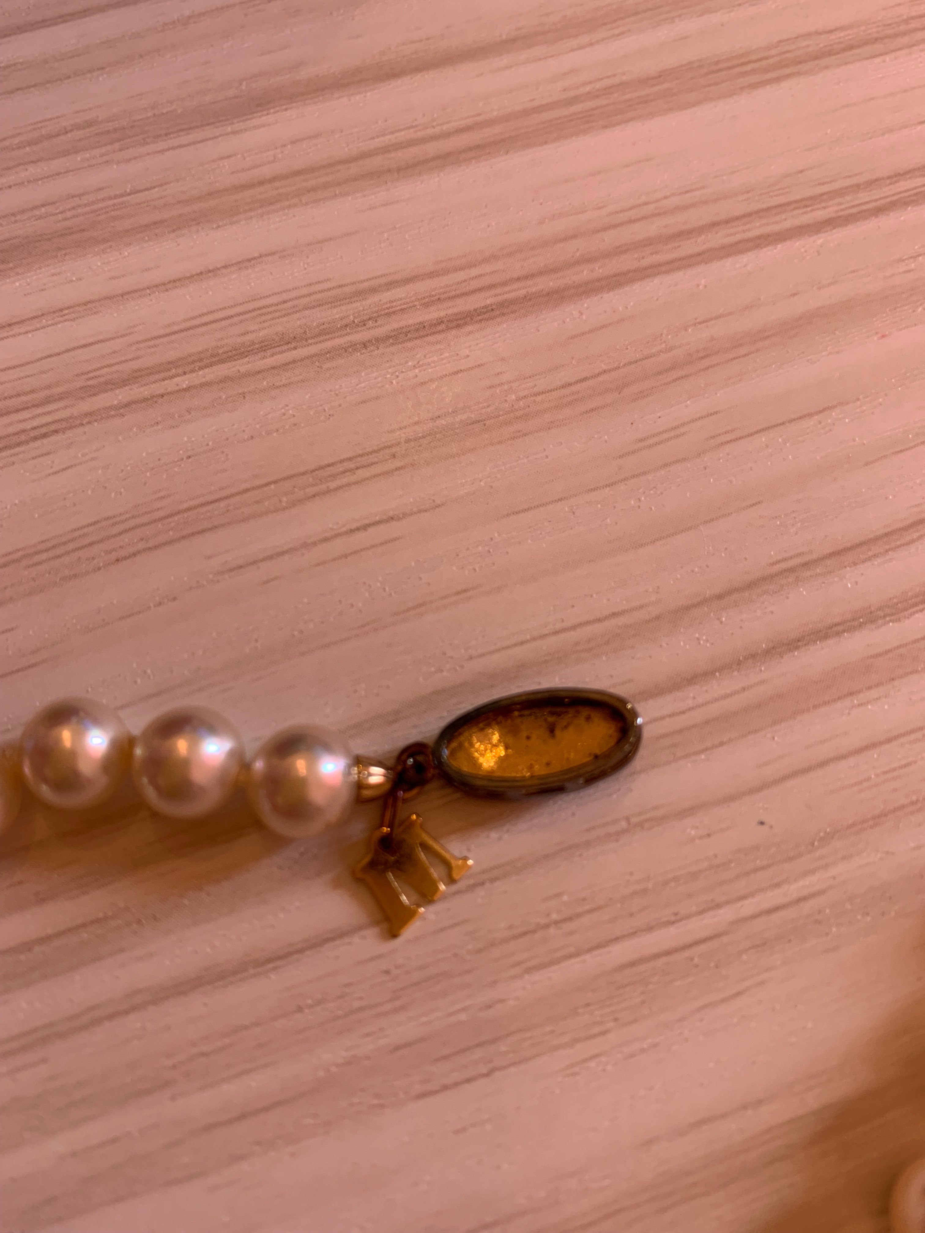 パールネックレス イニシャルM入り