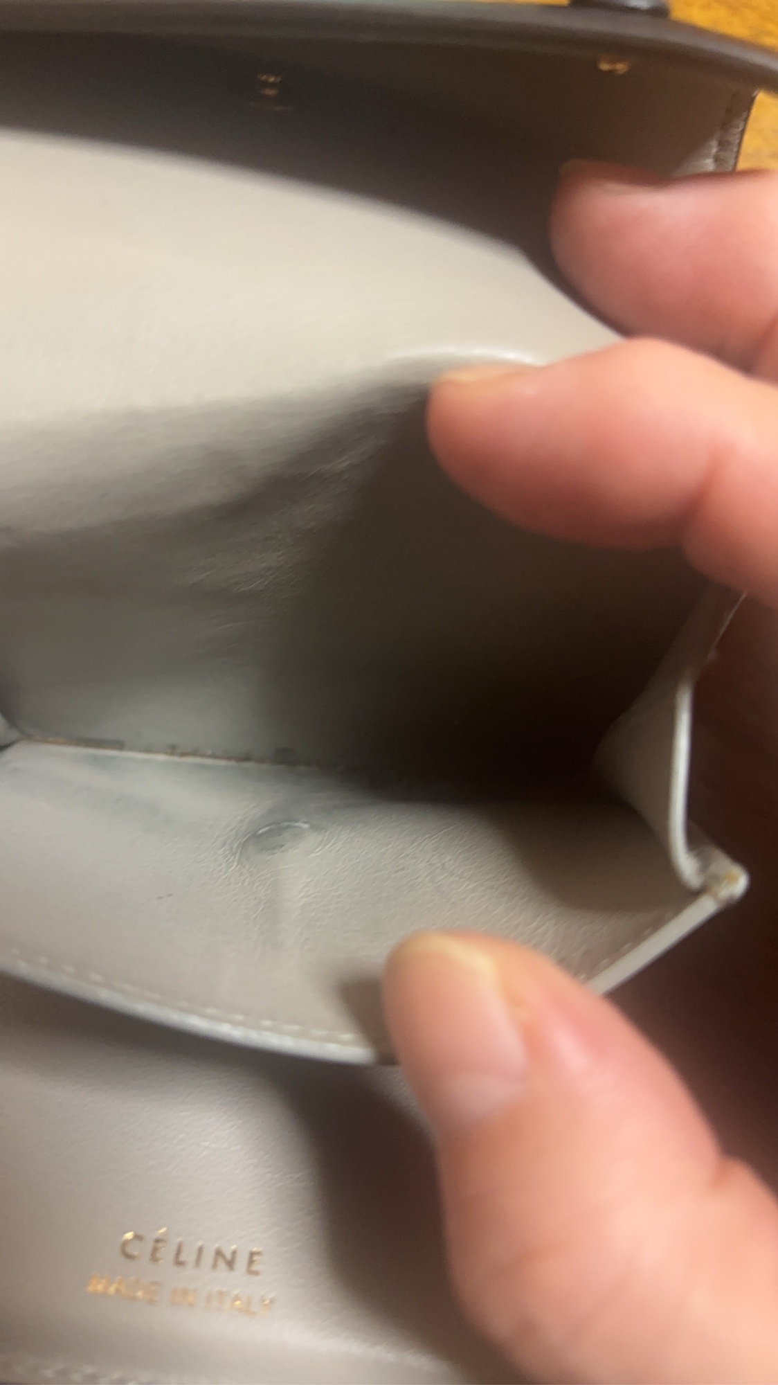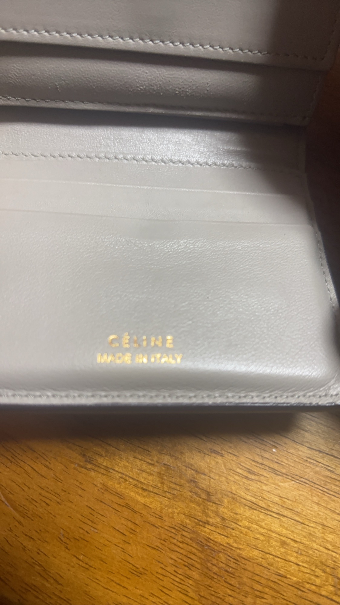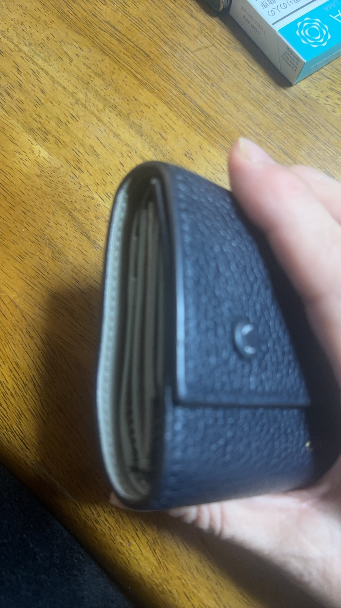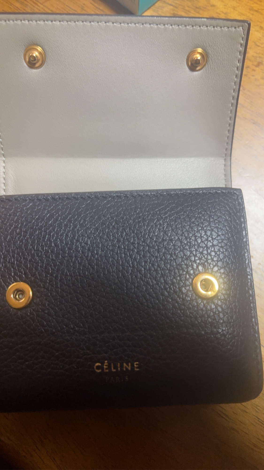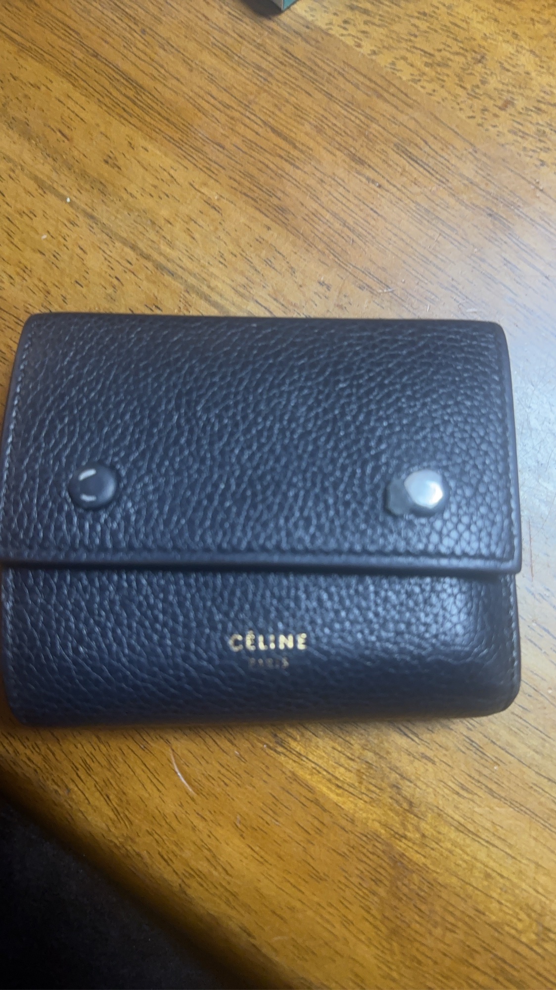①ブランド:セリーヌ ②商品名:スモール フォールデッドマルチファンクション 三つ折り財布 ③型番:s-PG-3167 ④色:ネイビー/- ⑤素材:革