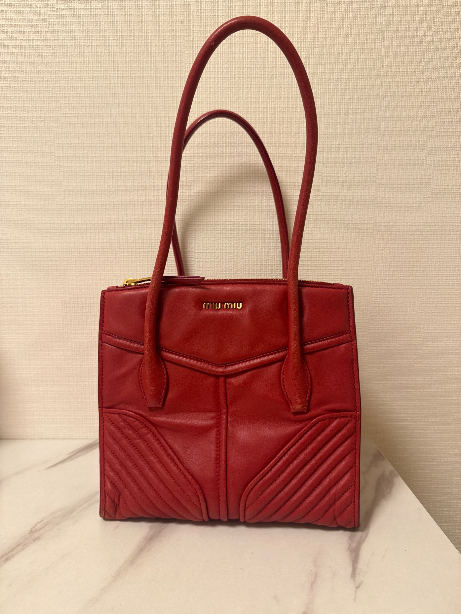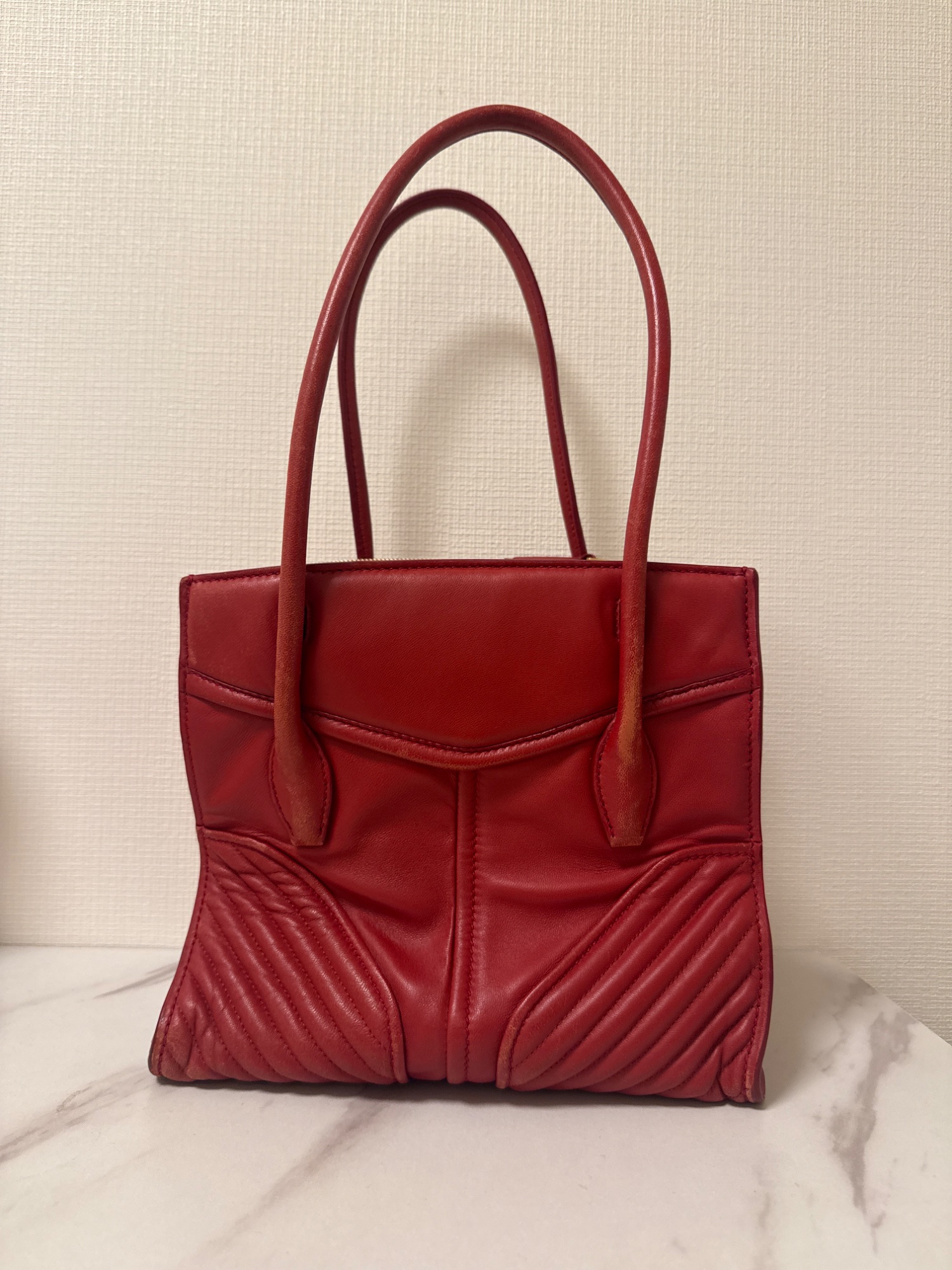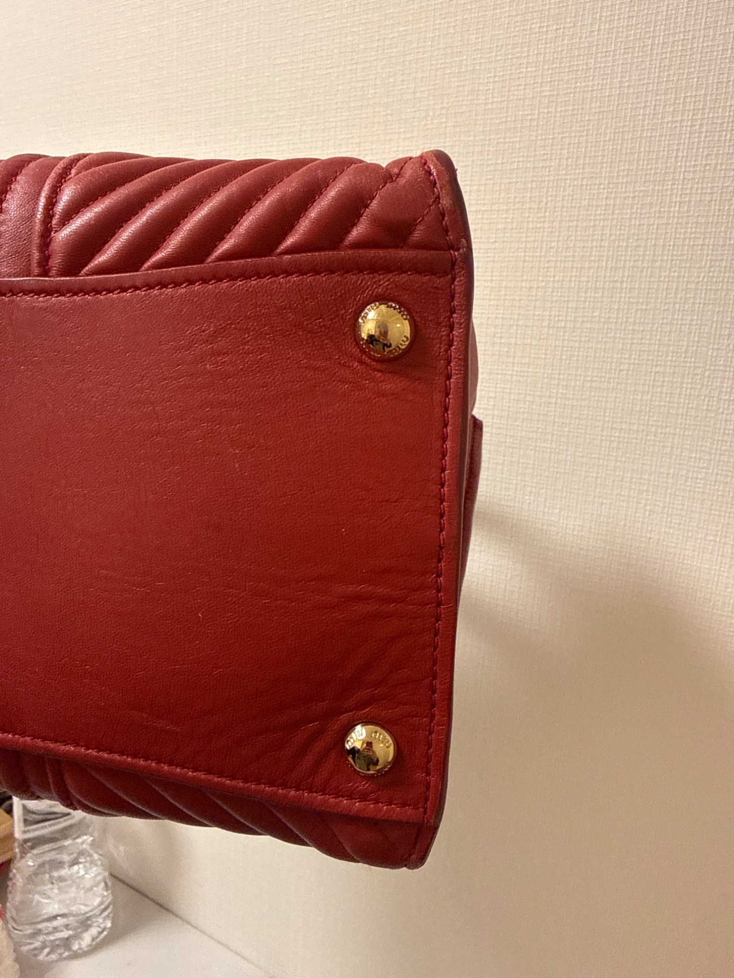 ラムスキンだったと思うのでやわらかく、取っ手やそこの四角のスレはあります。