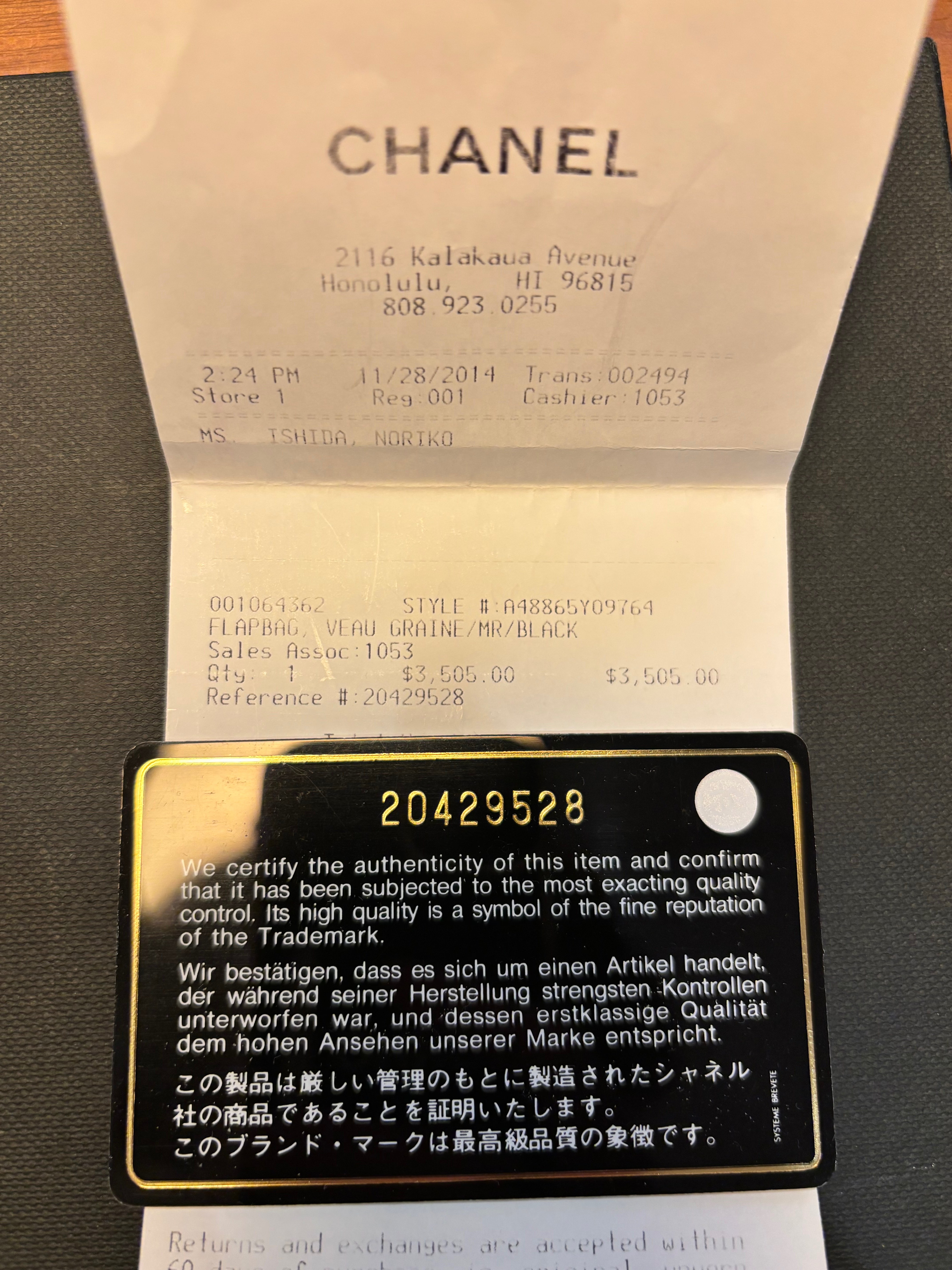 ギャランティーカードあり
