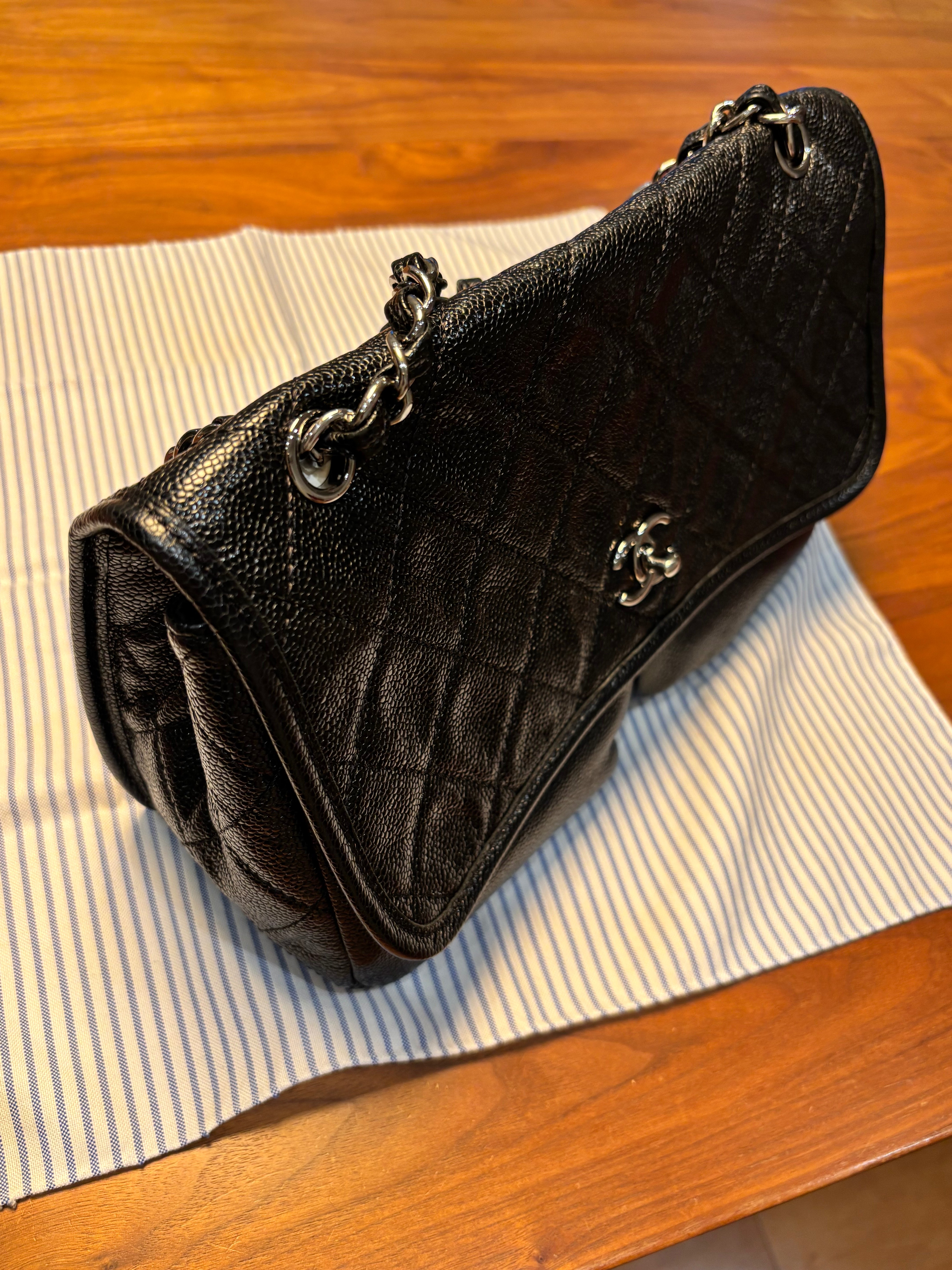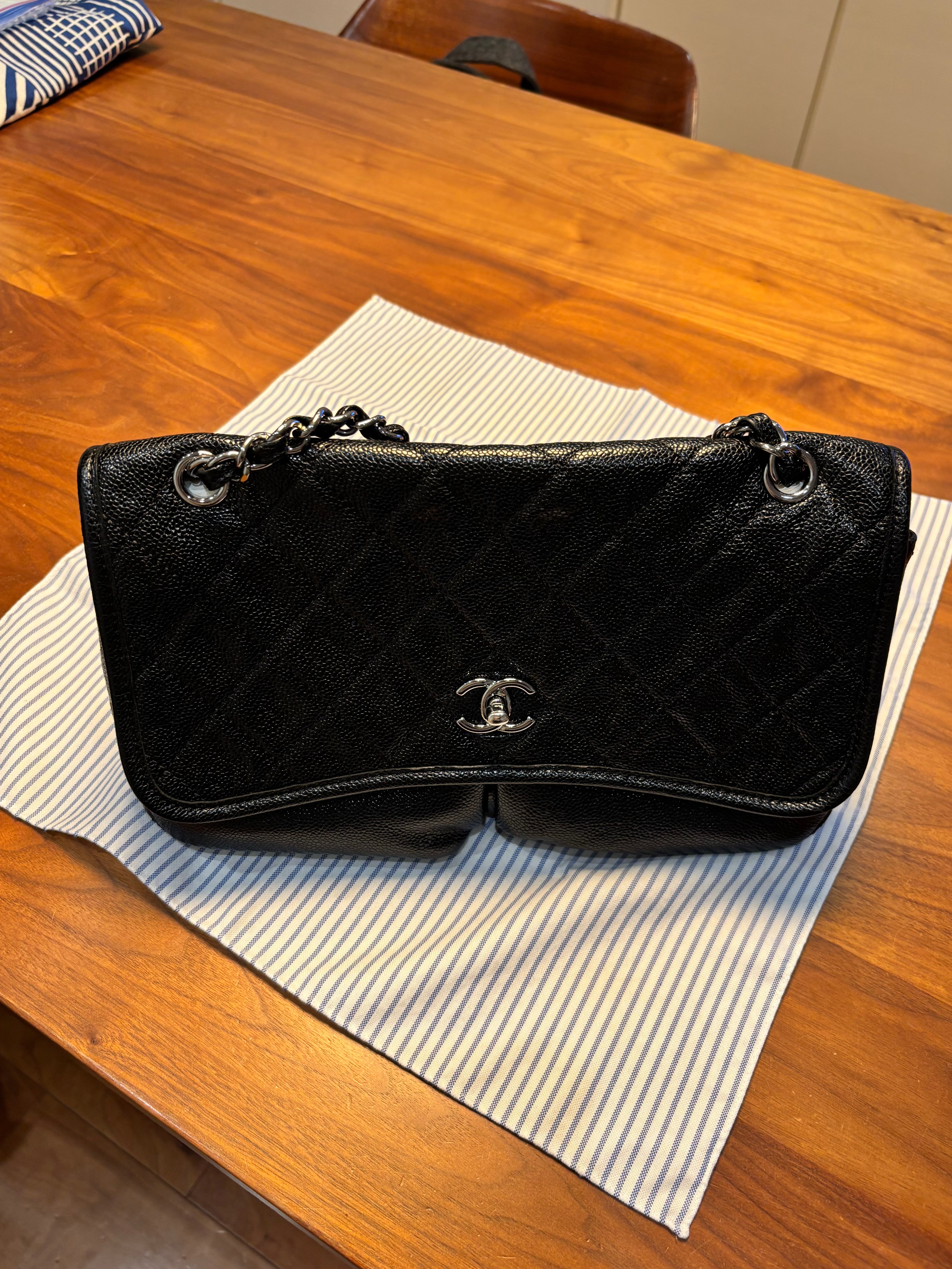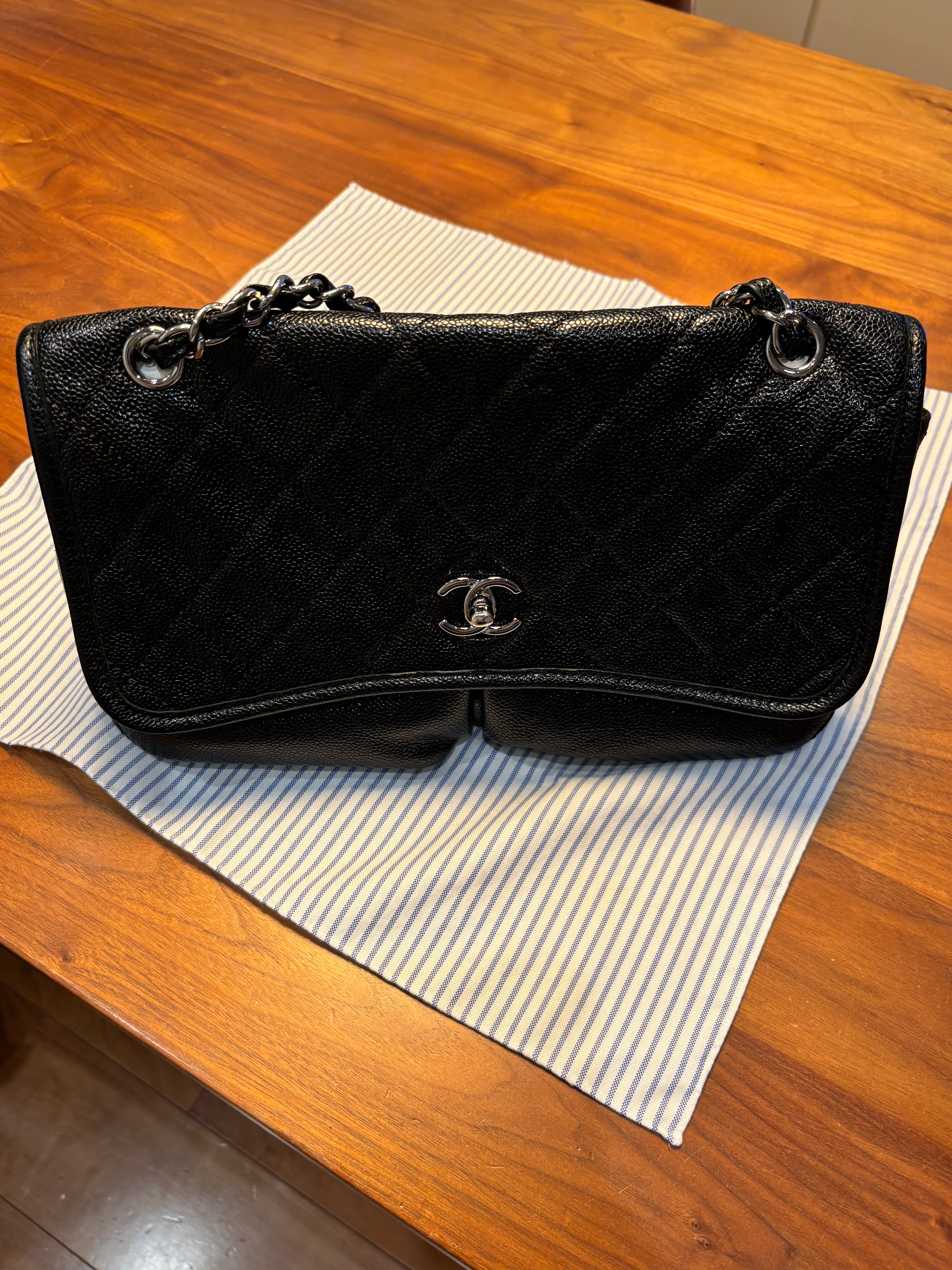 キャビアスキンのフラップバッグ