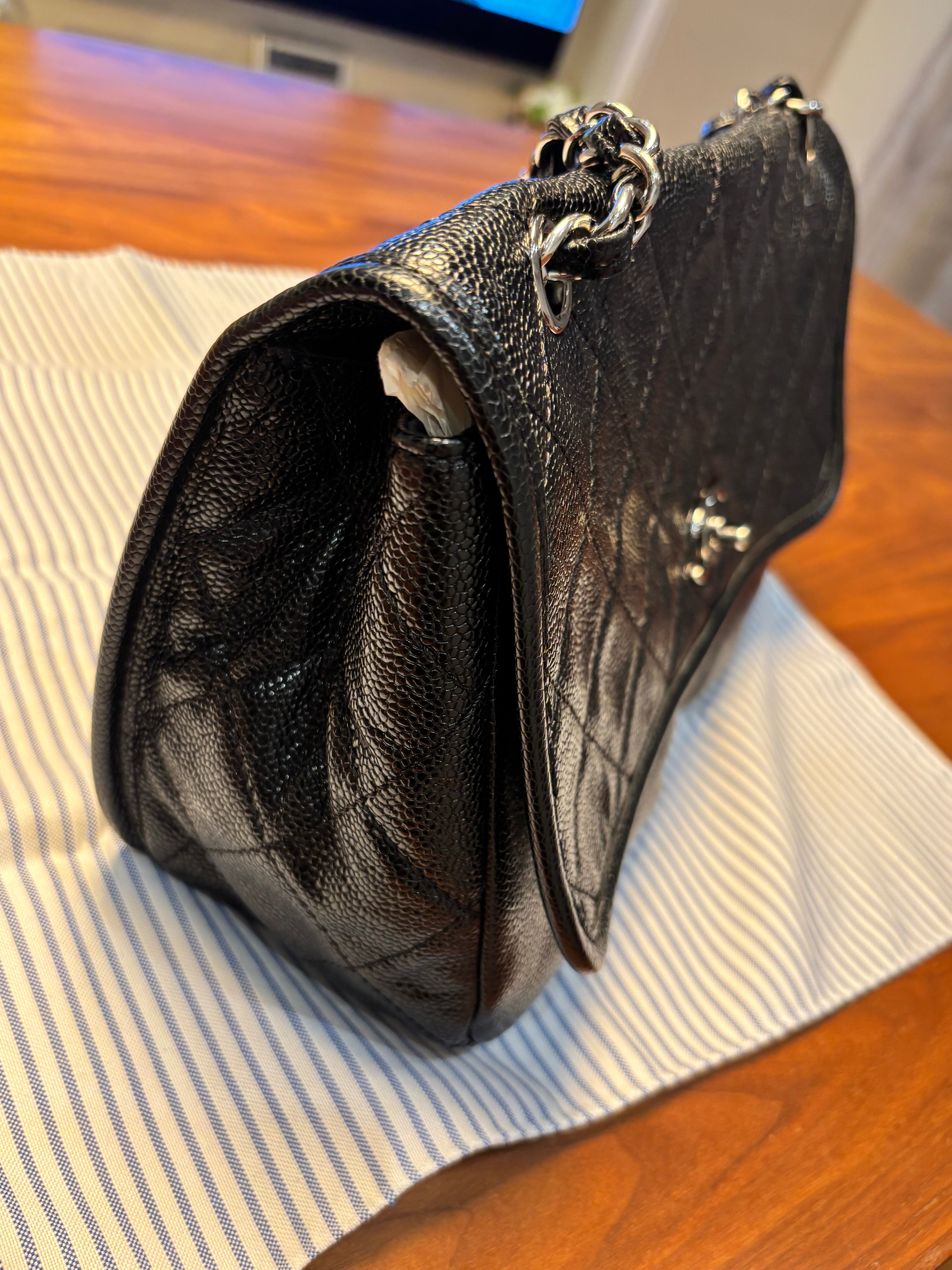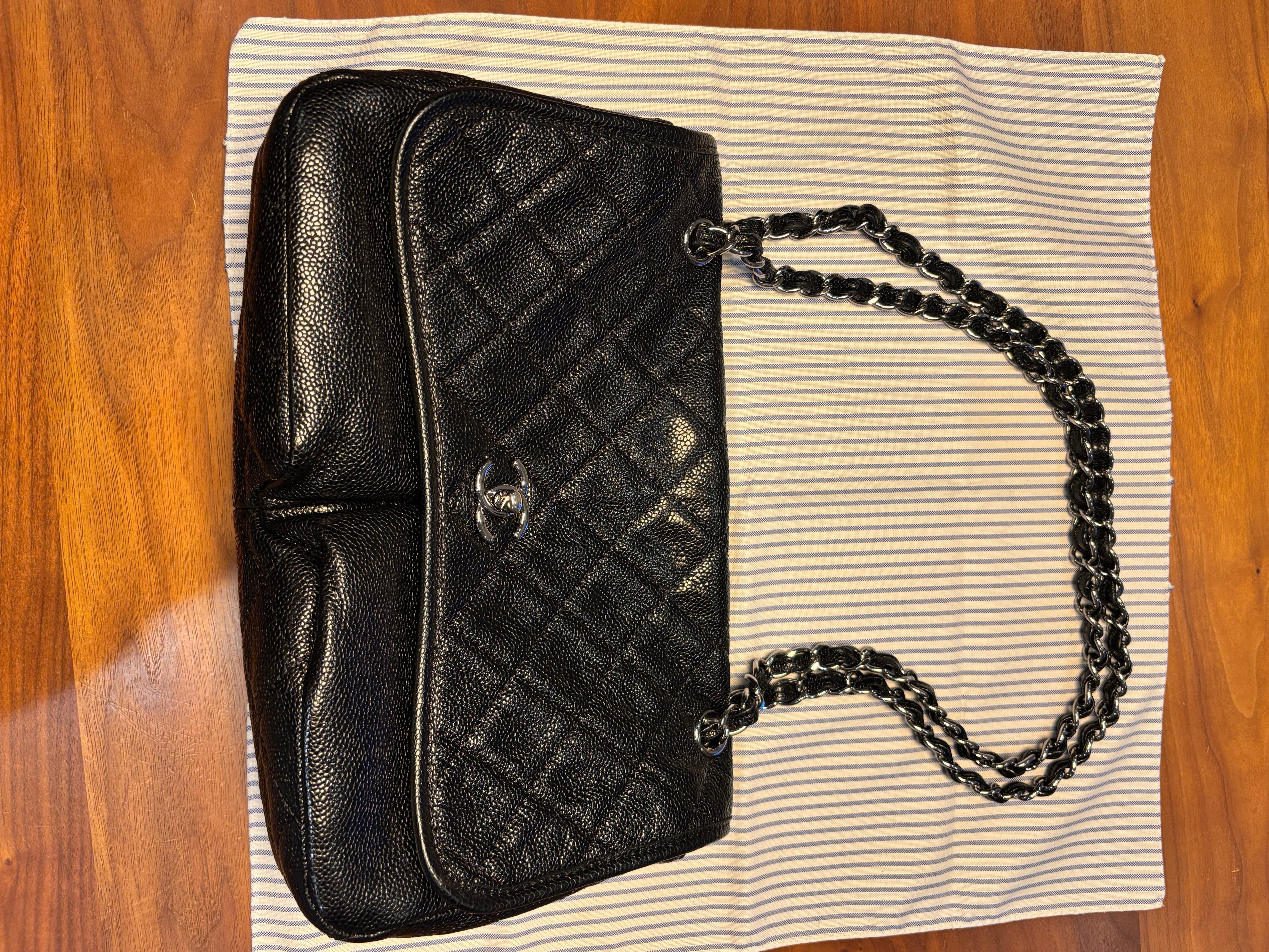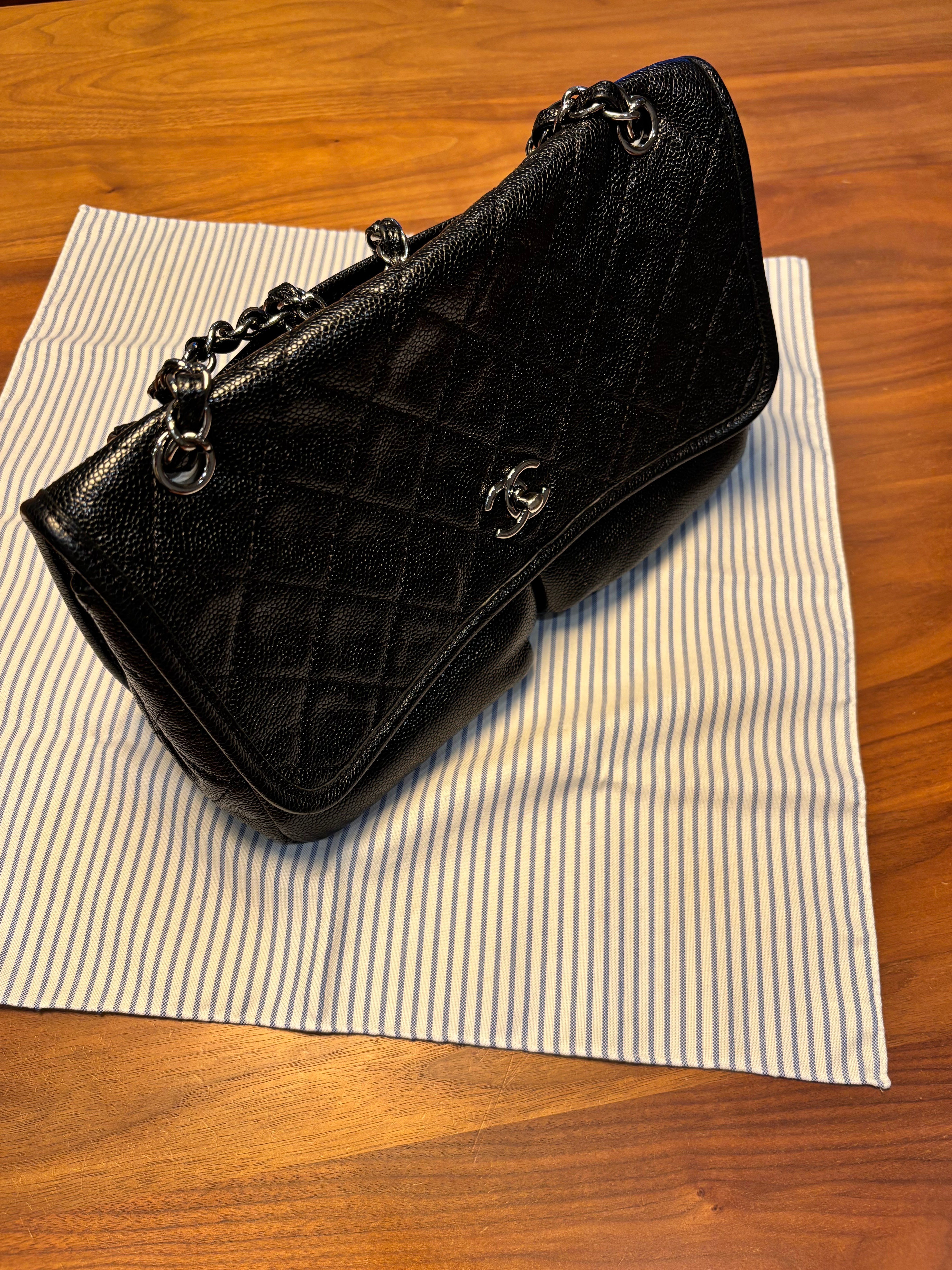 キャビアスキンのフラップバッグ
