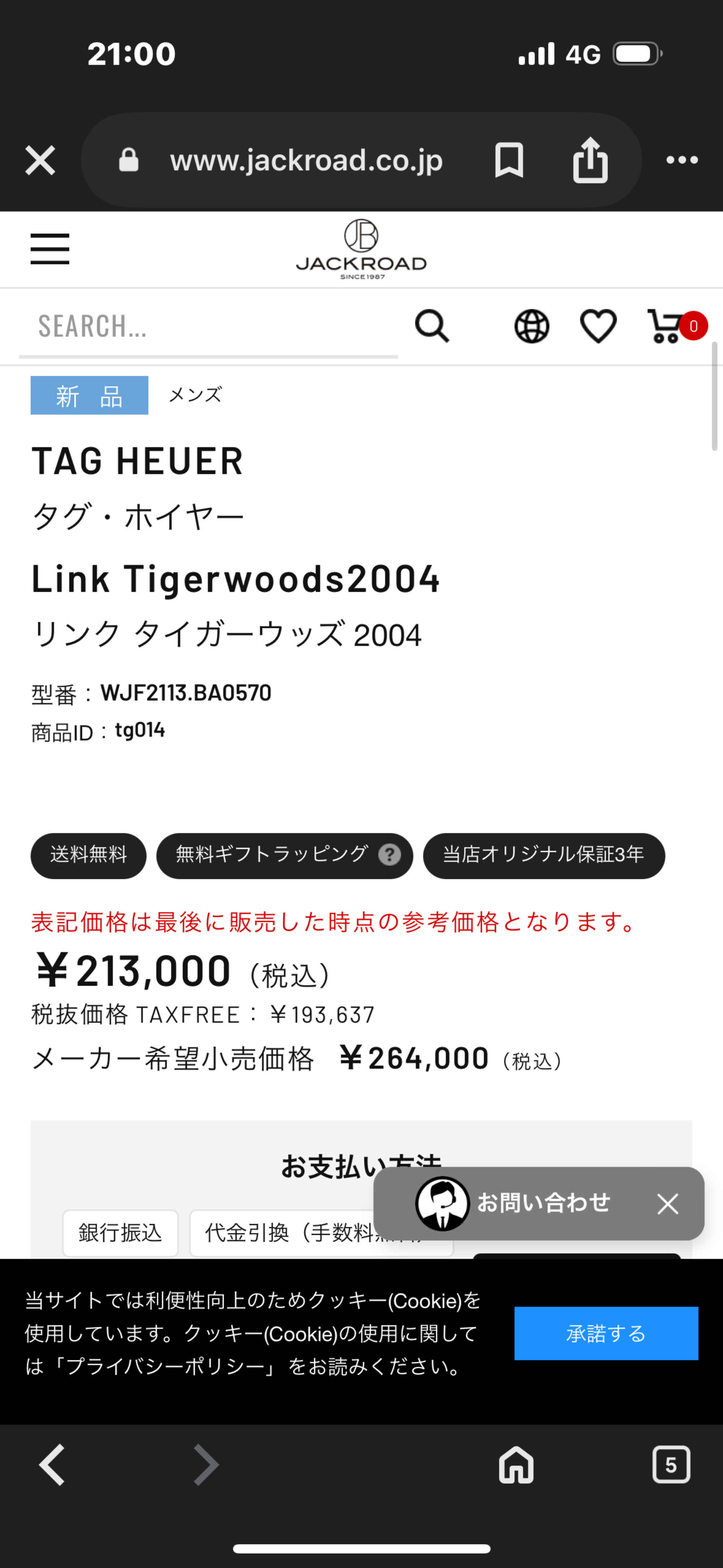 タグホイヤー リンク TIGER WOODS WJF2113 XL807(リンク)の査定価格・買取相場 (最高査定価格 55,000円)