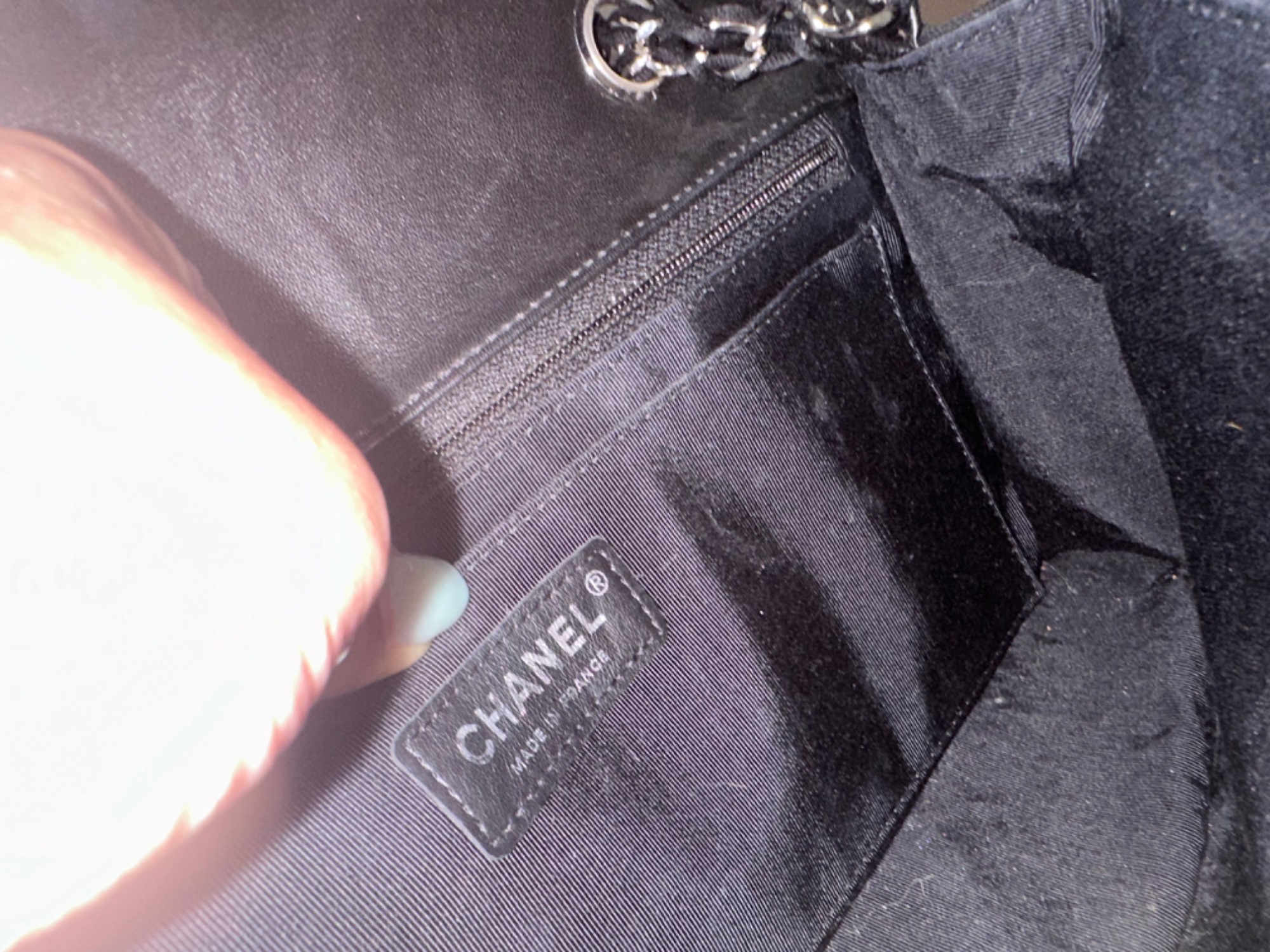 箱あり、ギャランティーカードは探せばあるかも、片側の角に日焼けあり、使用は数回、他は目立った傷なし、福岡のシャネル店舗にて購入