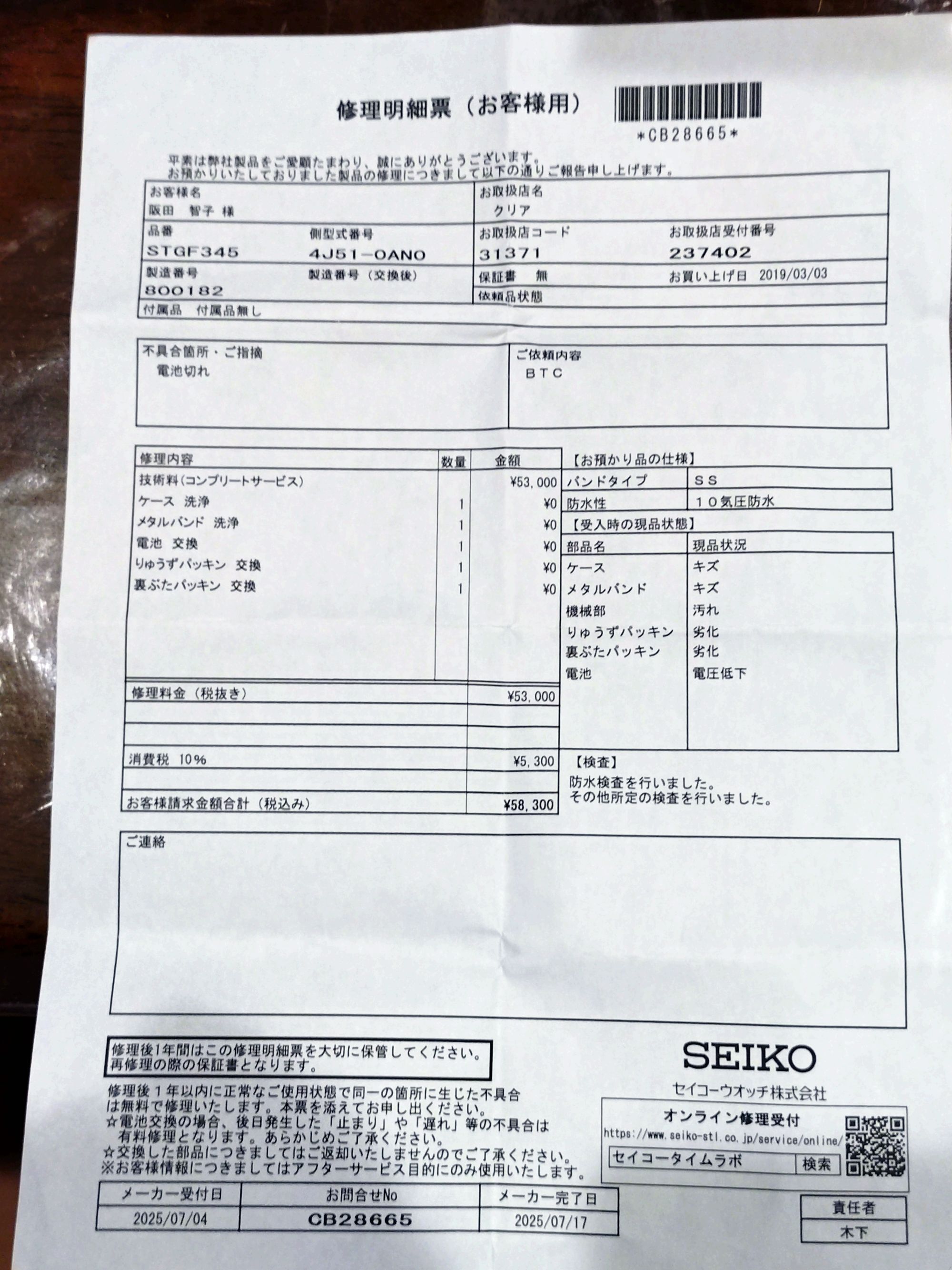 また電池交換後、1度も使用していません