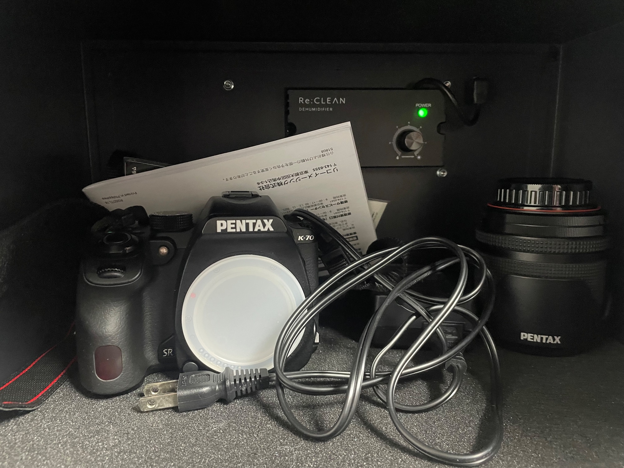 取説有り、2020/5月購入、18〜135wズームレンズ、防湿庫に保管、防湿庫も売却可能、春夏秋冬の各時期に1回ずつくらい使用。