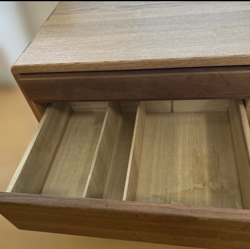 左側下の引き出しに写真のようなシミがあります。宜しくお願いします。