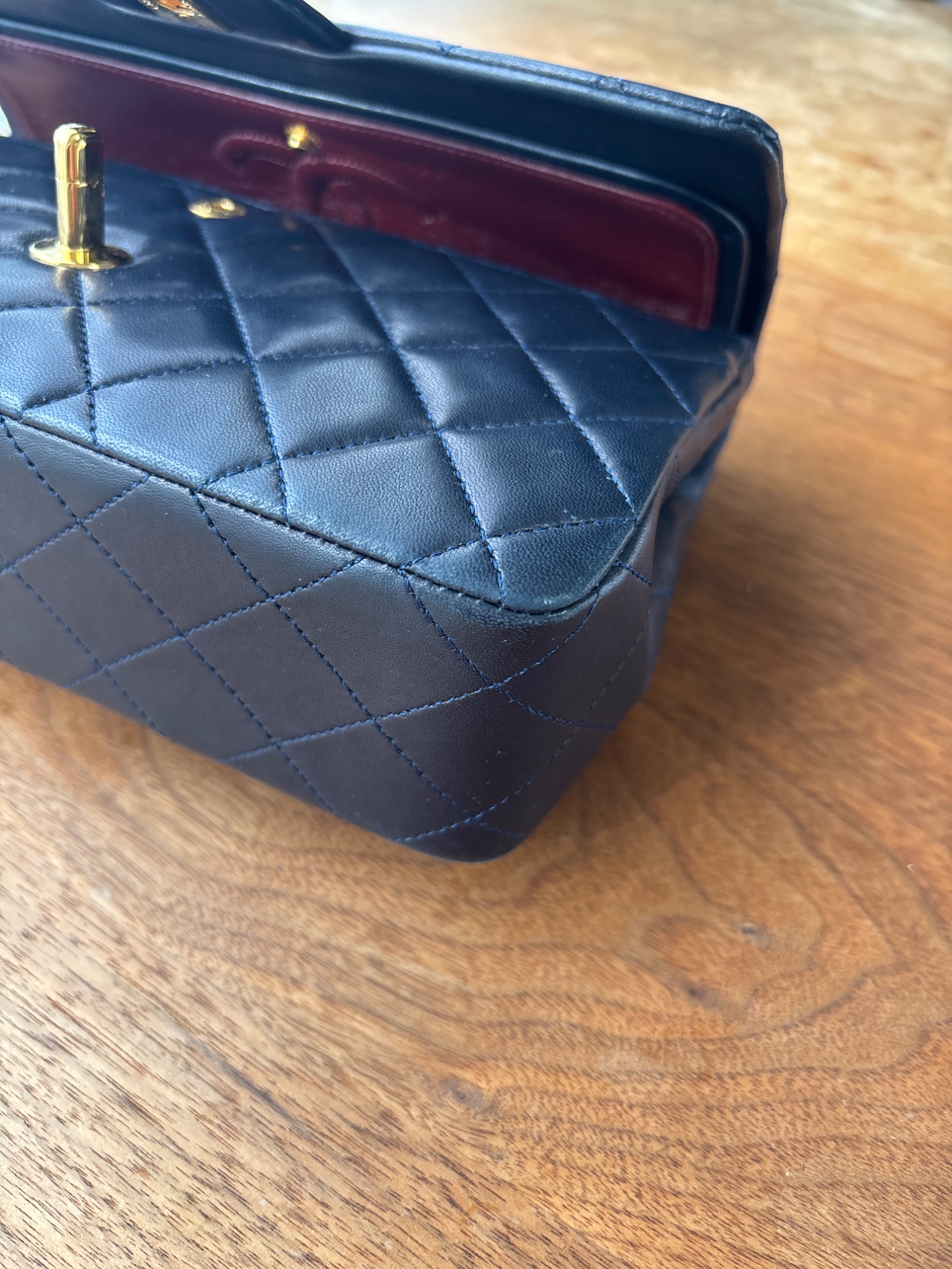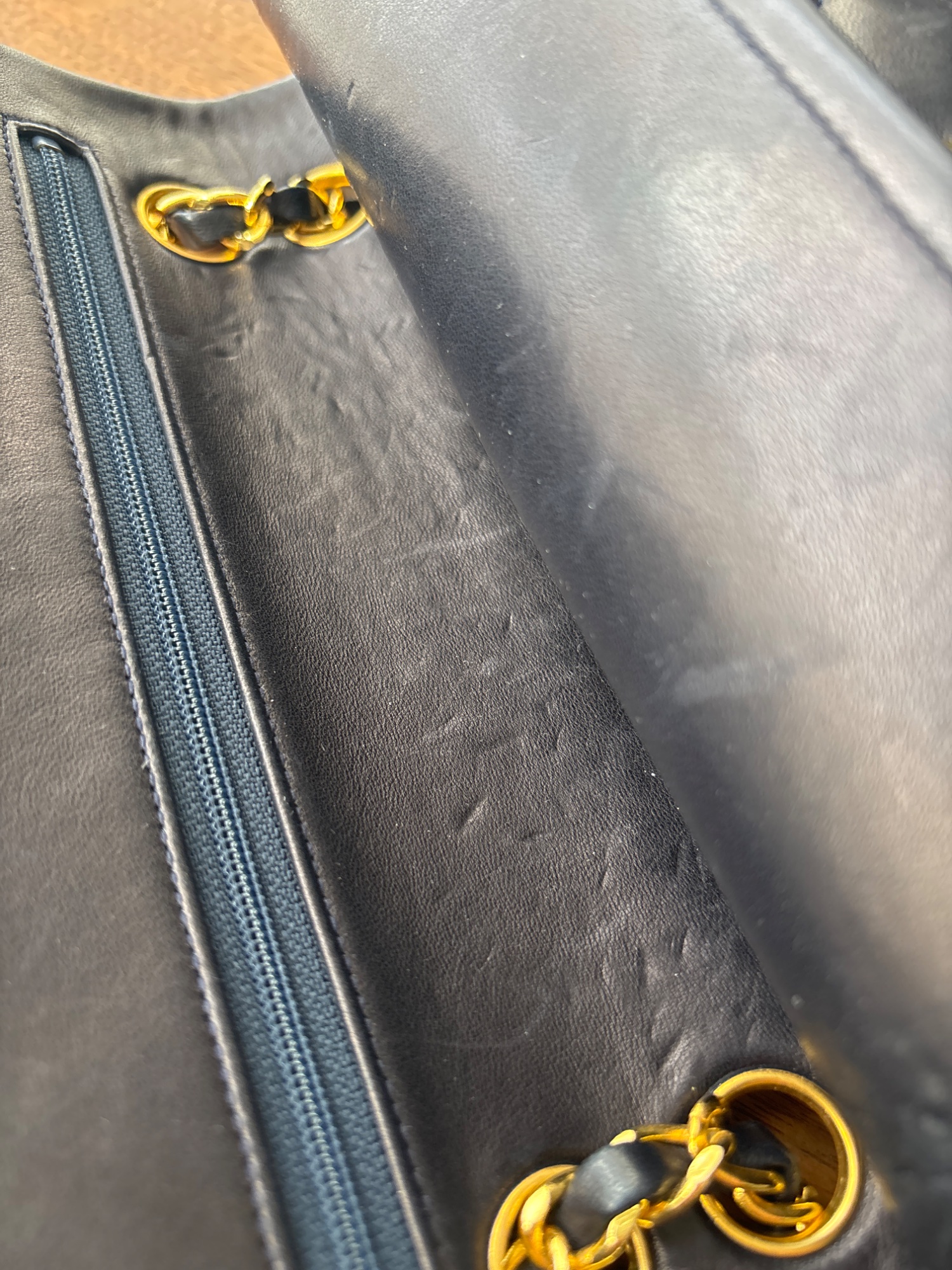 保管の仕方がわるく、バッグ内側にチェーン紐のチェーンの跡がついております。
