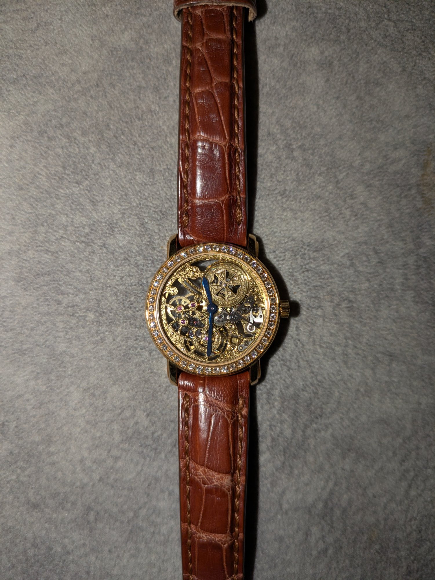 スケルトンダイヤル、ダイヤモンドベゼル仕様。