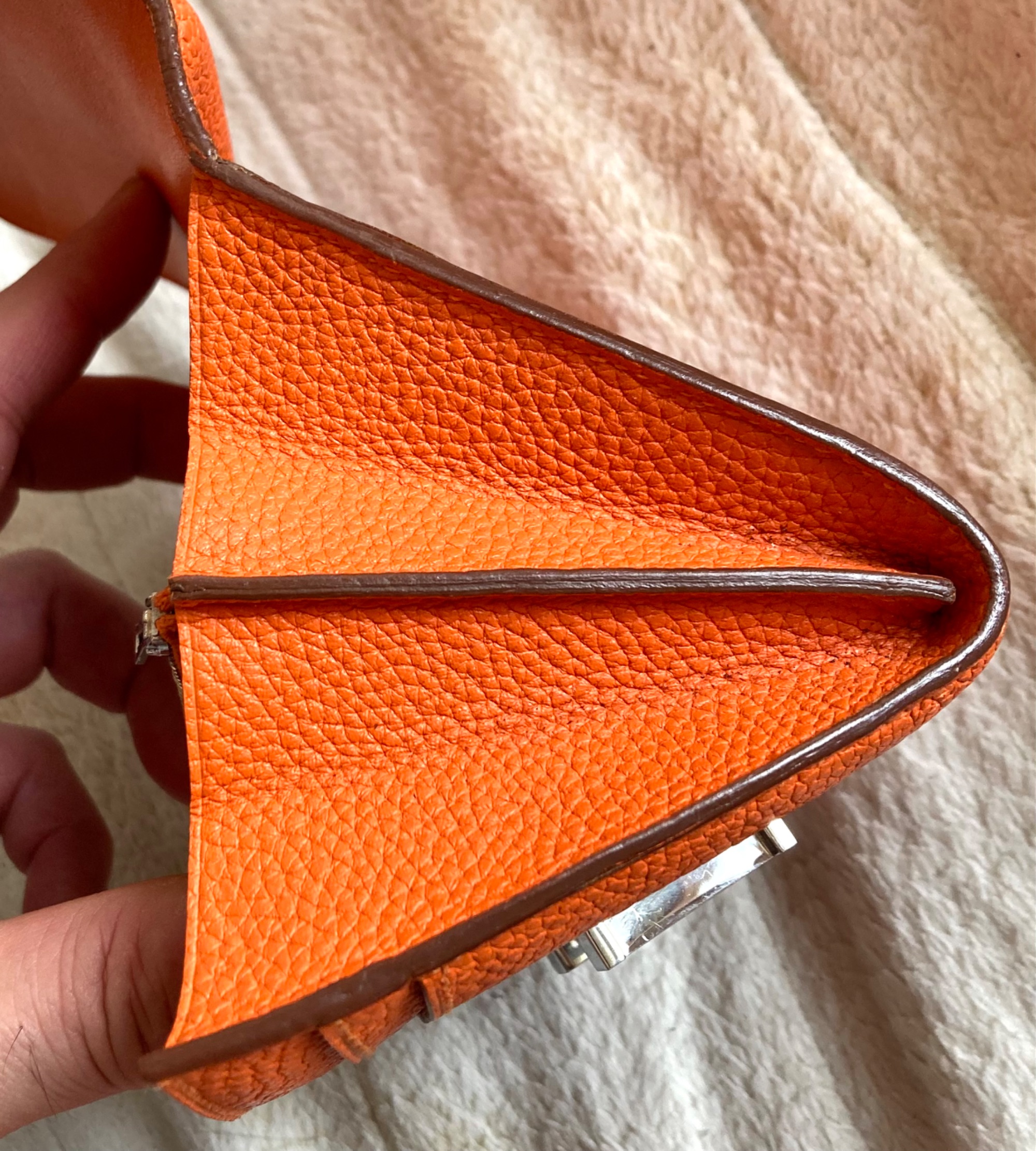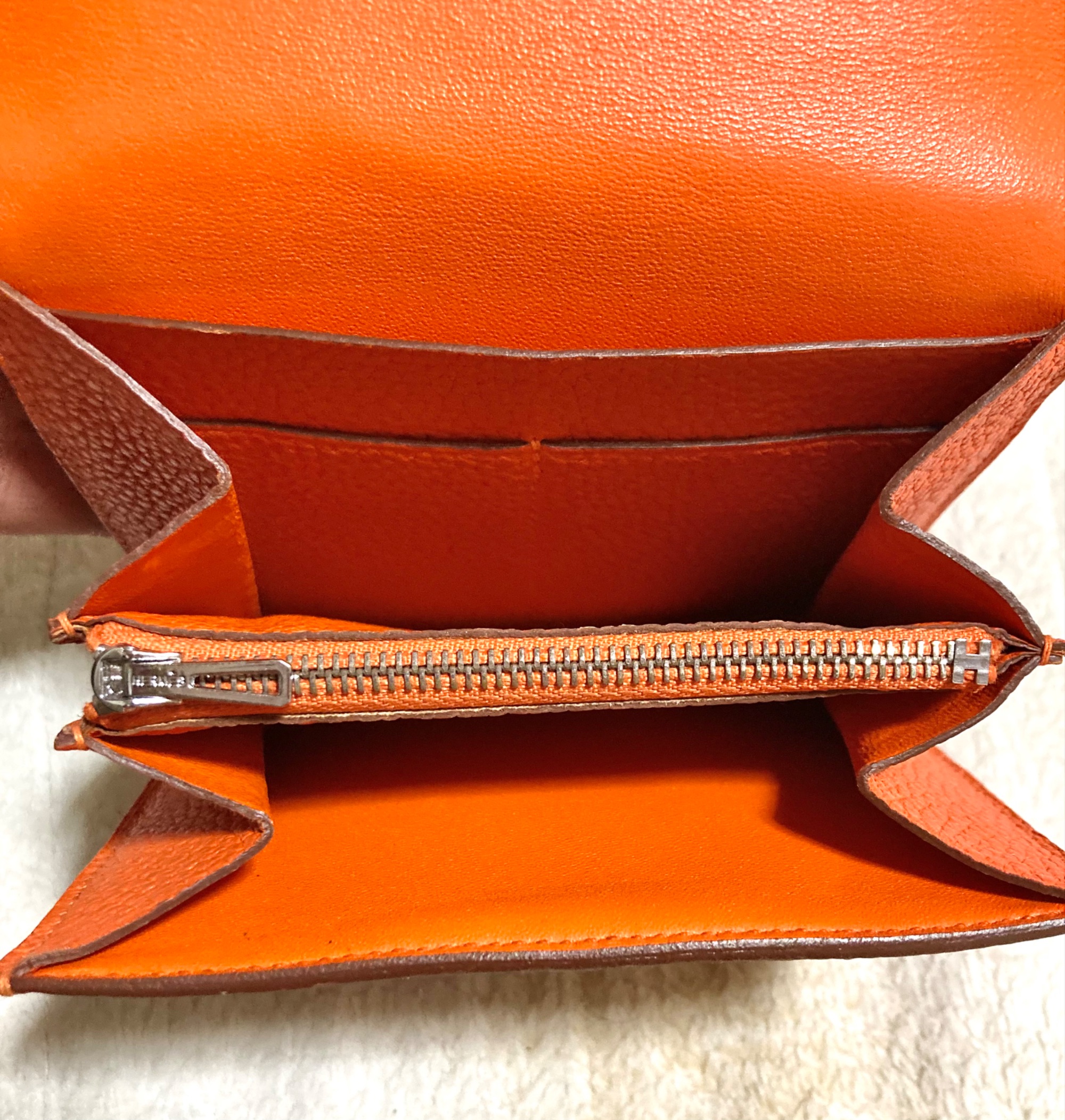 購入は1969年頃、名古屋三越。自宅長期保管品。側面にややヒビ割れ、金具部分に細かい小傷ありです。他の部分はきれいです。刻印XP1123SV