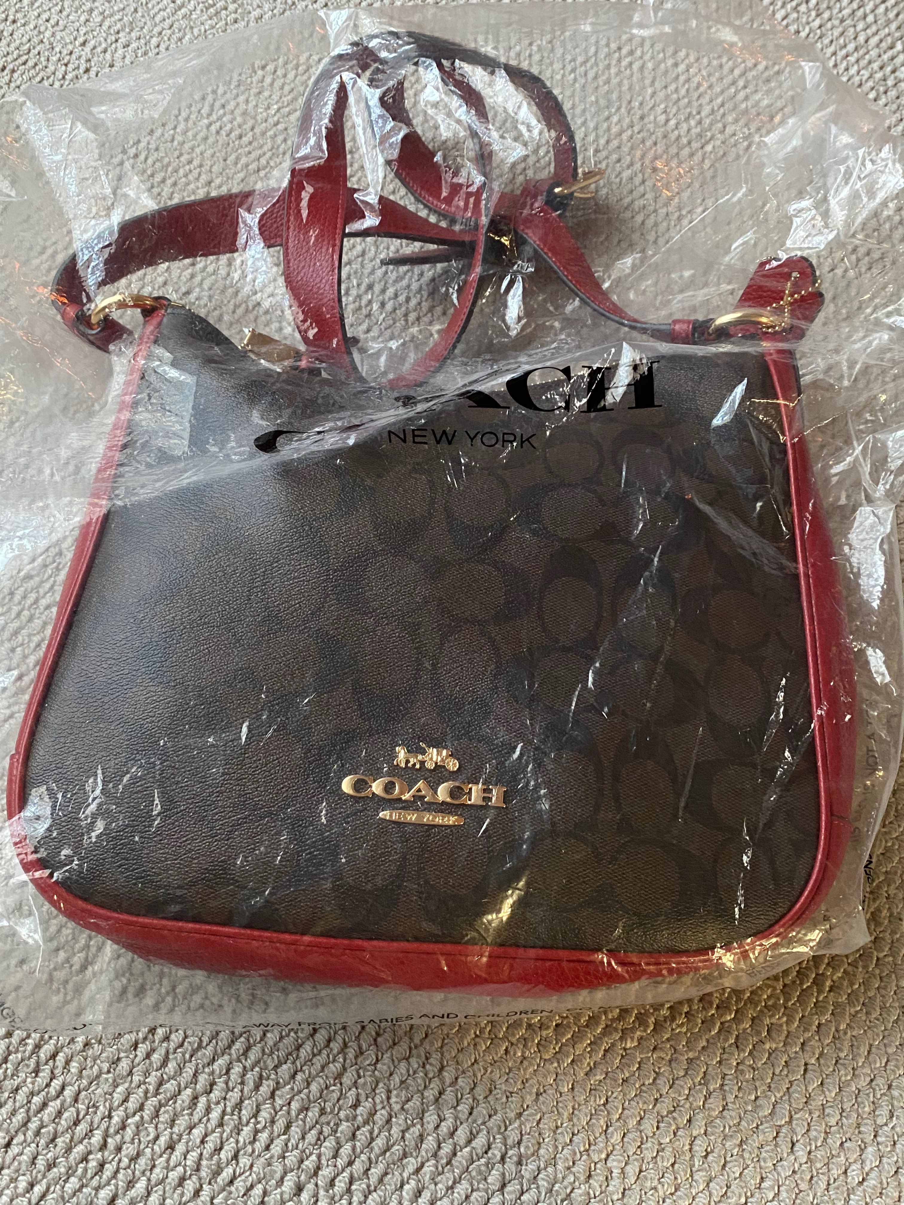 コーチ シグネチャー ショルダーバッグ ブラウン/レッド レザー ゴールド金具