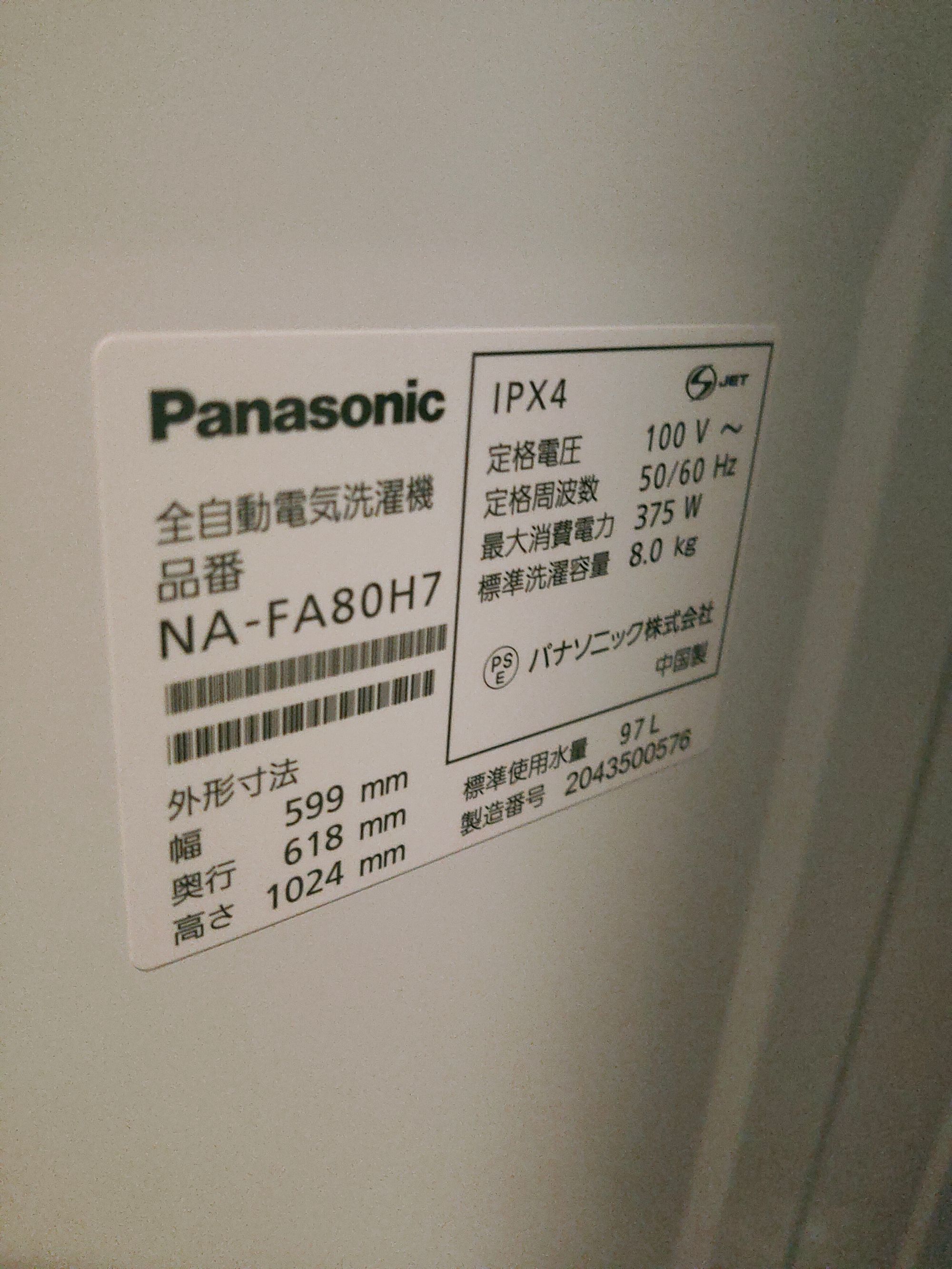 NA-FA80H7(家電)の査定価格・買取相場 (最高査定価格 8,000円)