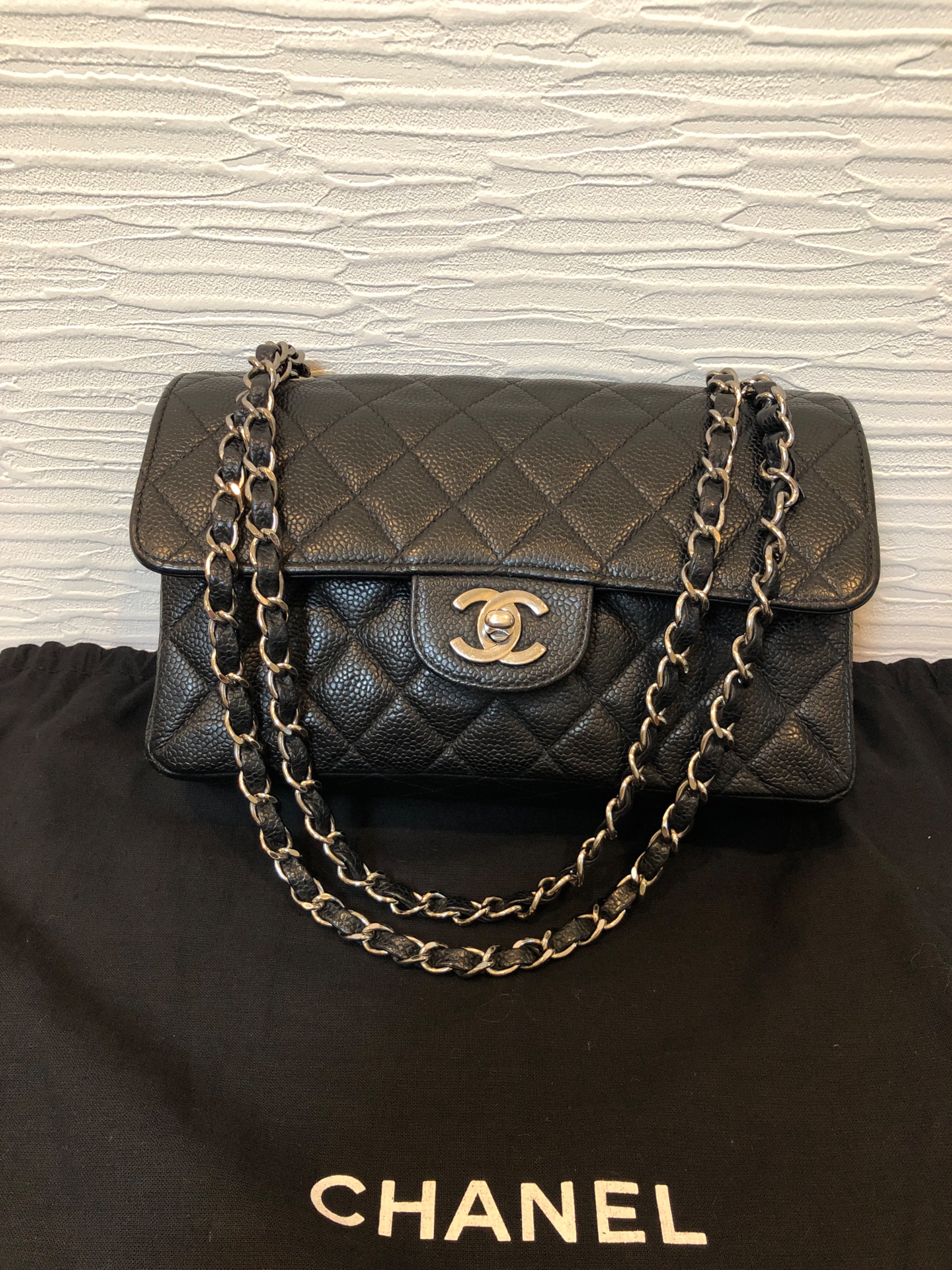 CHANELキャビアスキンマトラッセダブルフラップダブルチェーン 中古極美品 金具ピカピカ✨ シリアルシール6番台 角スレなし