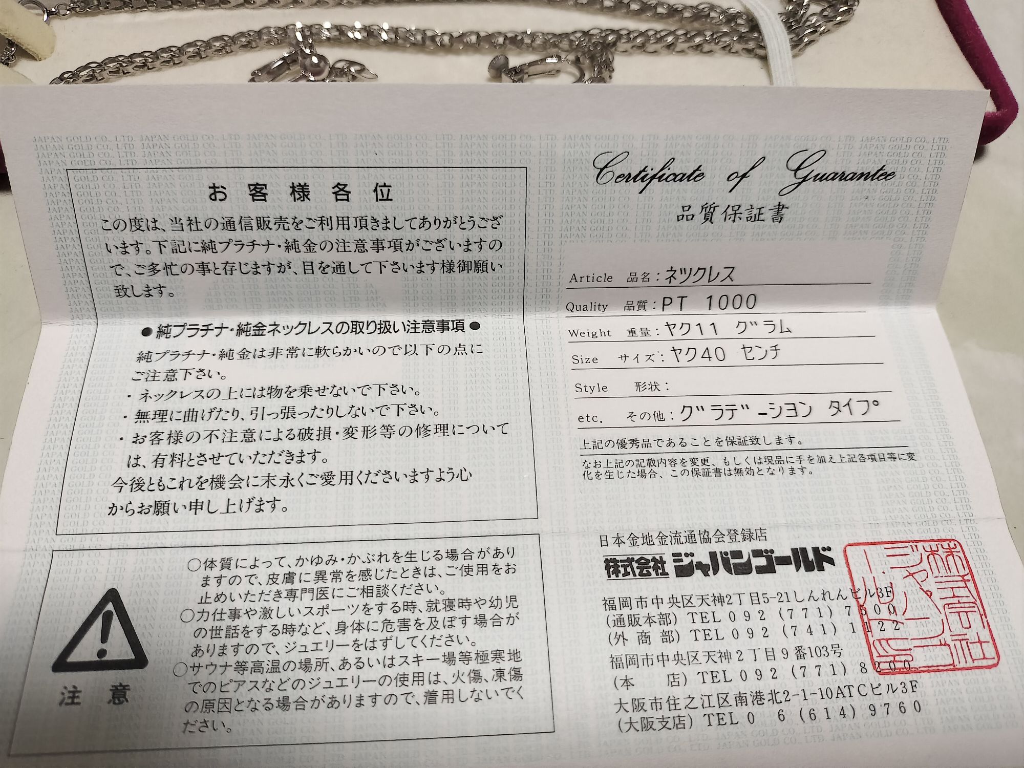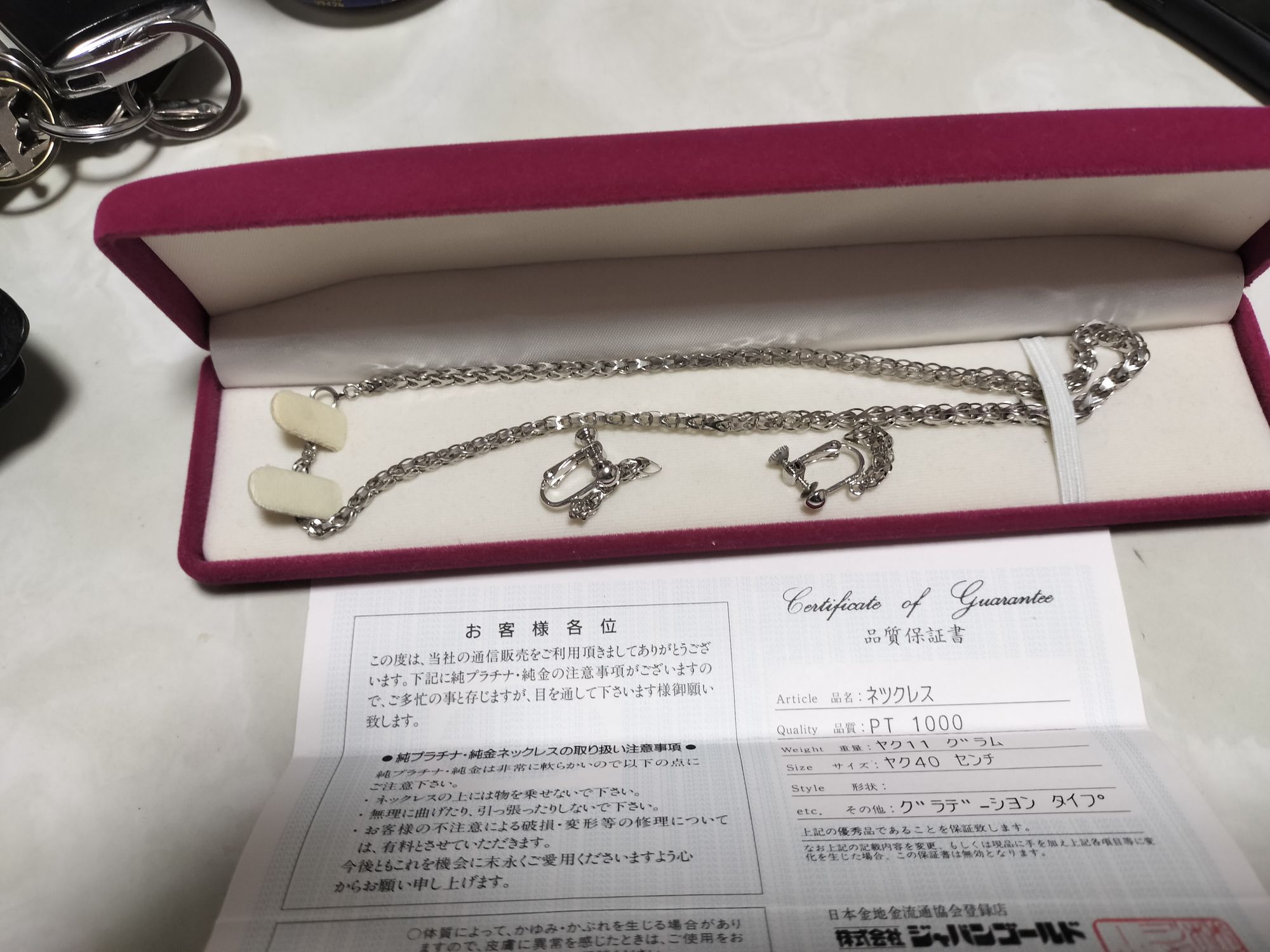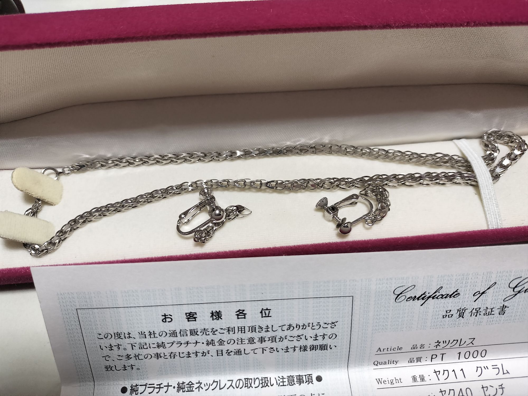 プラチナネックレス、イヤリング