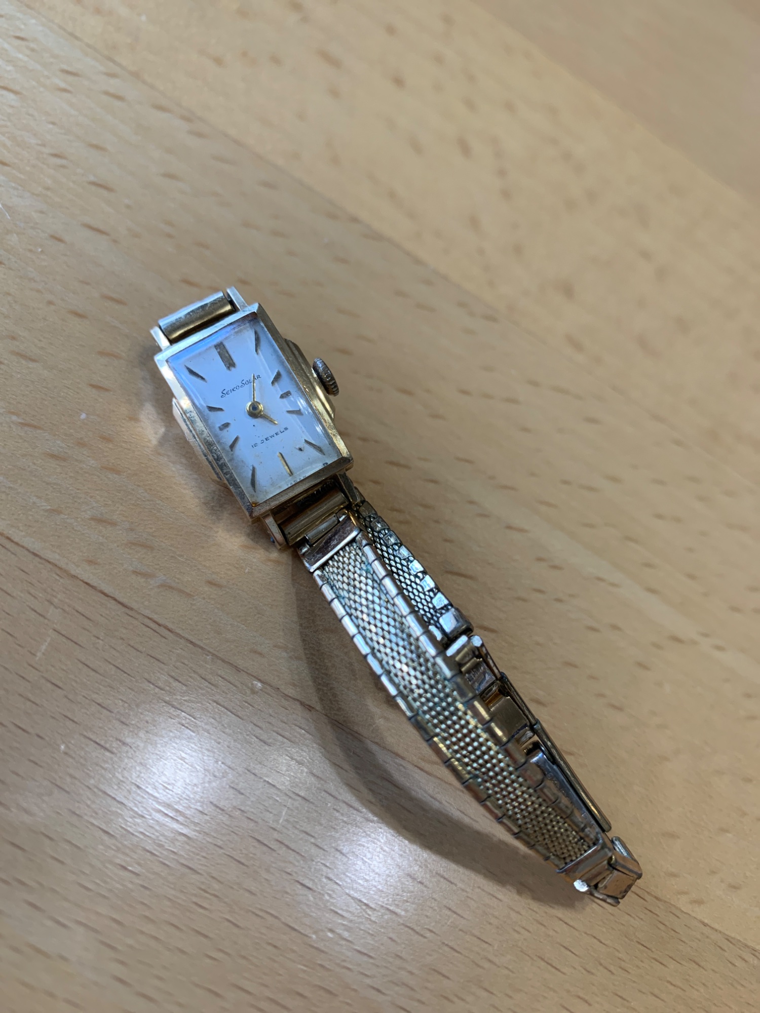 SEIKO solar ??Jewel s 裏蓋に18金の刻印あり リューズと針回ります 錆びたり剥げたりして綺麗ではありませんが 金の使われているものなので 見ていただけますか。