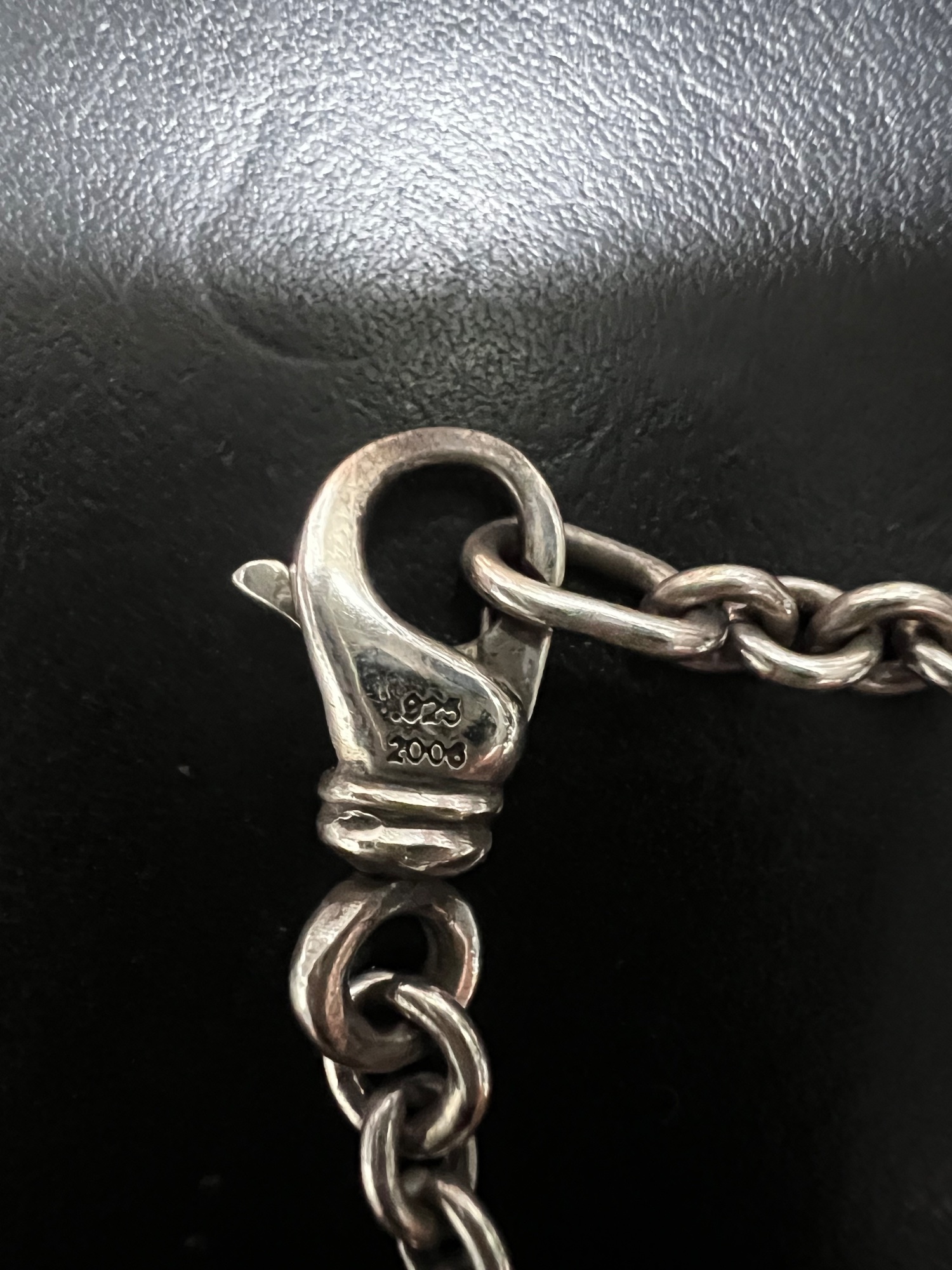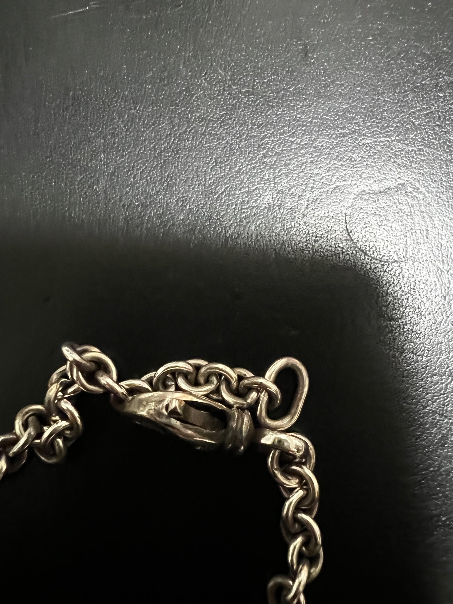 小さめのトップも通せるようにフックにかける丸カンを楕円に変形させております。
