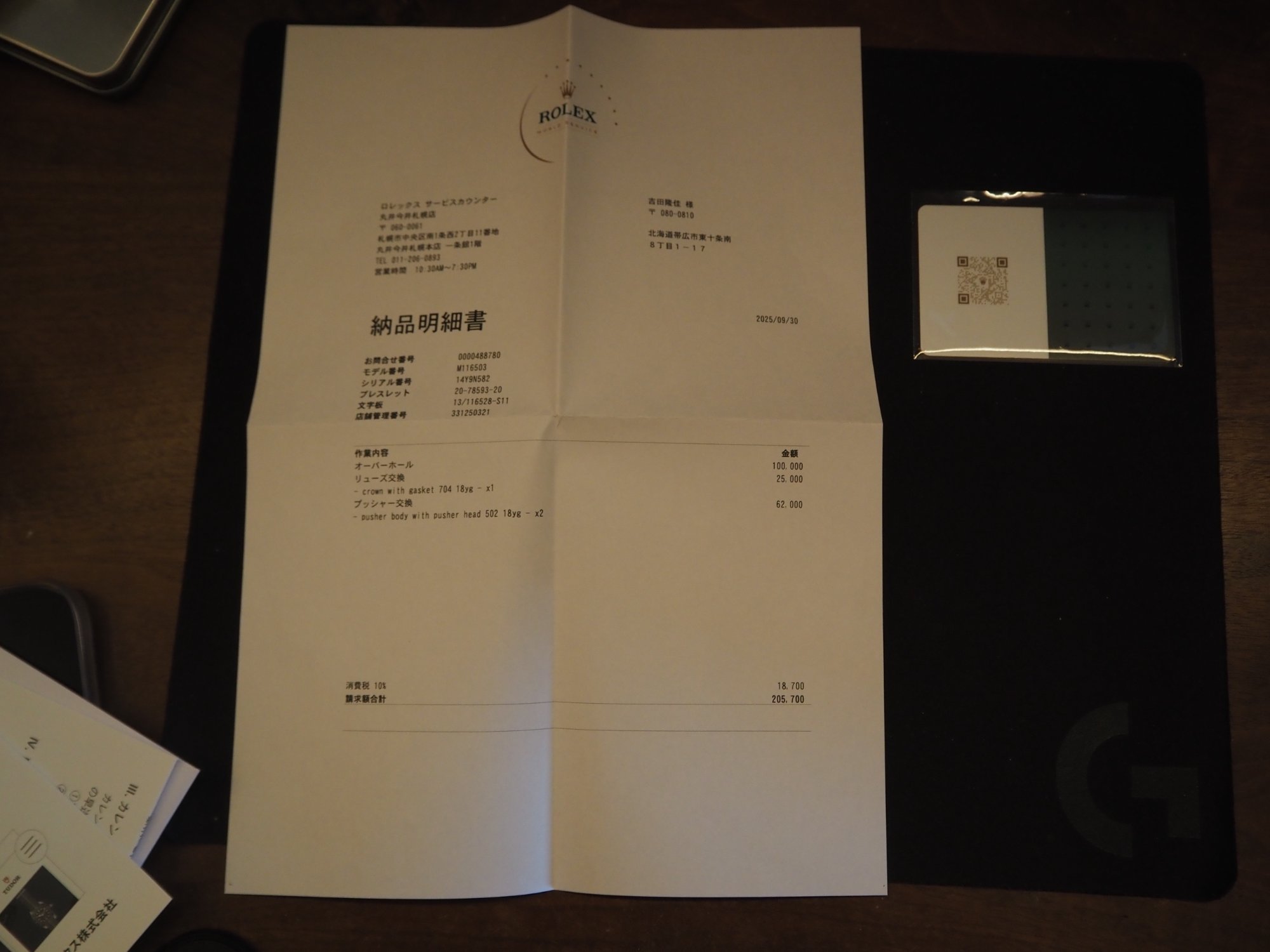 2020年6月30日購入 昨年8月オーバーホール(明細あり) 箱、保証書、余りコマ完備 購入時の紙袋、包装紙もあり