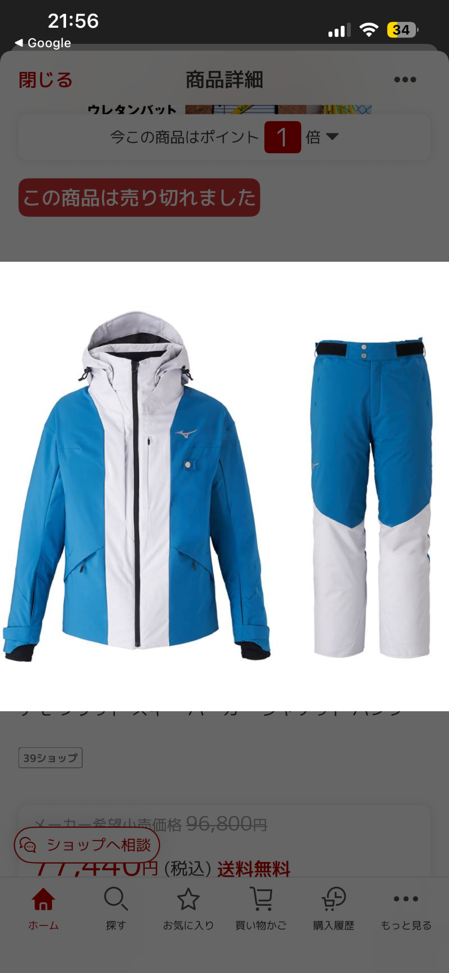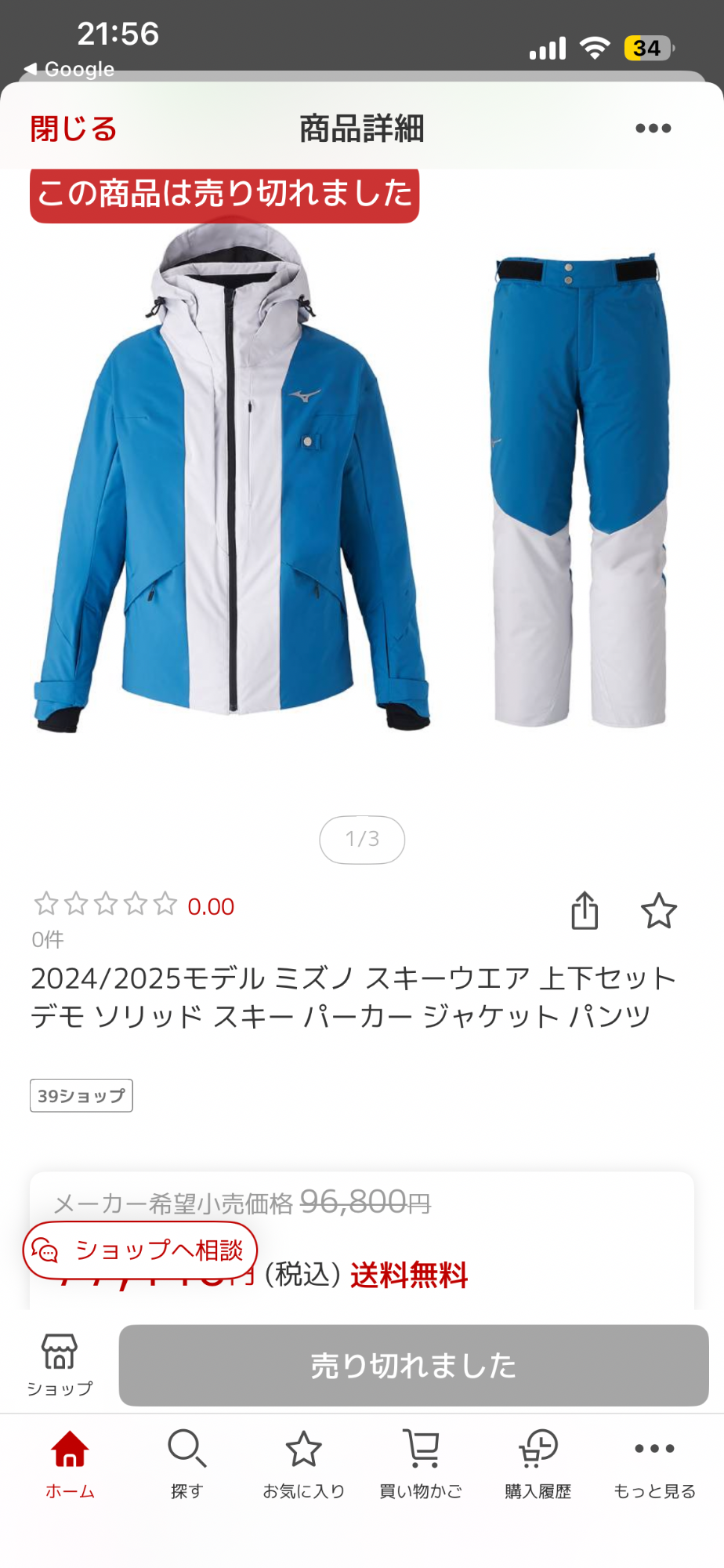 「スキーウェア ミズノ2024.2025モデル」の買取査定価格の詳細です。