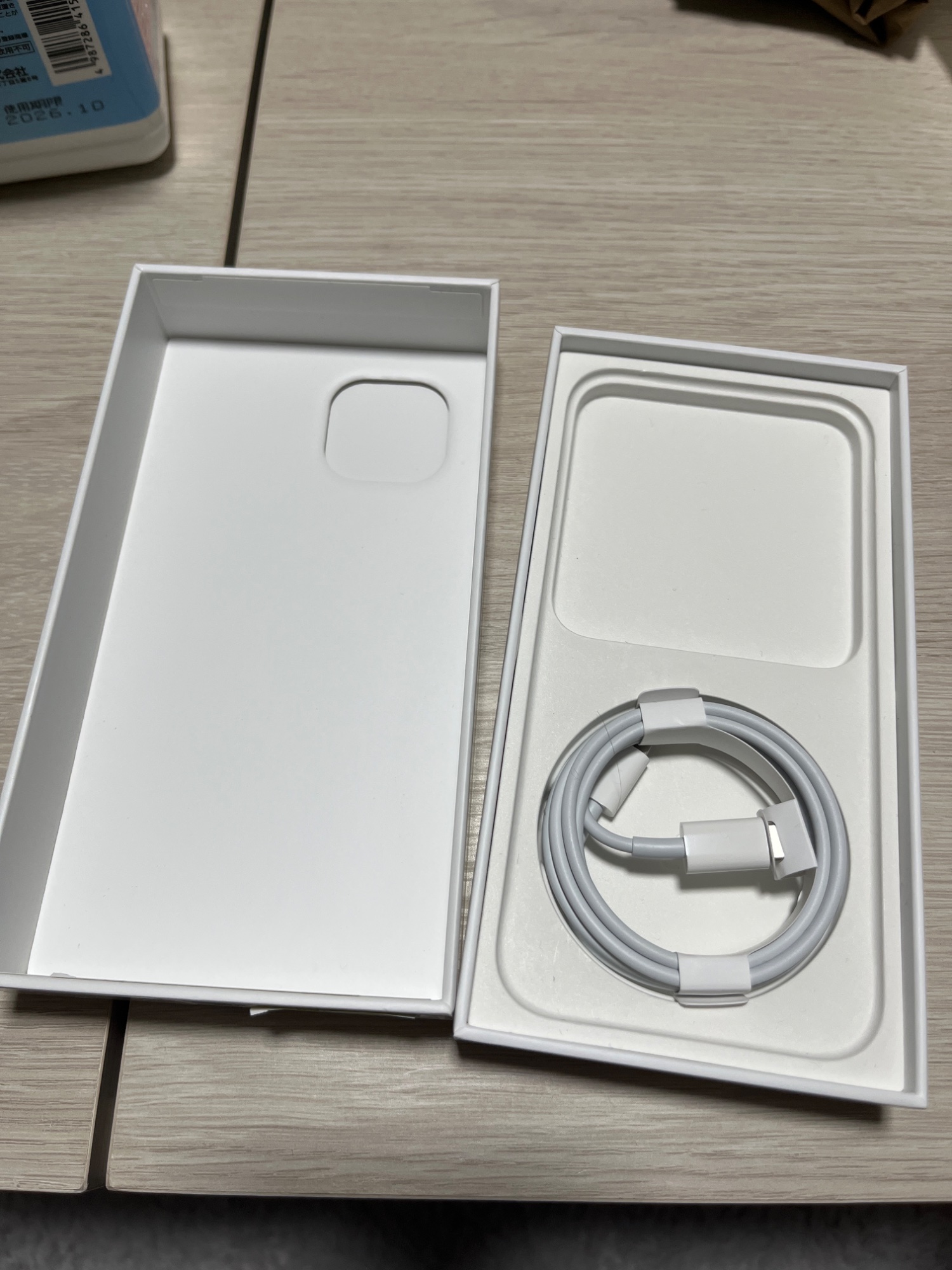 箱あり、スマホを乗せる白い中蓋?は無し、Cタイプ充電器未使用入り