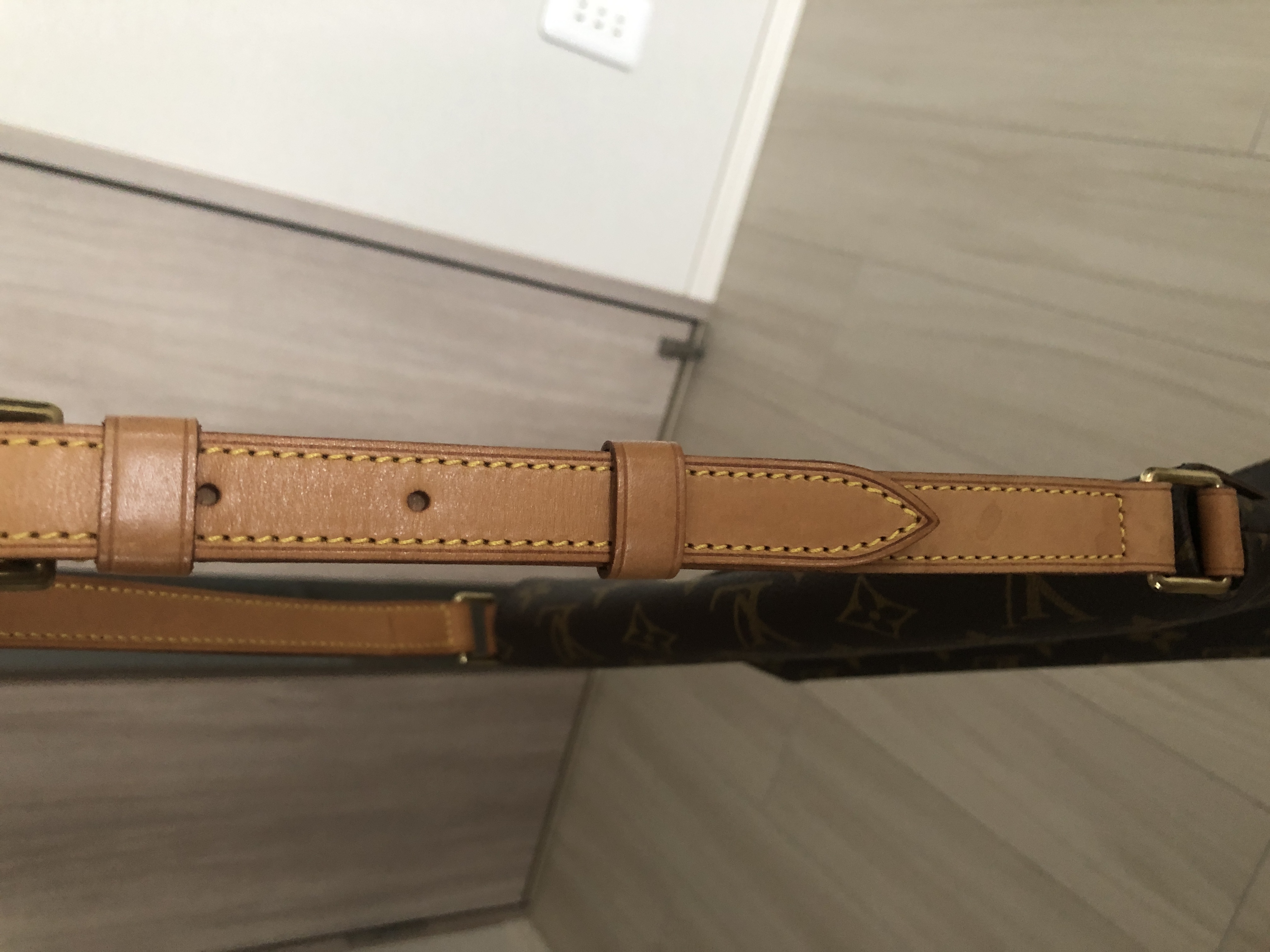 購入時期は15年程前になるかと思います。頻繁に使用はしておらずショルダー紐部分は少し雨染みが見られます