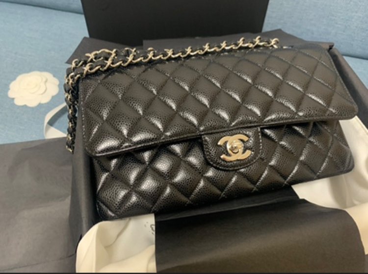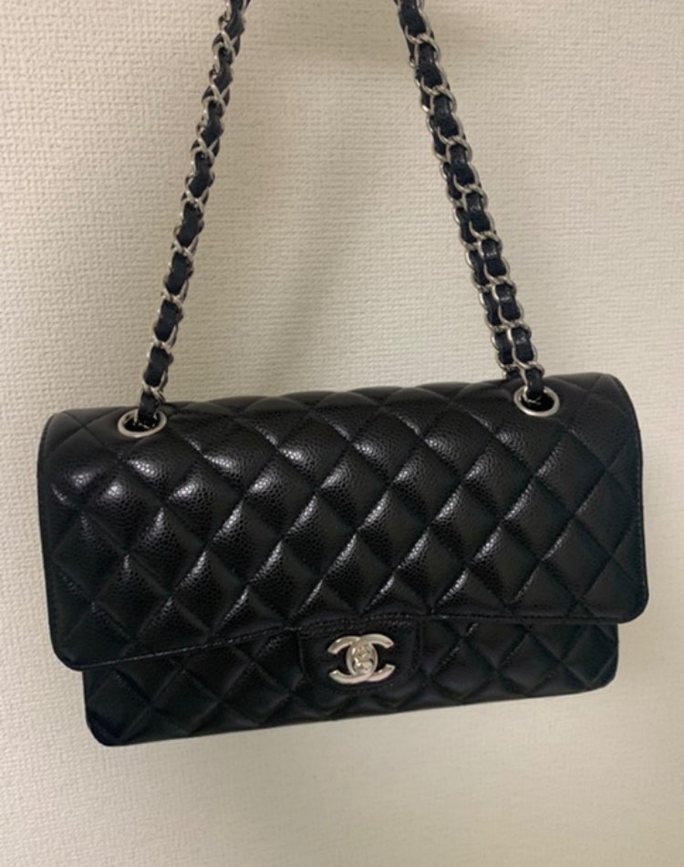 クラシックハンドバッグ マトラッセチェーンショルダー ブラックミディアム