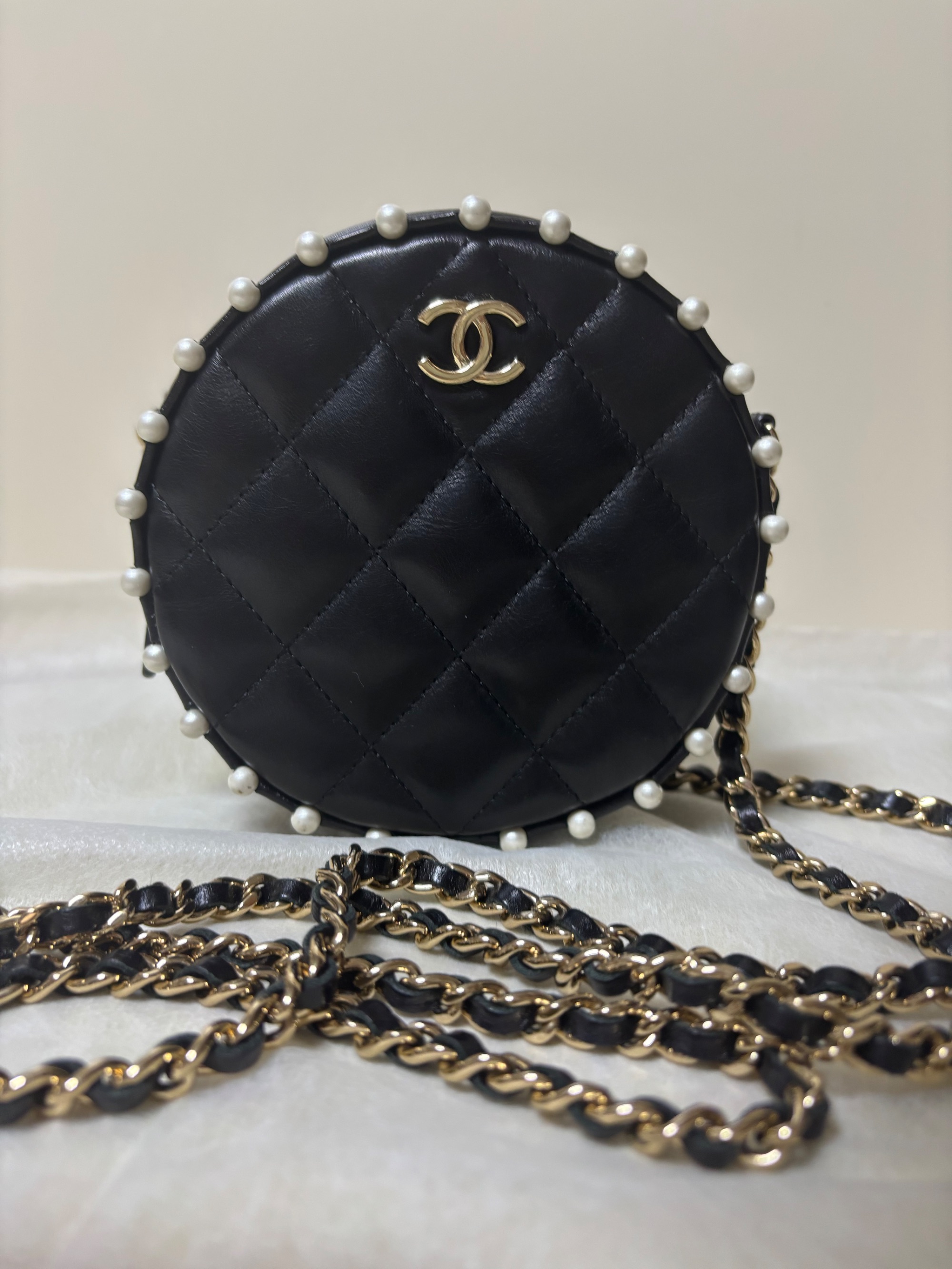 パール付きラウンド型ショルダーバッグ