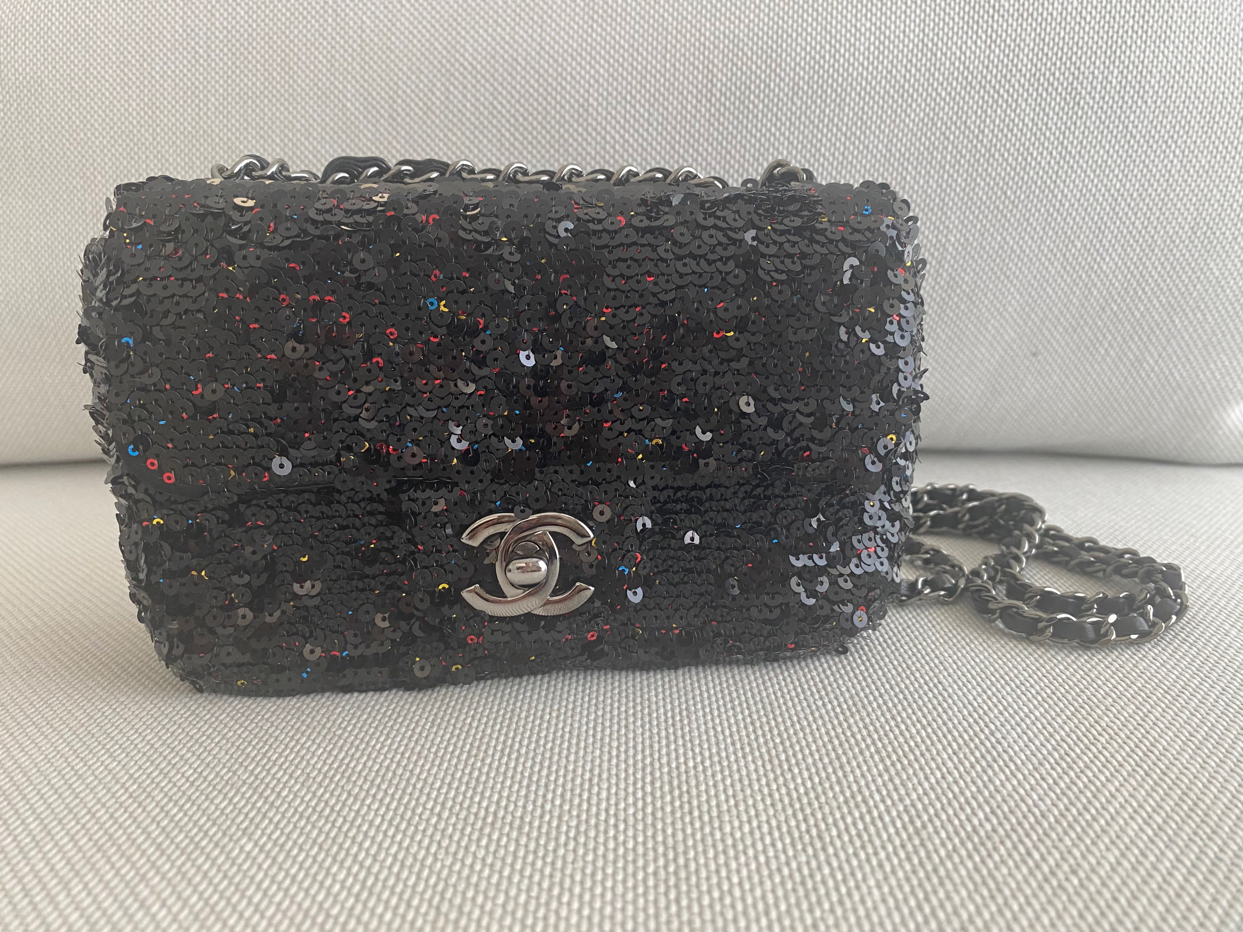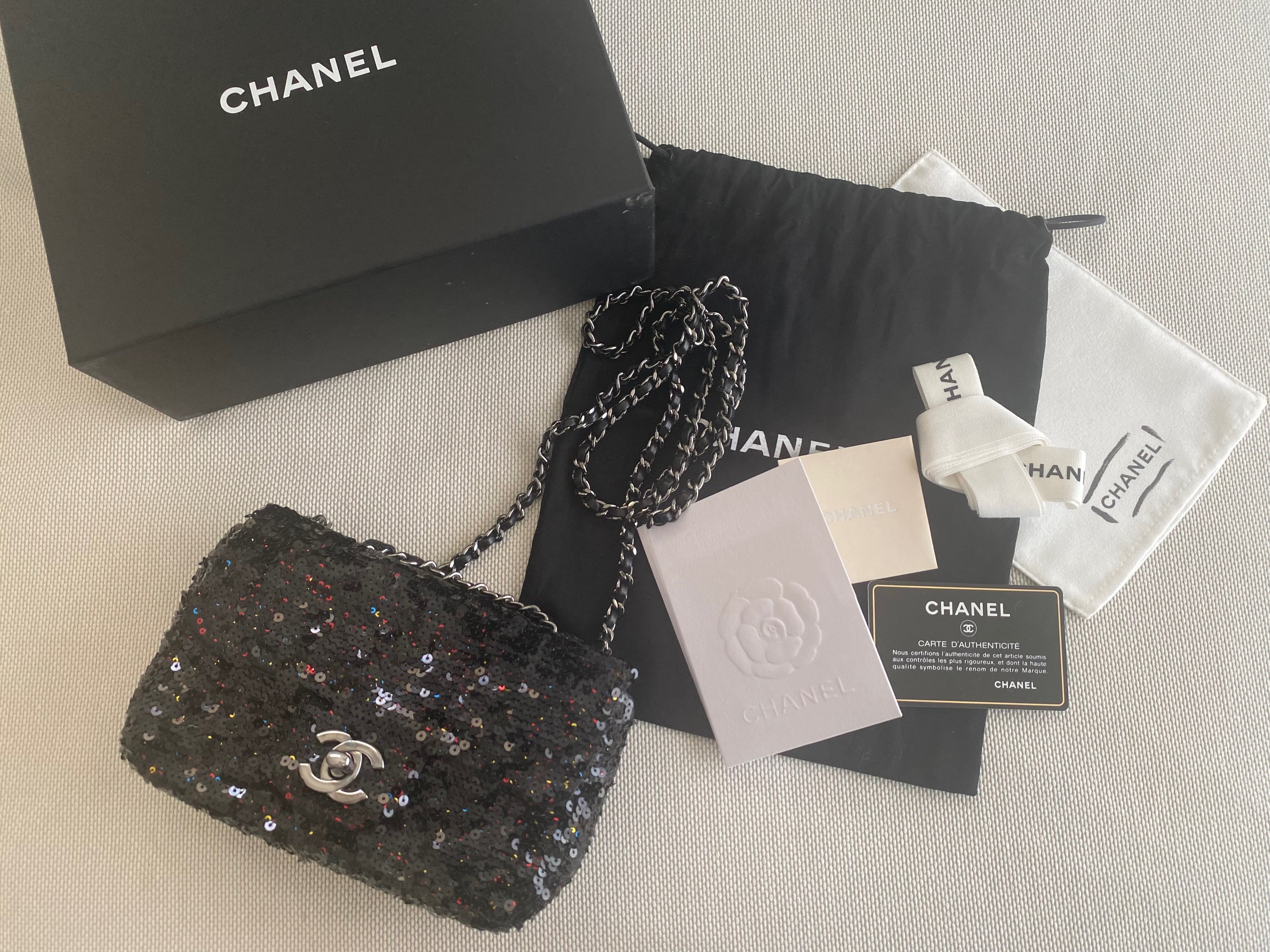 CHANEL スパンコール チェーンショルダー フラップ バッグ