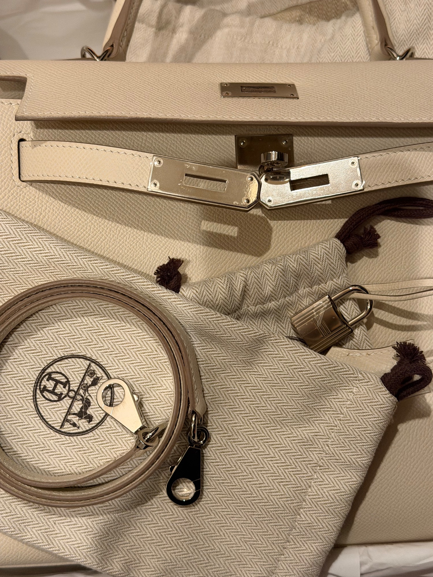 付属品箱全てあり。購入後、買った事を忘れて箱から出てきました。2023年国内のエルメスで購入。