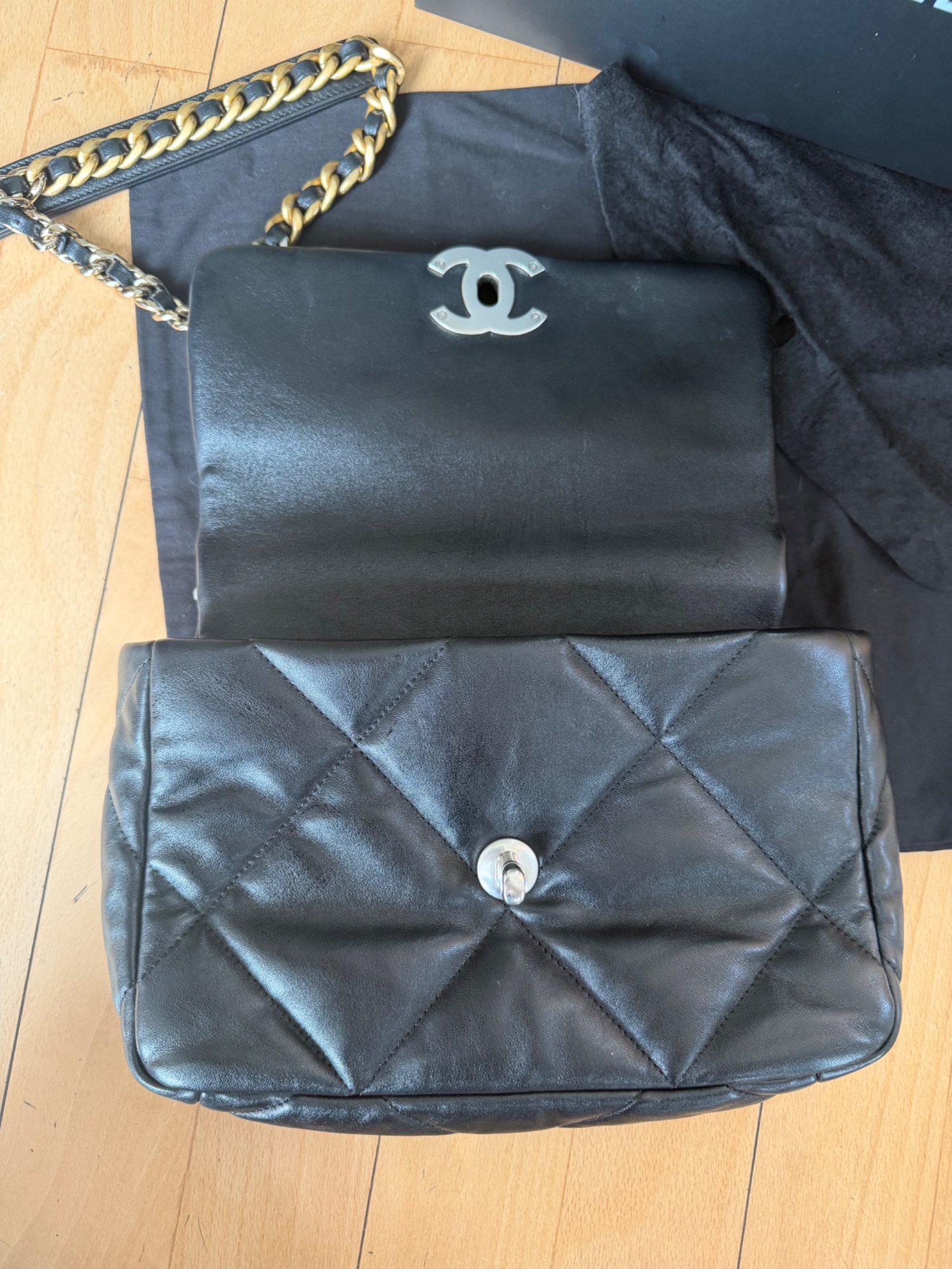 CHANEL 19 ブラック ラムスキン チェーンショルダーバッグ