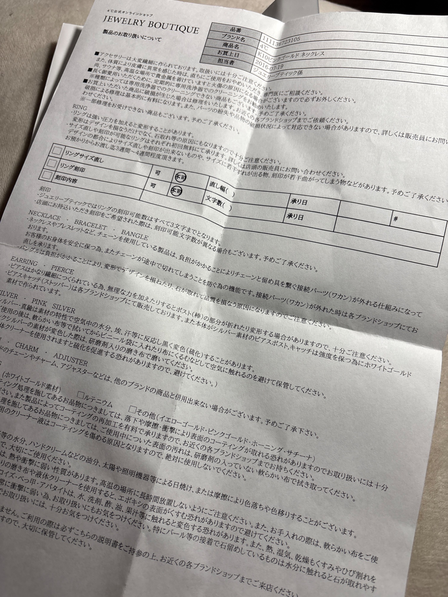 「4℃ ピンクゴールドイニシャルネックレス」の買取査定価格の詳細です。