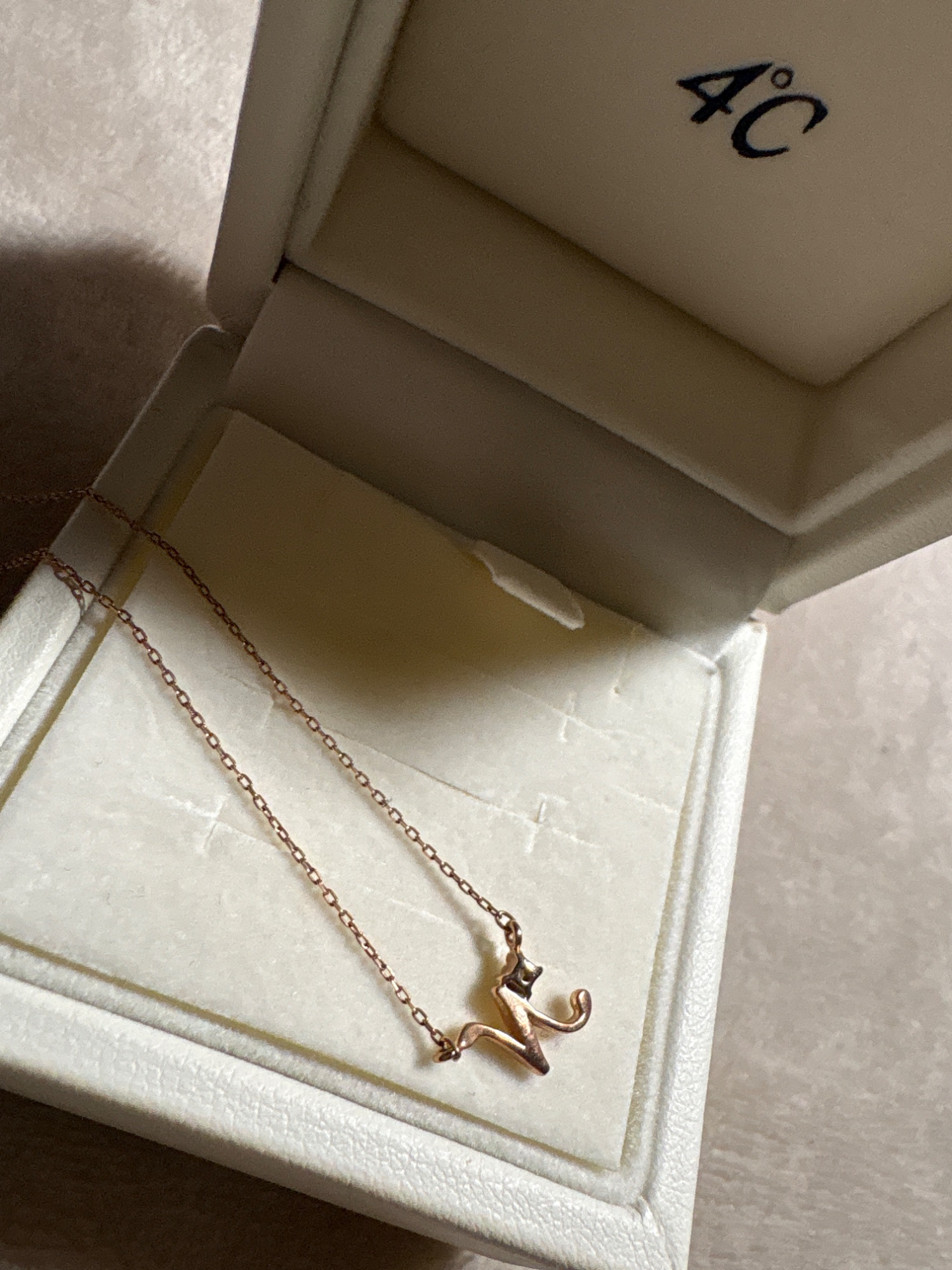 4℃ ピンクゴールドイニシャルネックレス